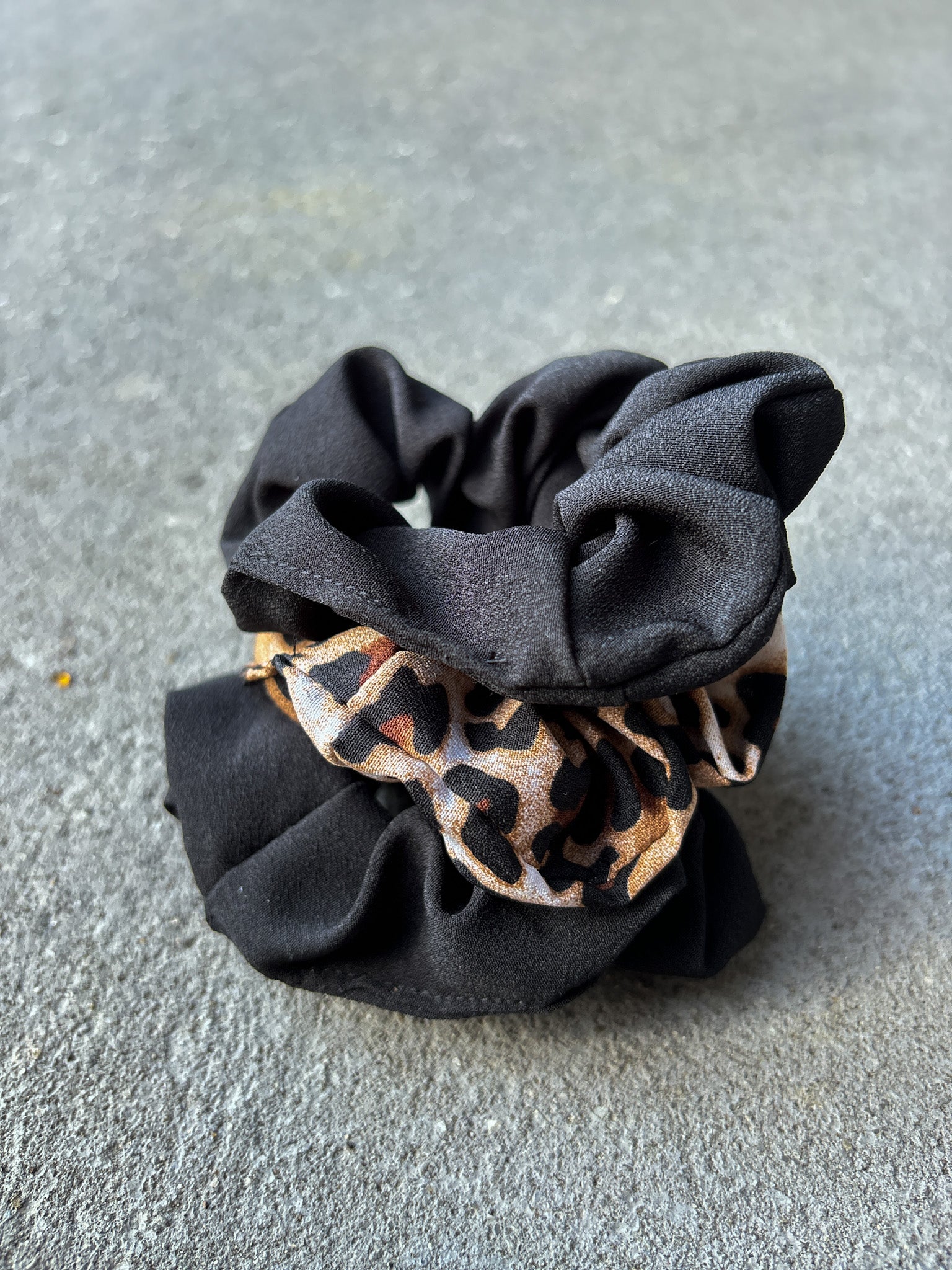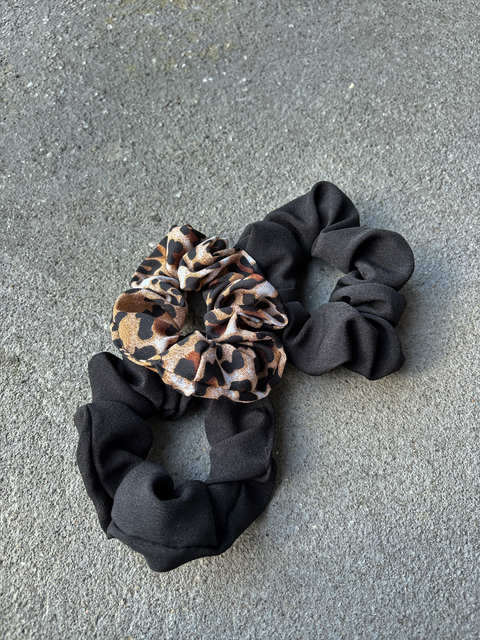 Accentuate your style with this Leopard Scrunchie Trio Pack, containing 3 scrunchies (2 Black & 1 Leopard). Get creative with your look and enjoy the comfort of a soft and secure fit for all-day wear.