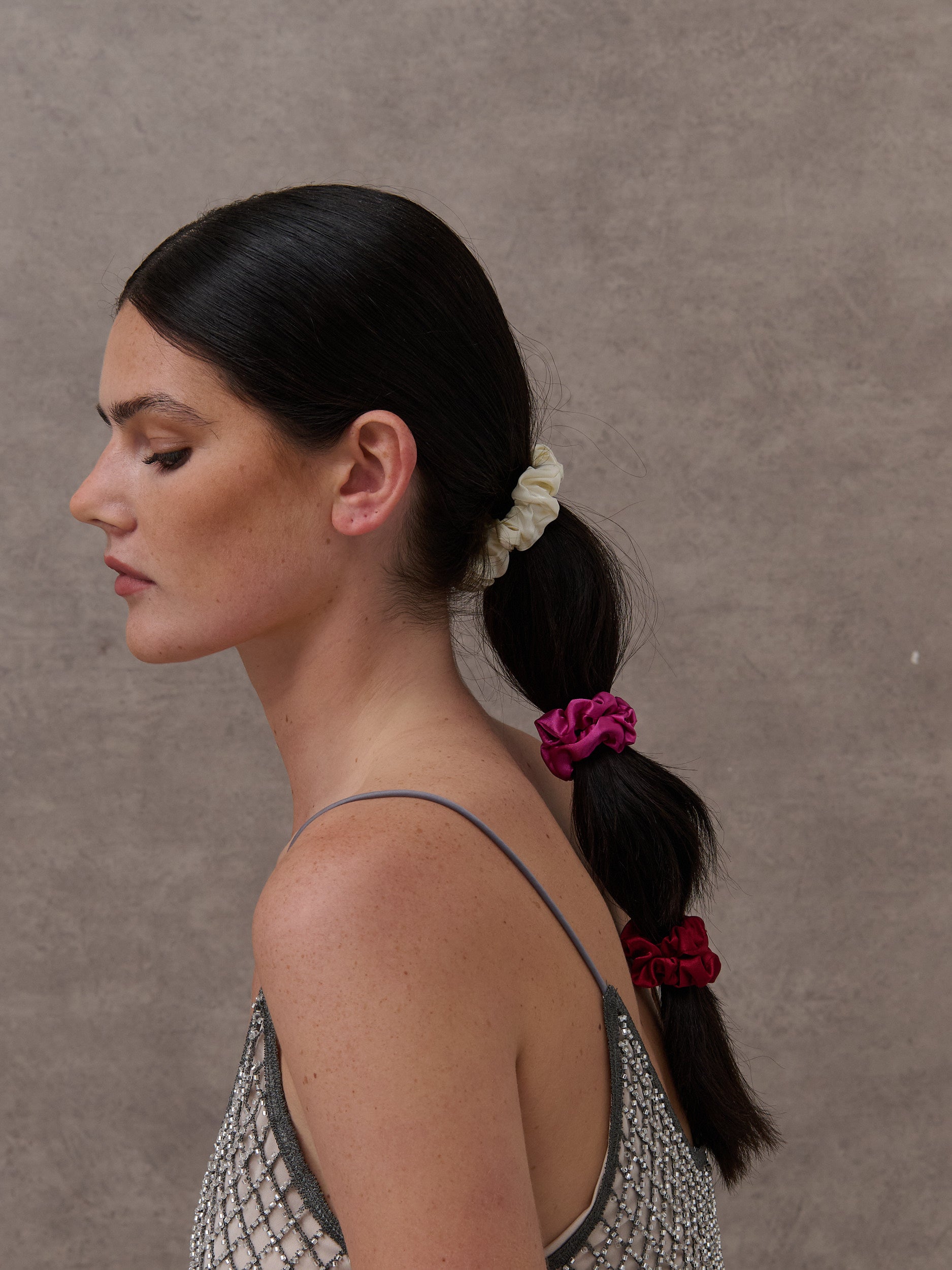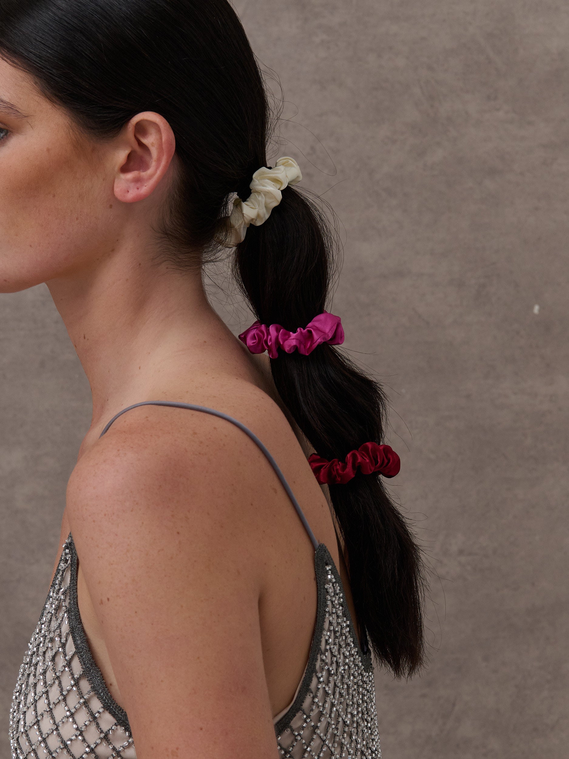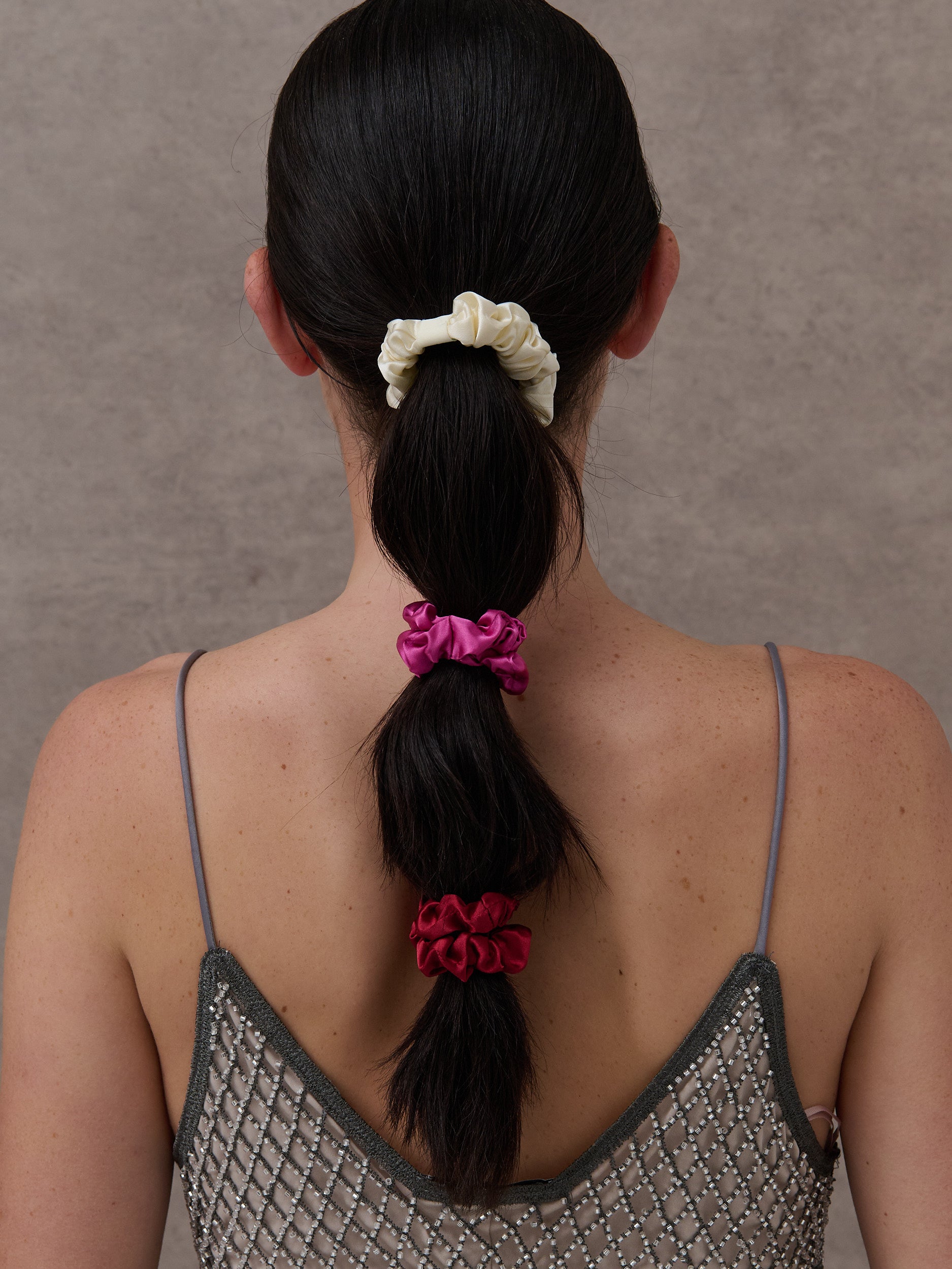 Our Bliss Satin Scrunchie Pack features 3 beautiful scrunchie ties in a slim design. Enjoy a fashionable accessory that offers the perfect look for any occasion.