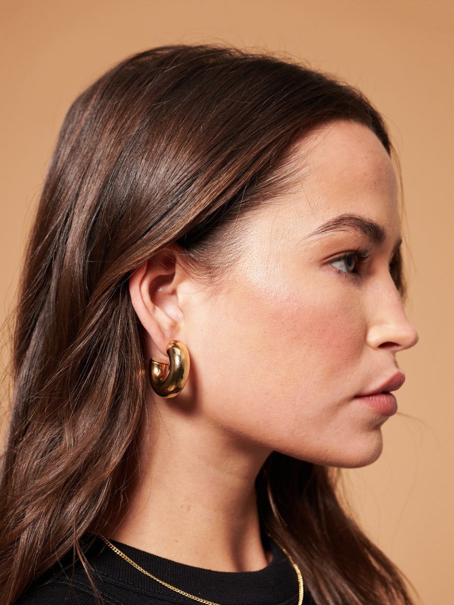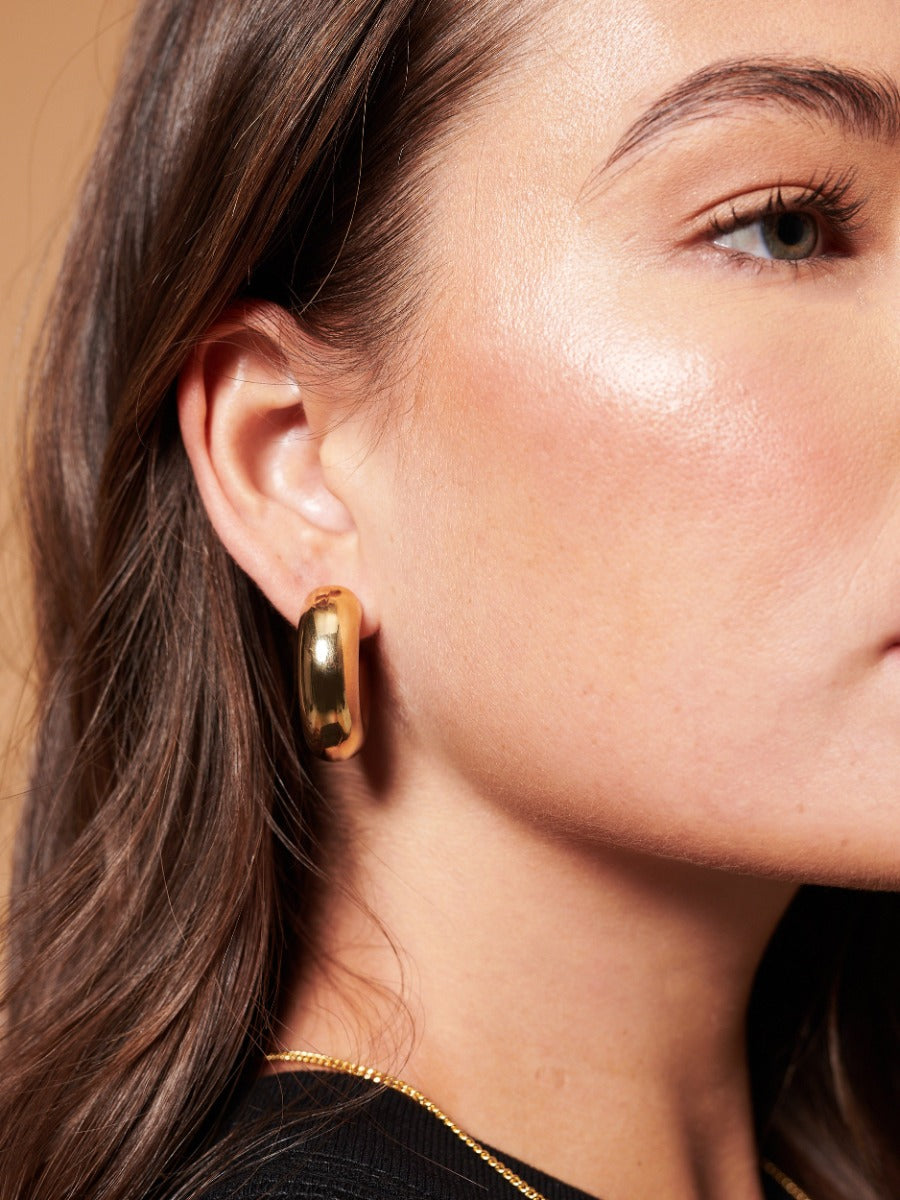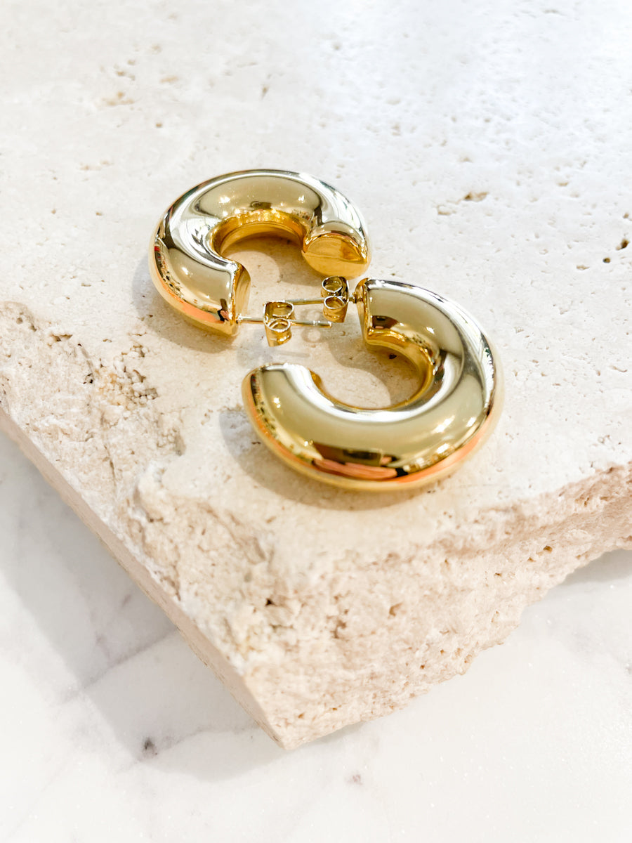 Bold Macaroni Loop 18K Gold Plated Earrings