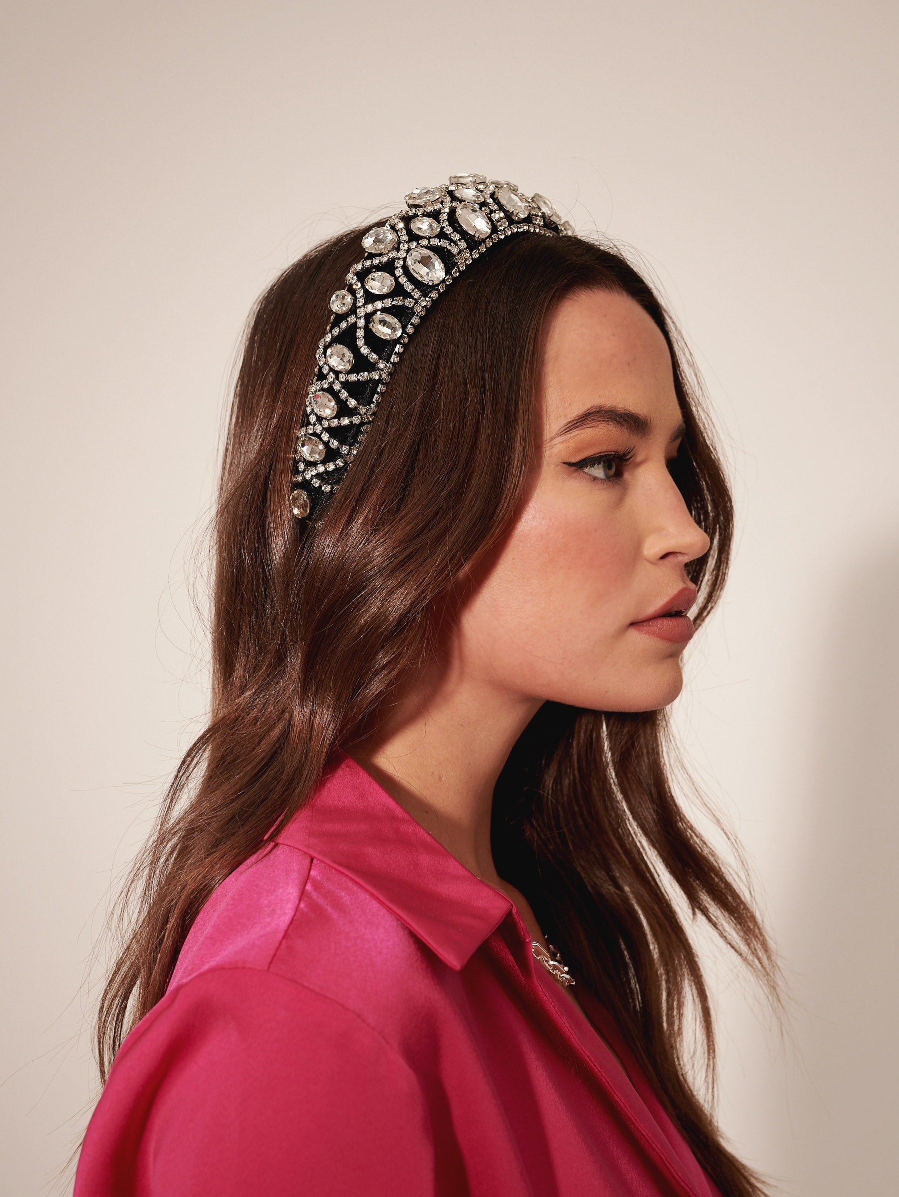 Indulge in luxury with the exquisite Cindy Diamond Gem Headband. This head-turning accessory features stunning diamond gems that are sure to elevate any outfit. With its sophisticated design and elegant touch, this headband is the perfect addition to your collection.