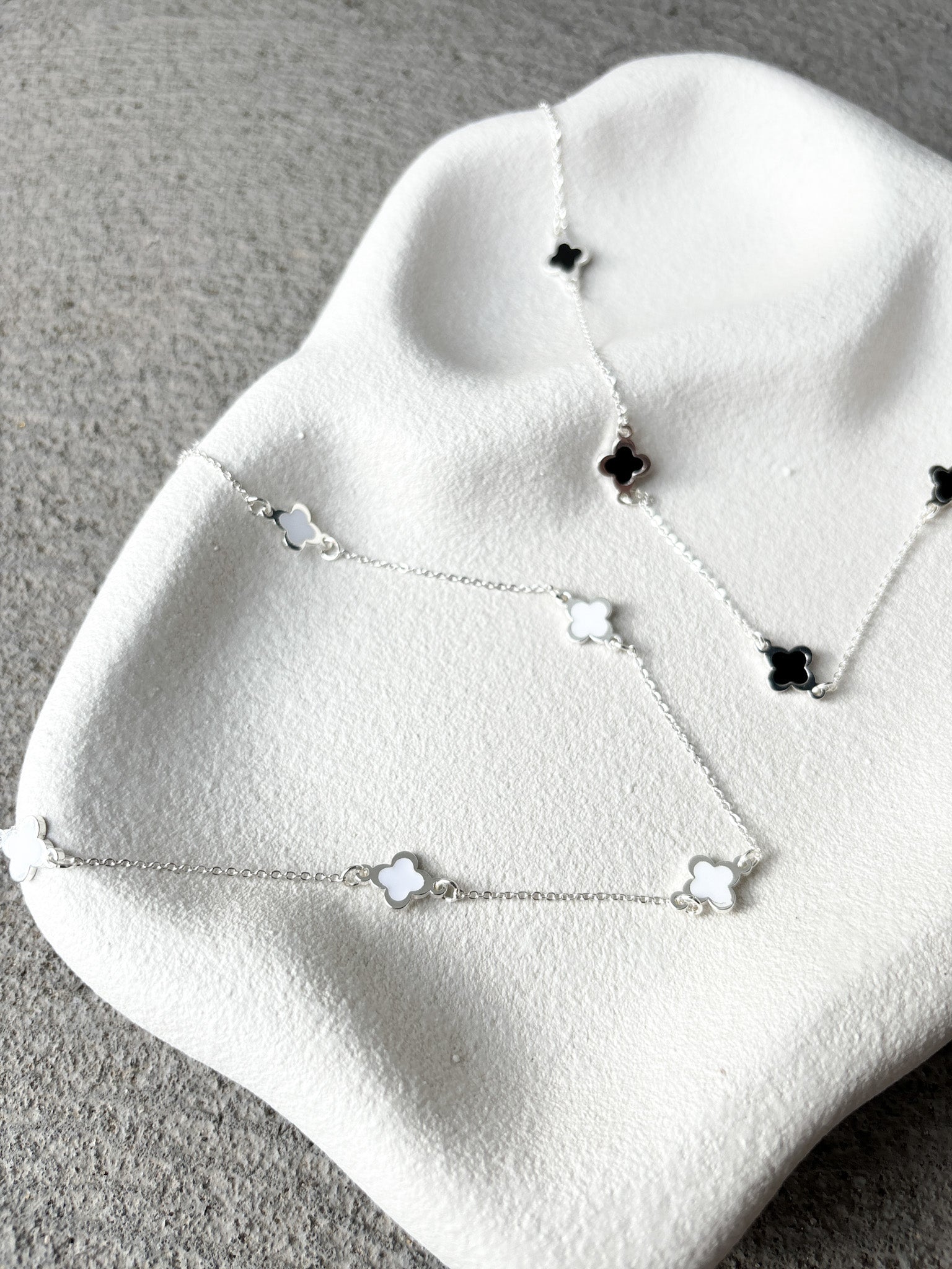 Clover Sterling Silver Plated Necklace in White