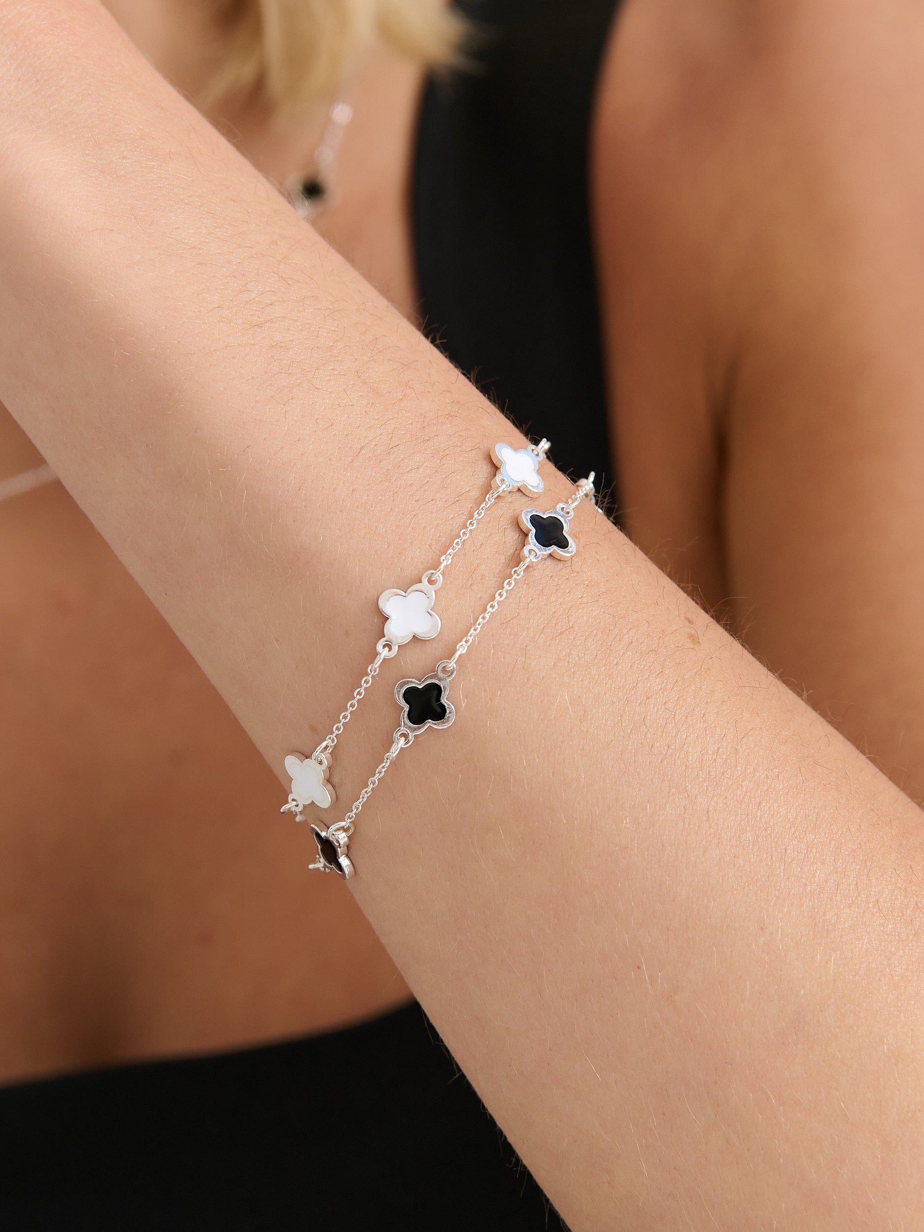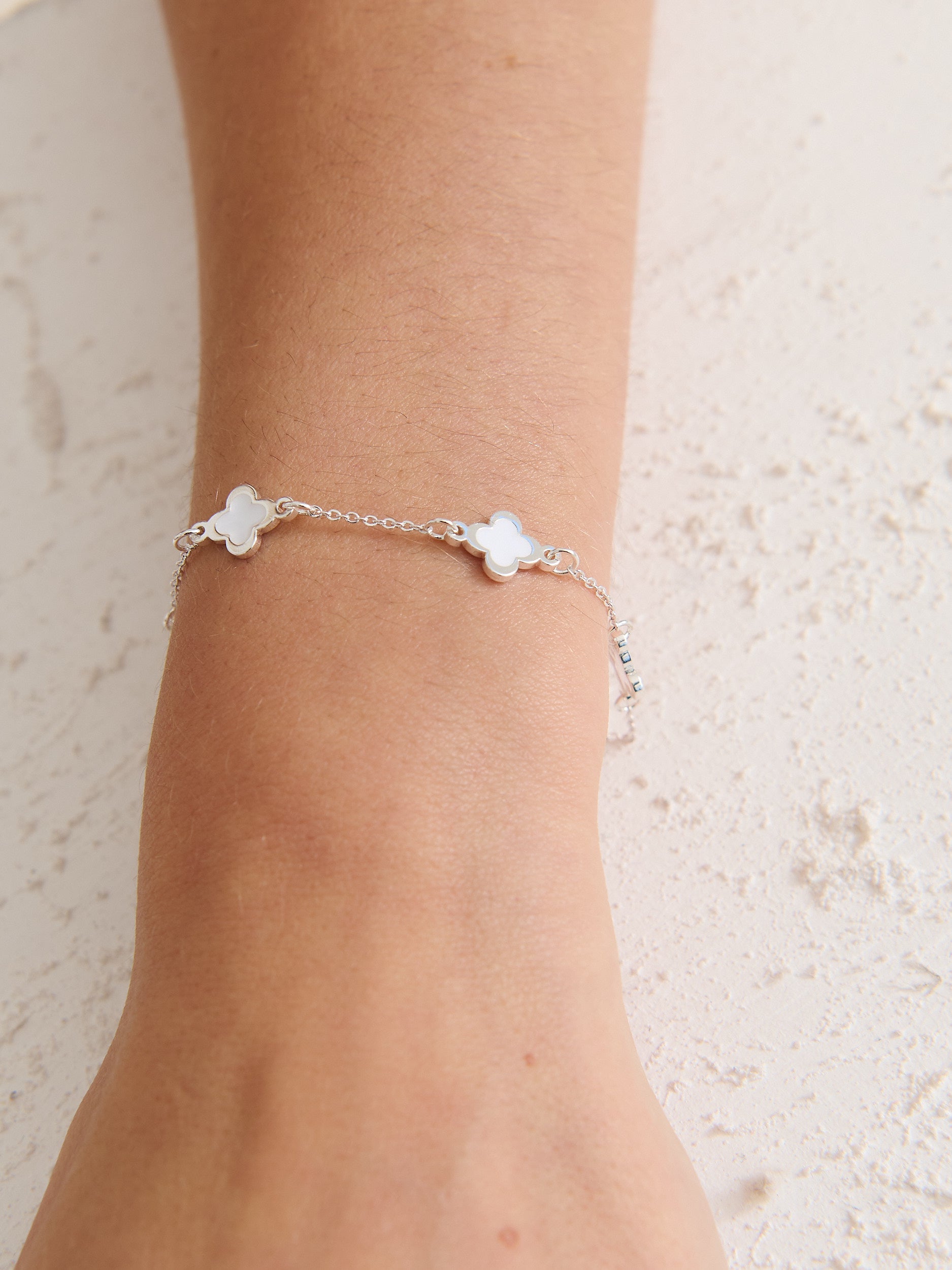 Clover Sterling Silver Plated Bracelet in White