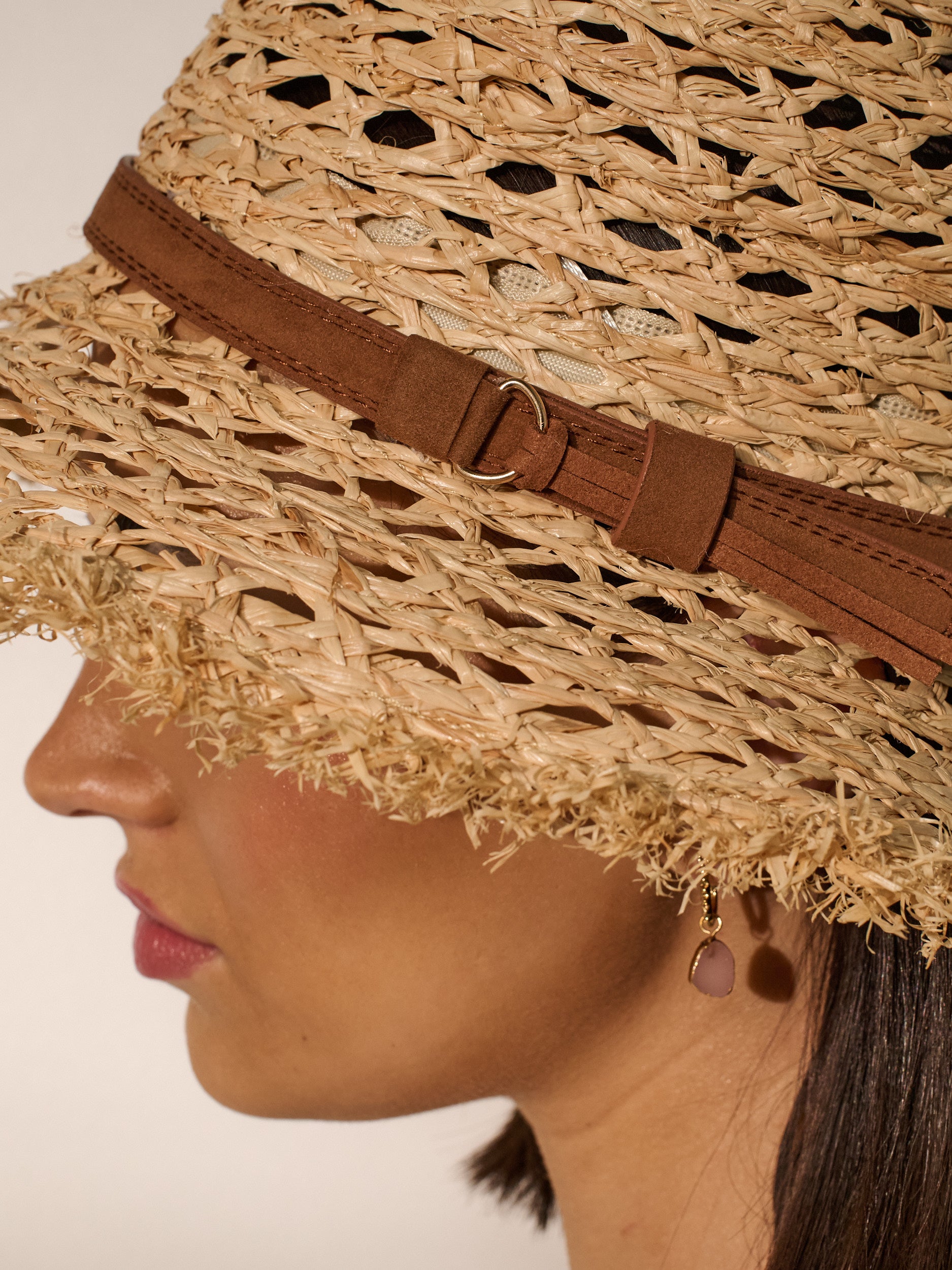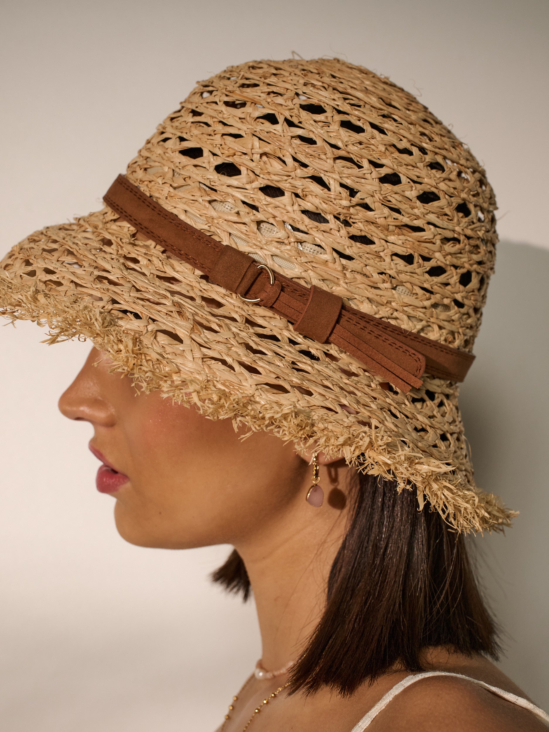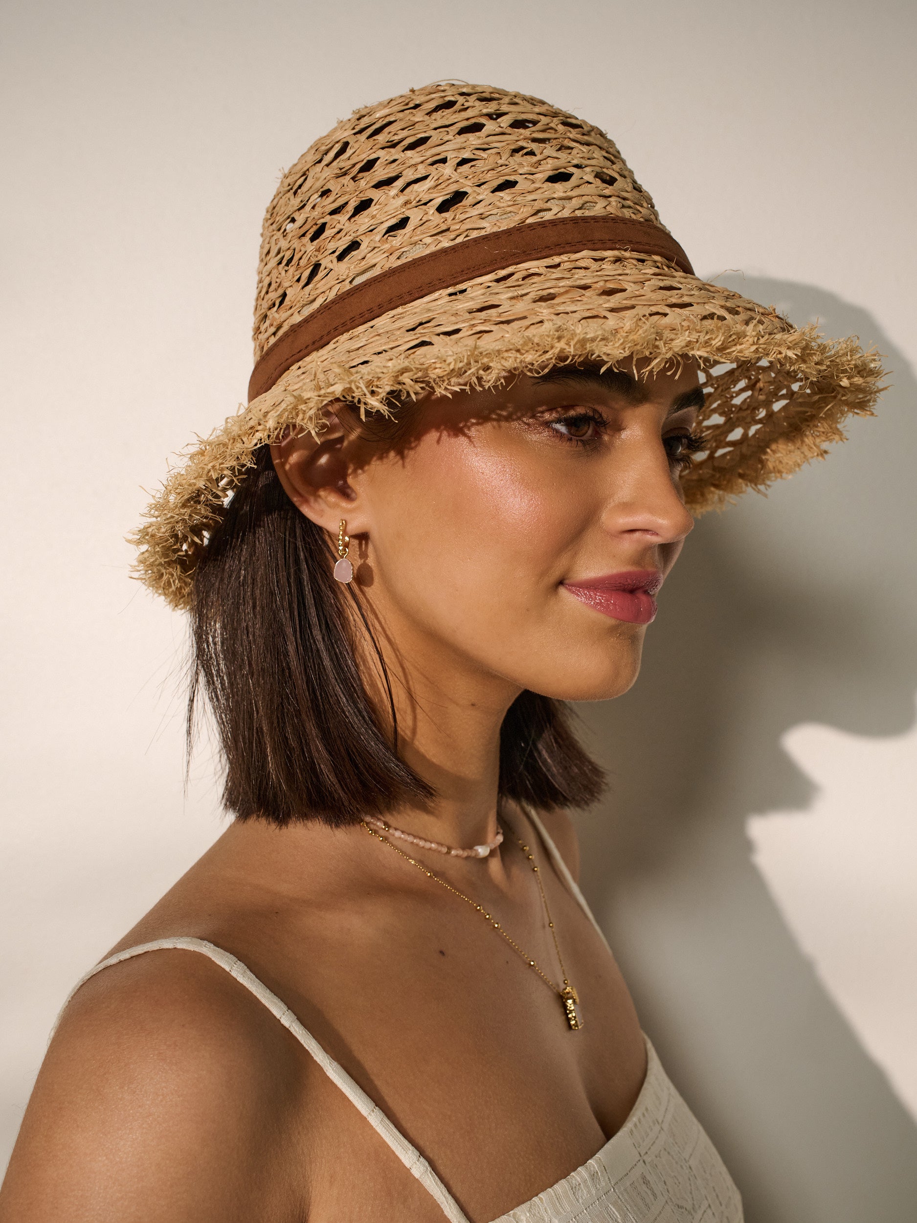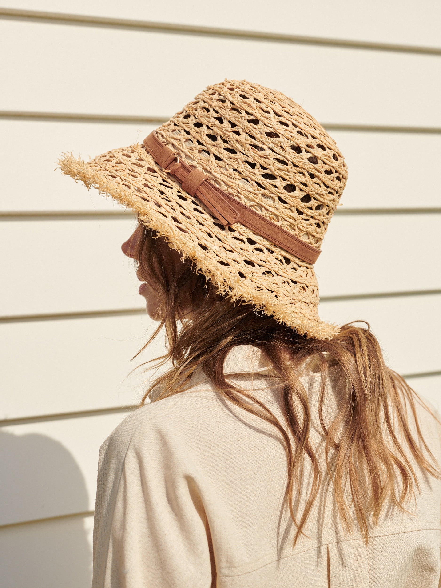 Soft and lightweight, this Derby Frayed Summer Straw Hat is perfect for any summer occasion. Featuring a rounded crown for a more relaxed feel, the delicate frayed edges bring a touch of sophistication with a subtle texture. A stunning statement headpiece for a luxurious summer look.