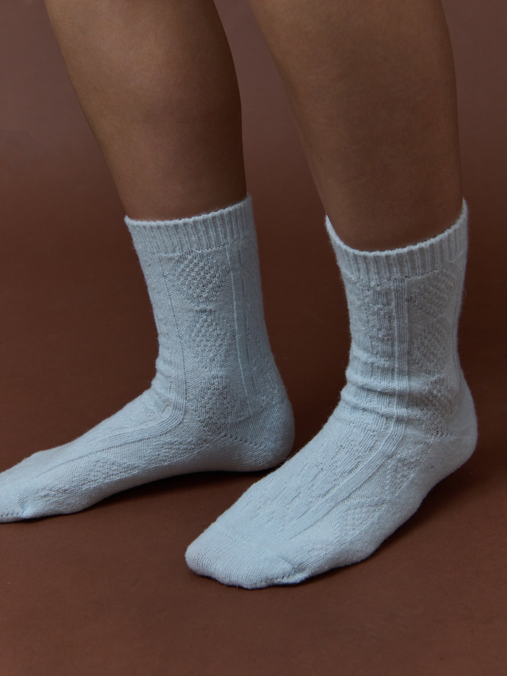Fisherman Wool Crew Socks in Blue