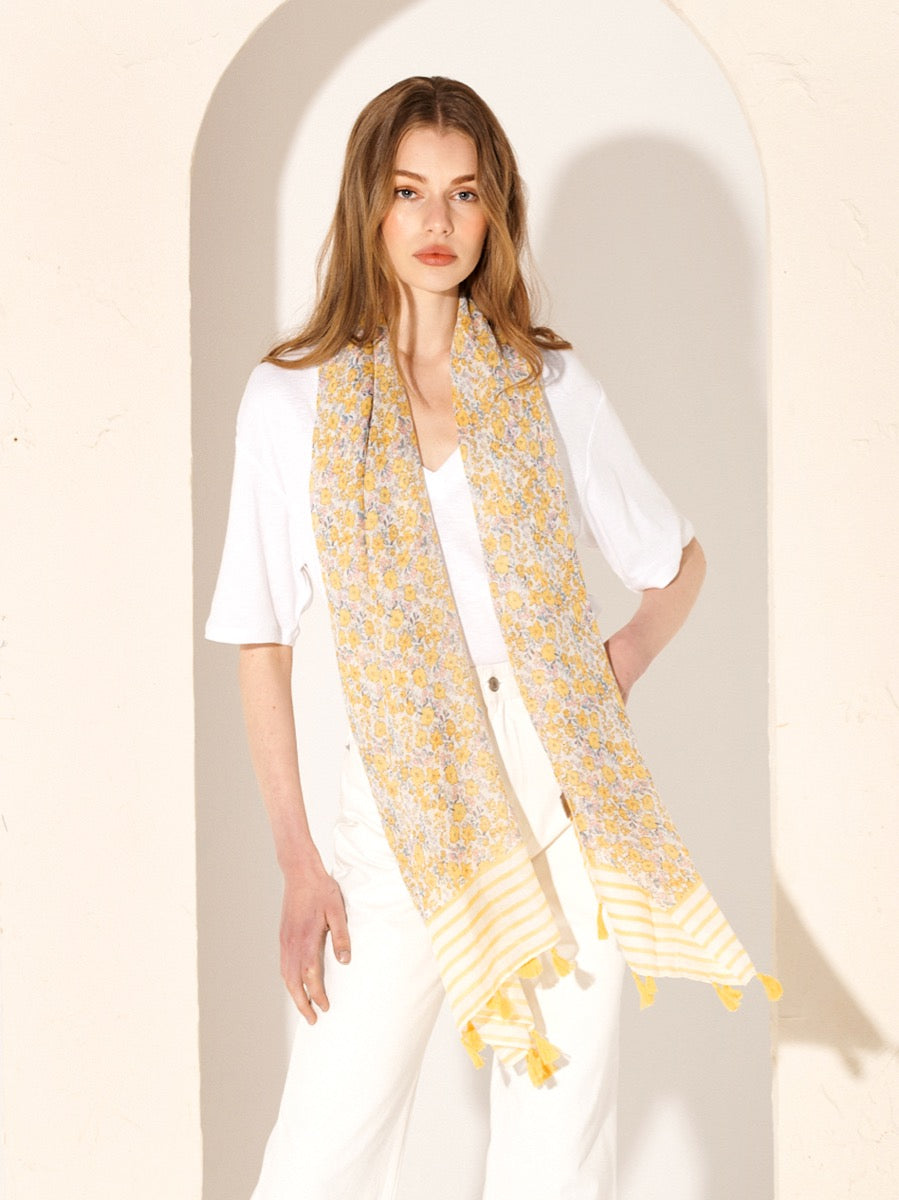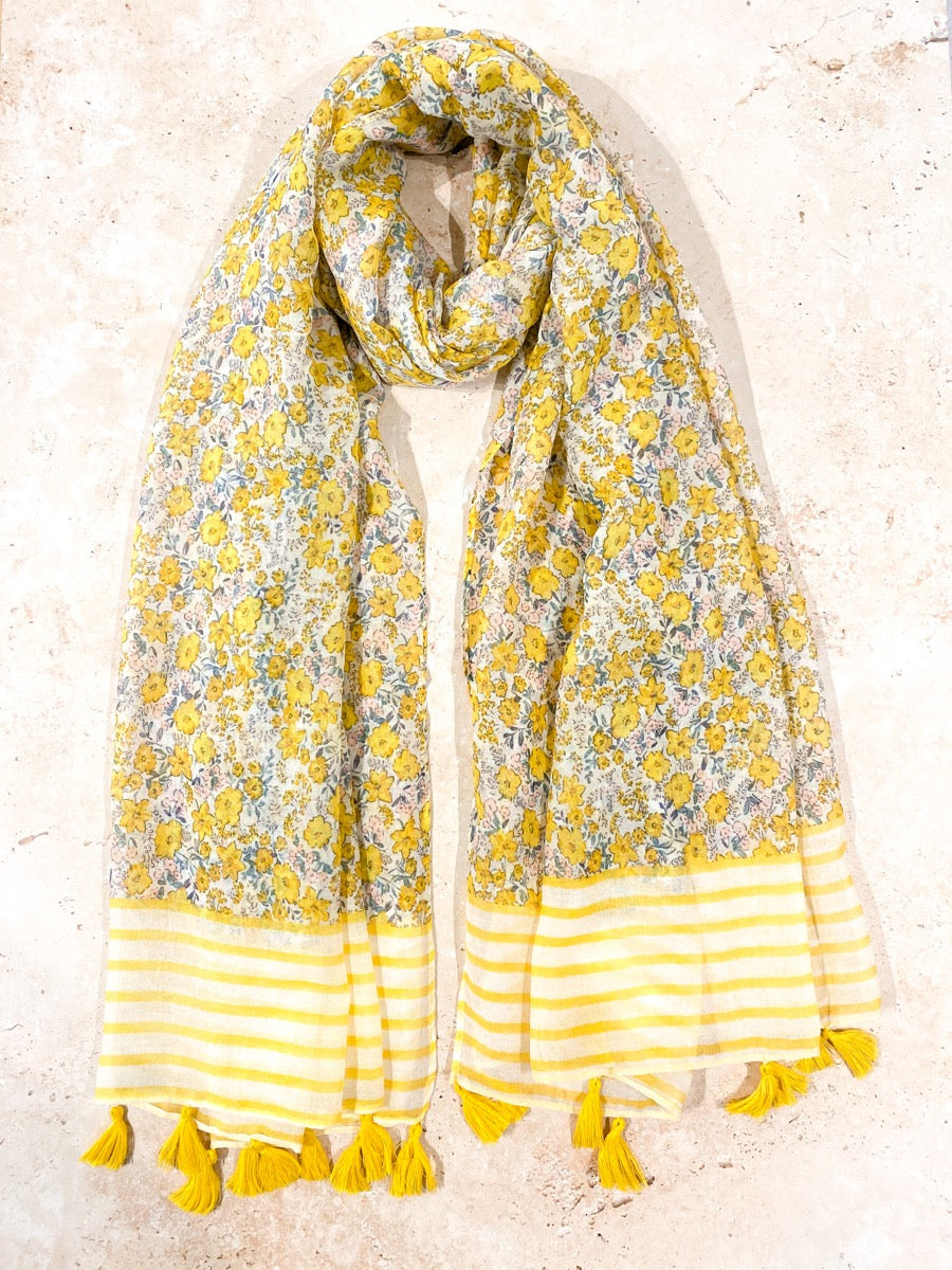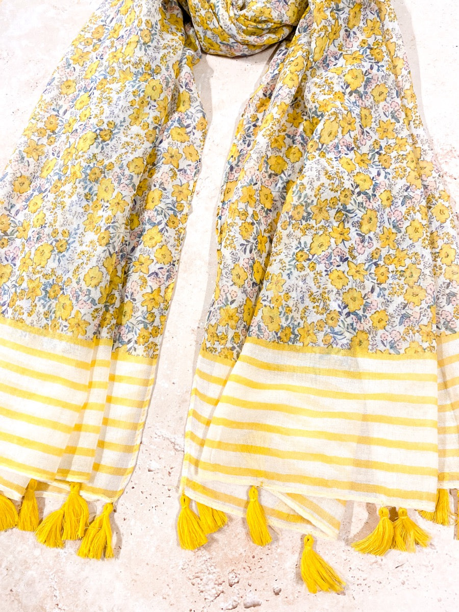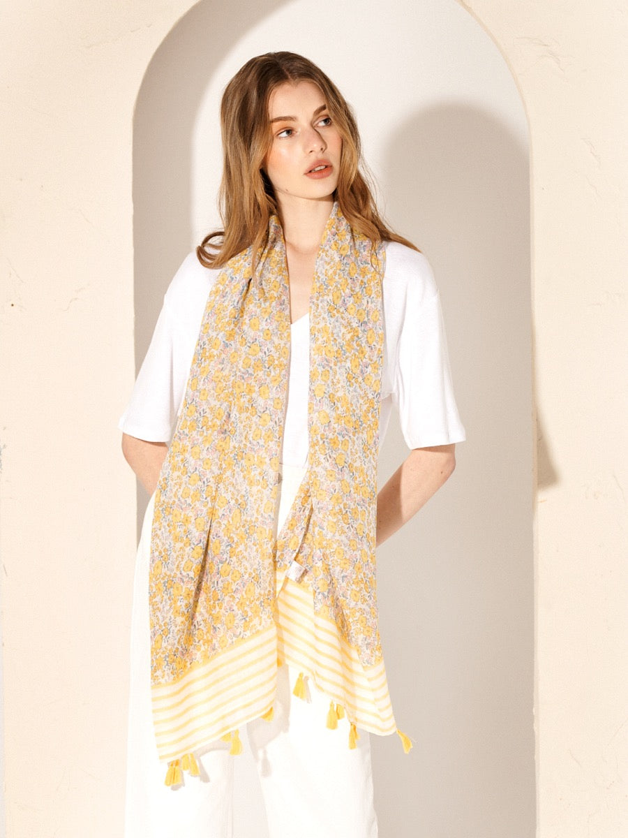 Floral Print Striped Lightweight Scarf