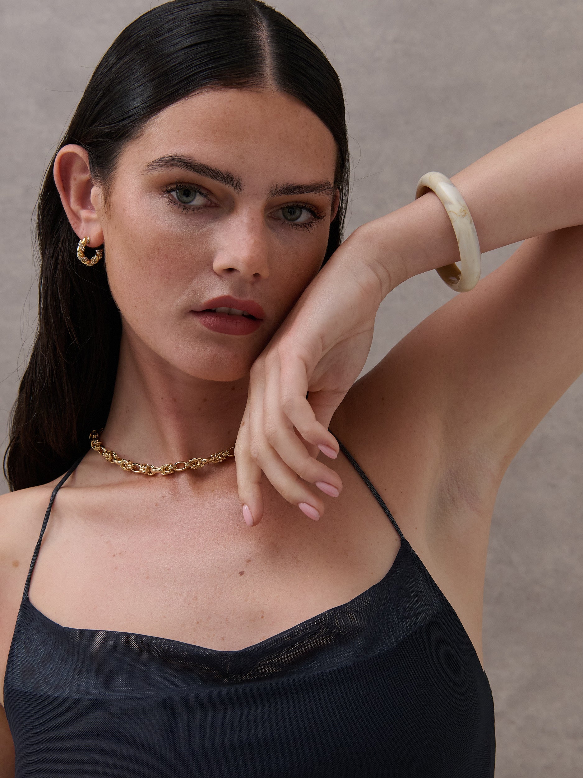 Add a chic touch to any outfit with our Forum Bangle in Stone. With their lightweight feel, they are comfortable to wear all day long. A must-have accessory for any fashion lover.