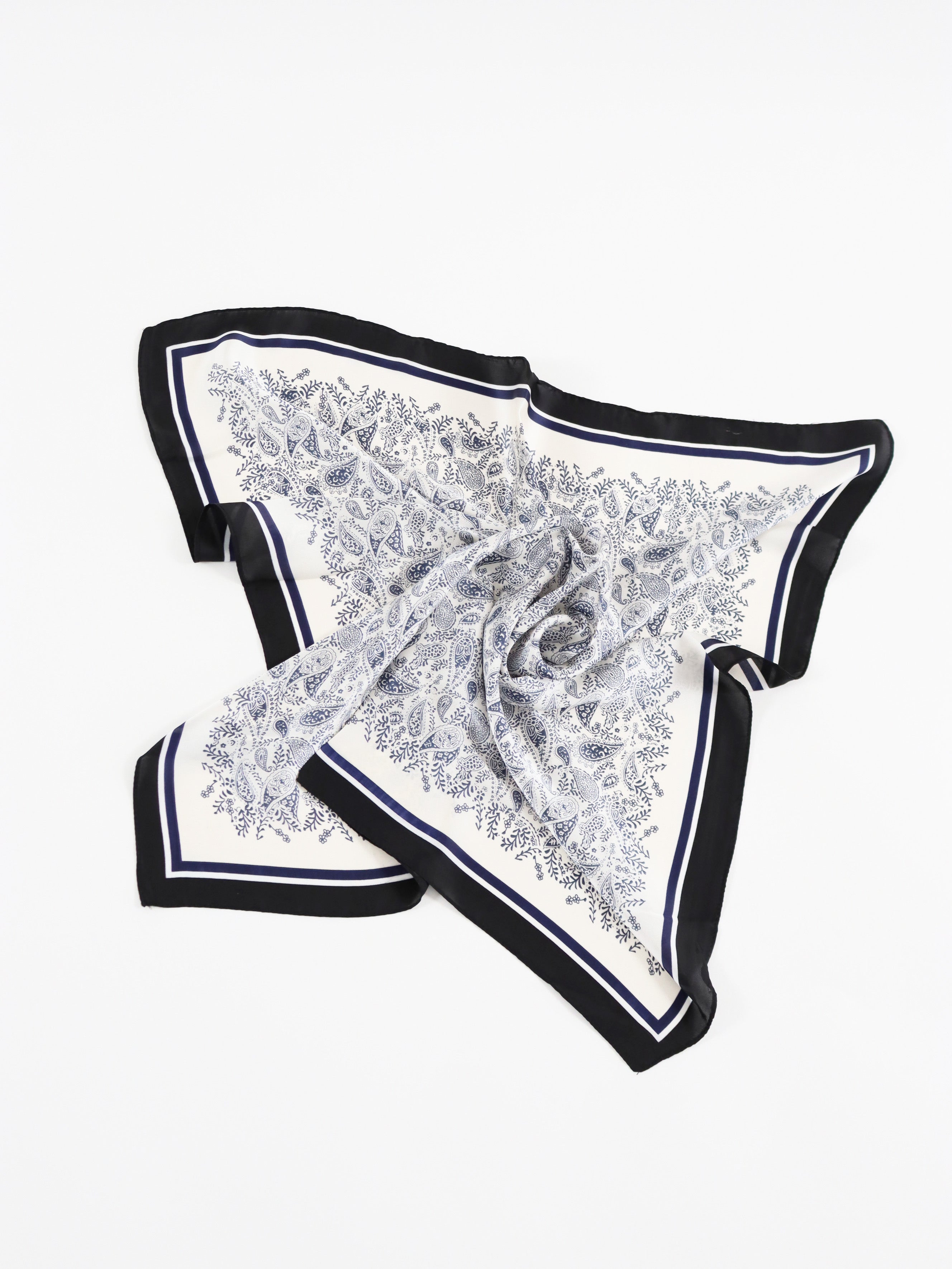The Freya Paisley Bandana Scarf adds a touch of vintage charm with its classic paisley print. Lightweight and versatile - wear it as a neck tie, headband, or hair wrap for effortless everyday style.