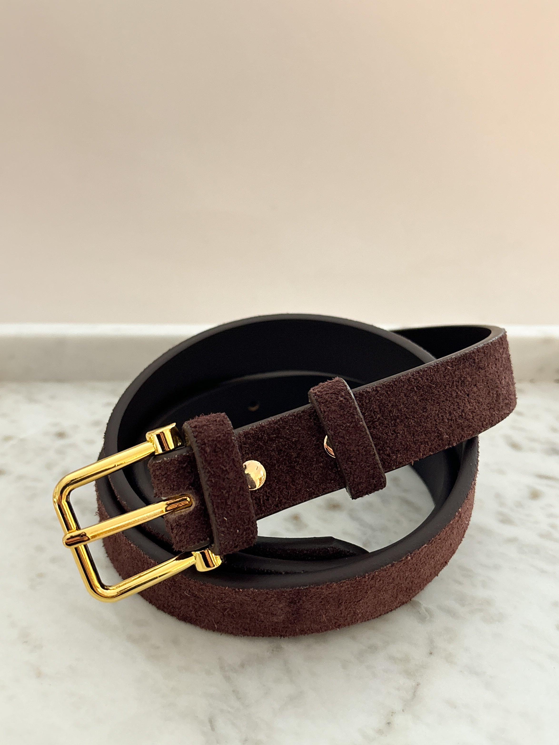 Halley Suede Buckle Belt in Brown