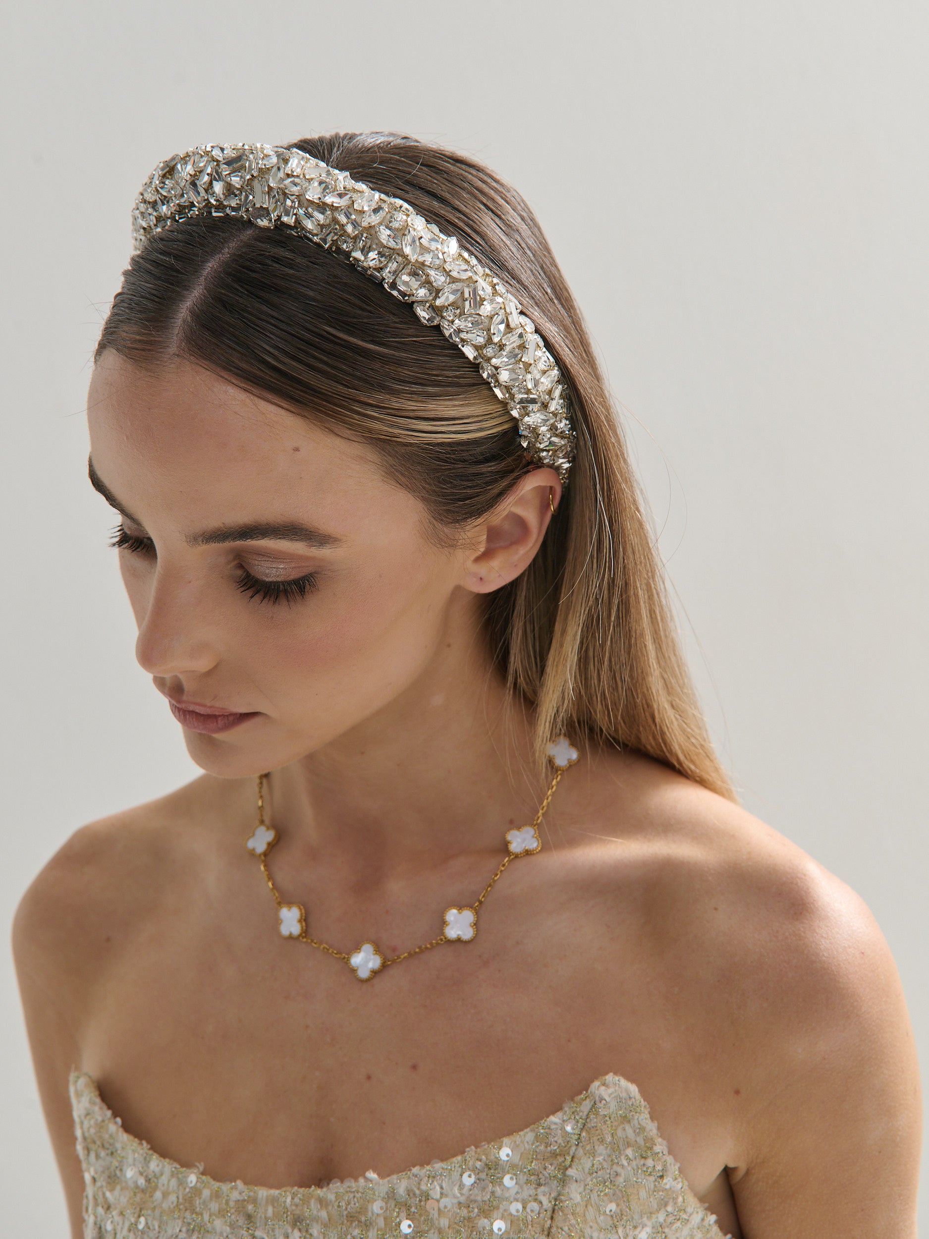Dress to impress with the Jennifer Cubic Statement Headband, an exquisite accessory crafted with shimmering crystal beads and exquisite craftsmanship. Transform any look with that classic, timeless, and sophisticated touch.