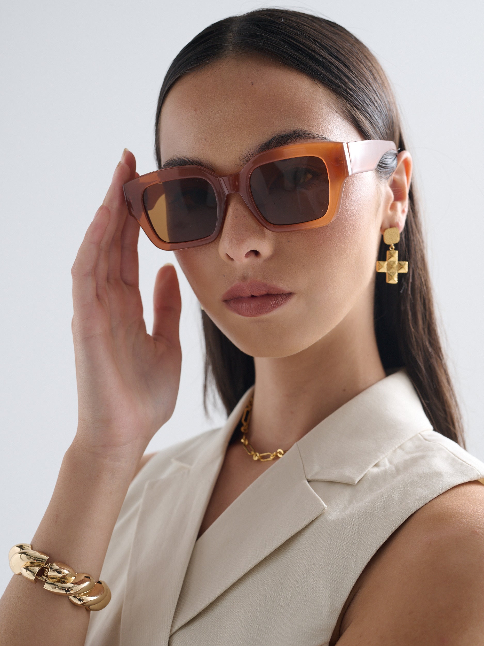 Jollie Angular Sunglasses in Brown