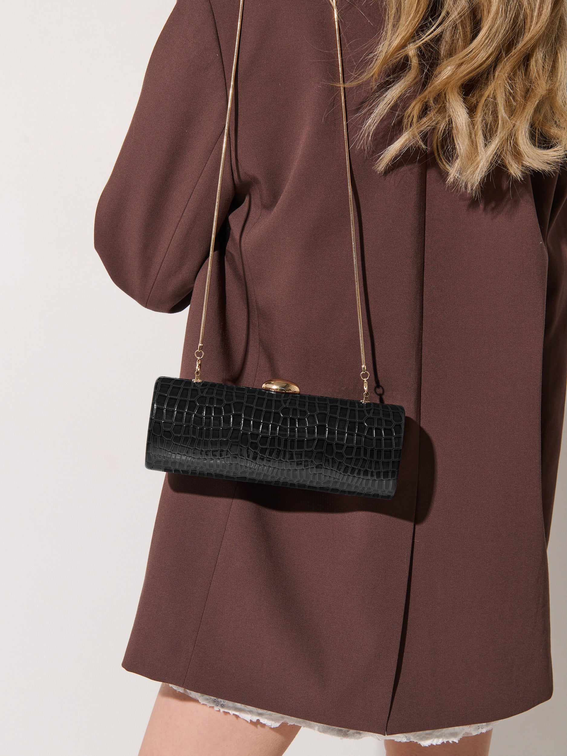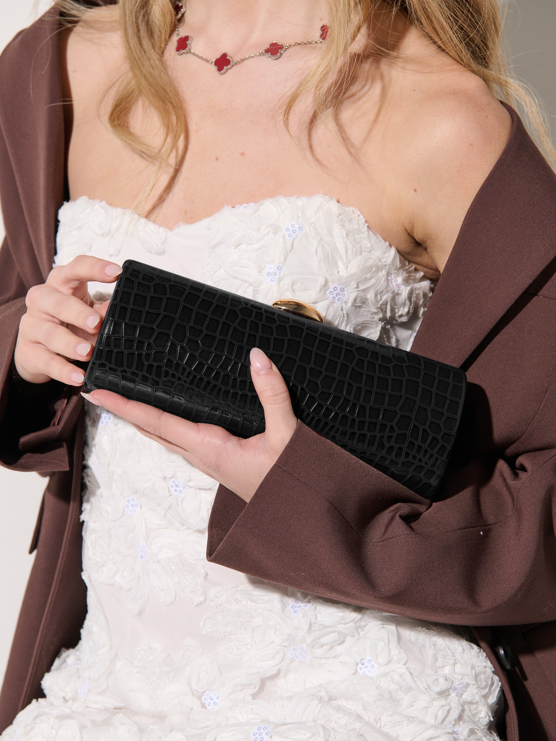 Exude elegance and timeless style with our Karina Evening Clutch Bag. Featuring premium croc textured outer shell, this statement piece brings a touch of luxury to any special occasion.