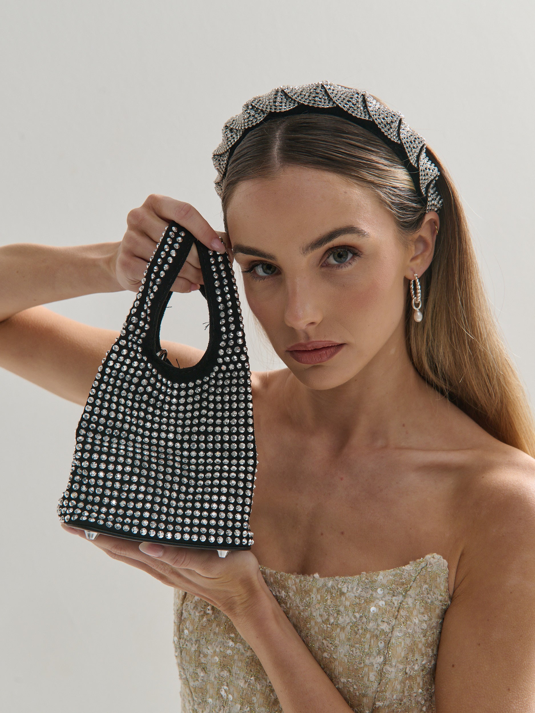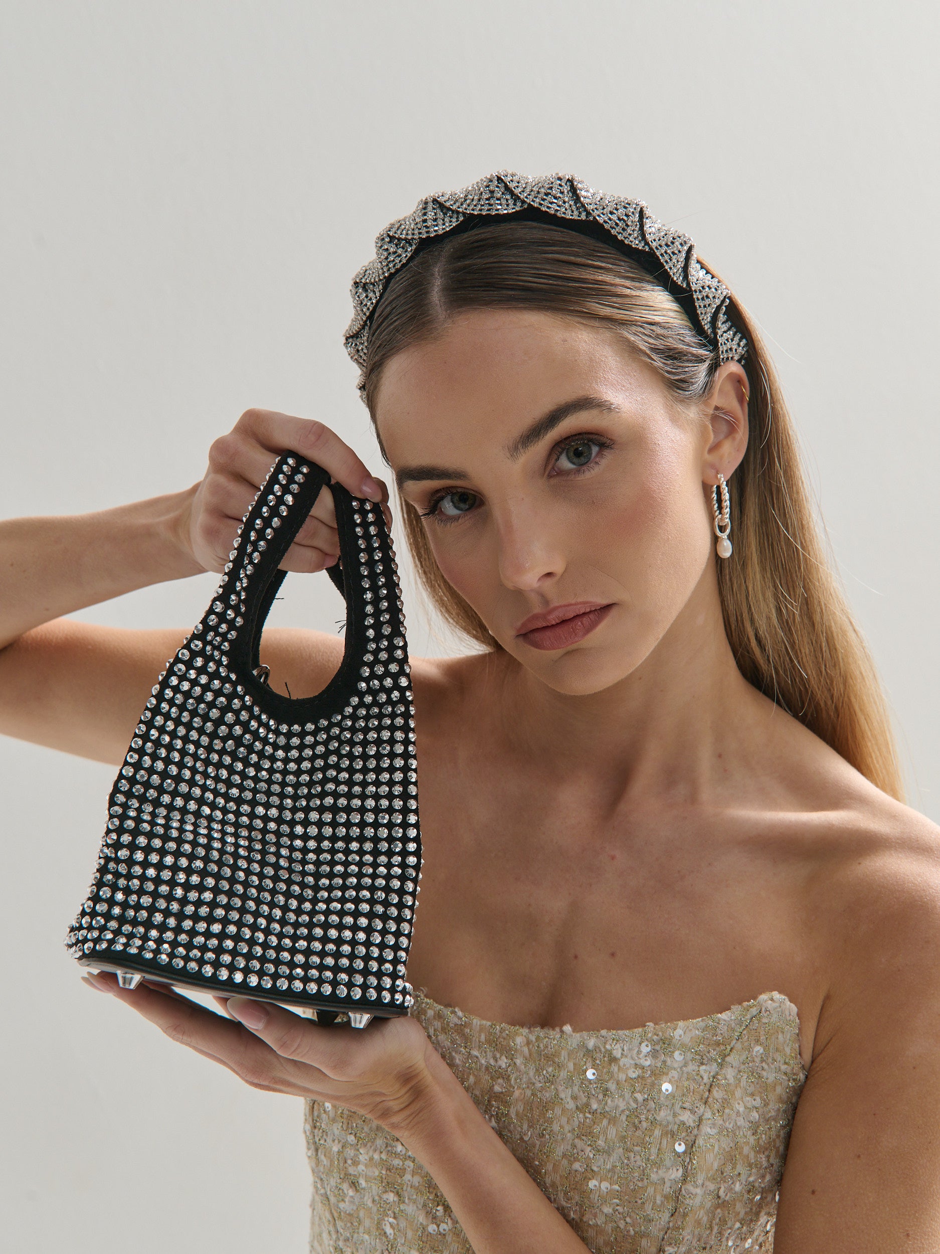Khloe Rhinestone Party Bag in Black