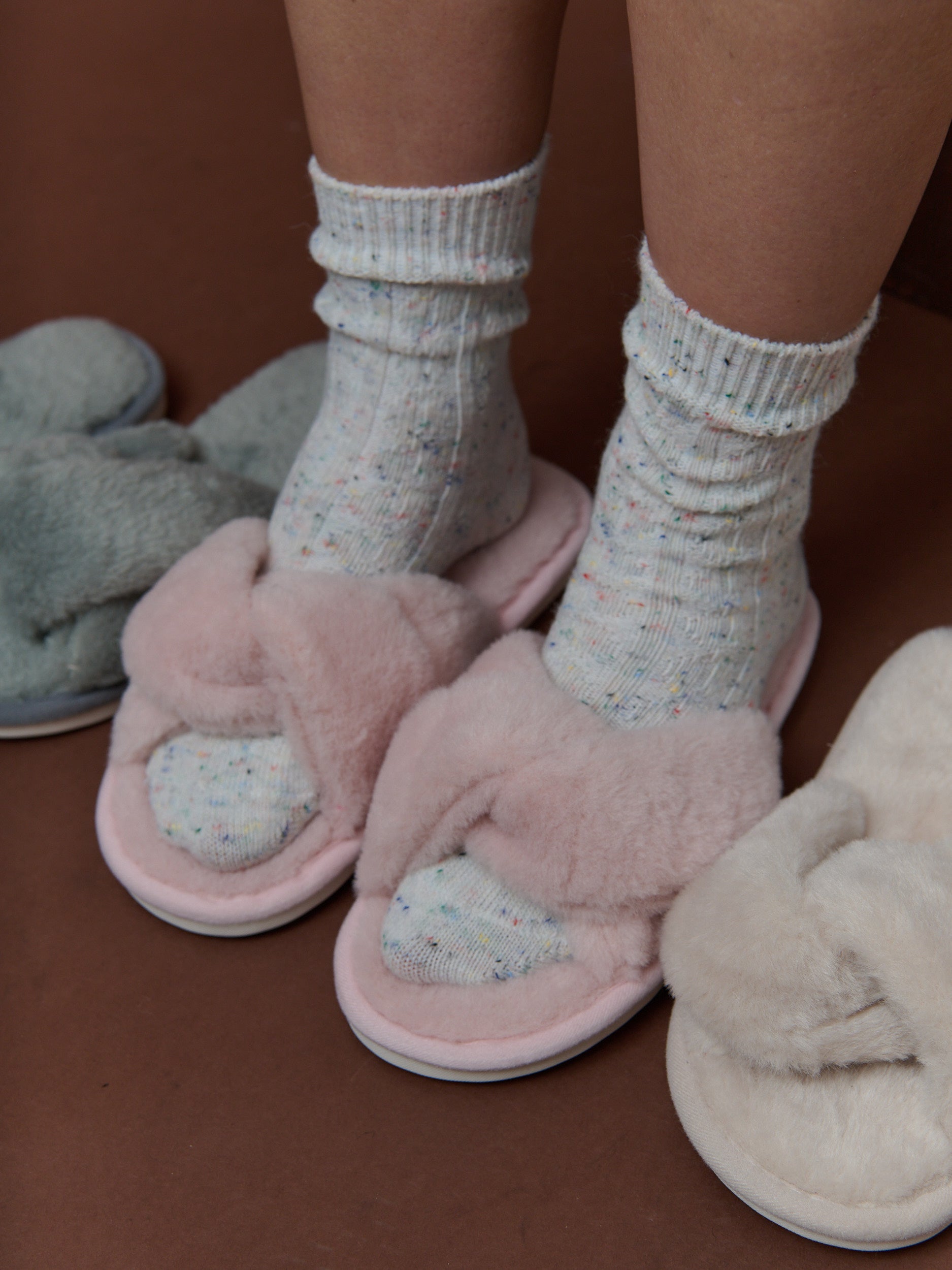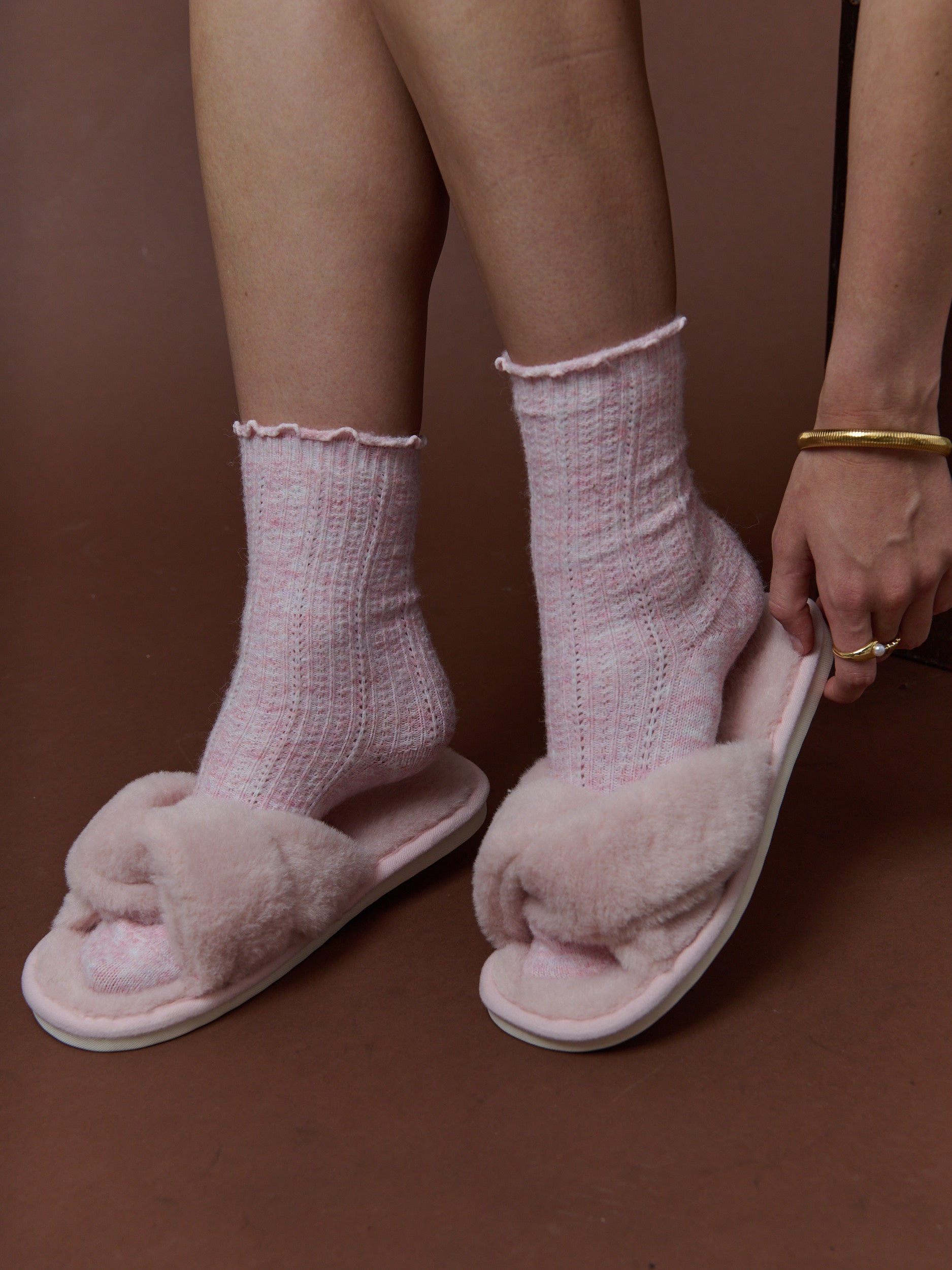 Knotted Fluffy Slippers in Pink (2SM & 2ML/pack)
