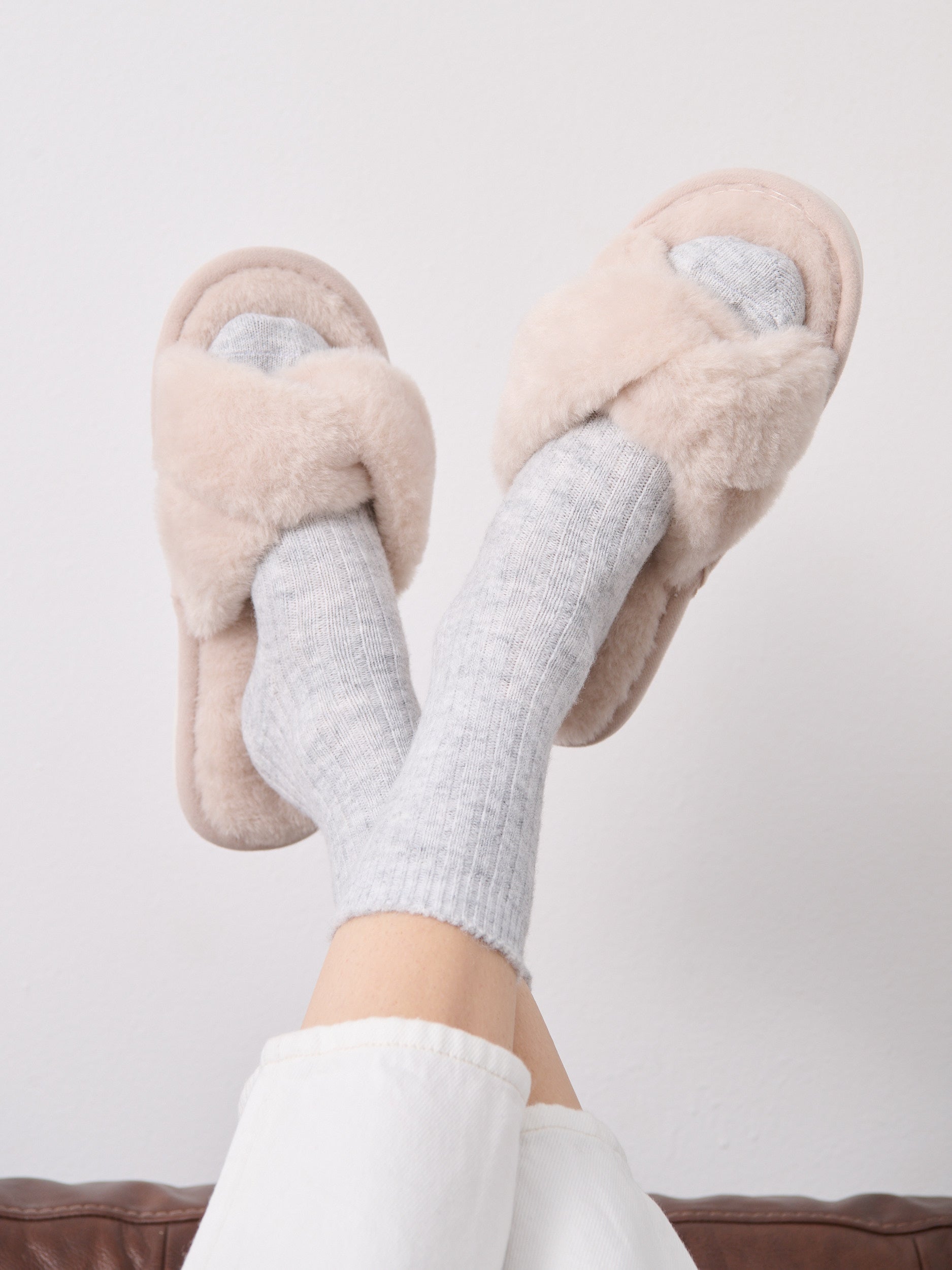 Knotted Fluffy Slippers in White (2SM & 2ML/pack)
