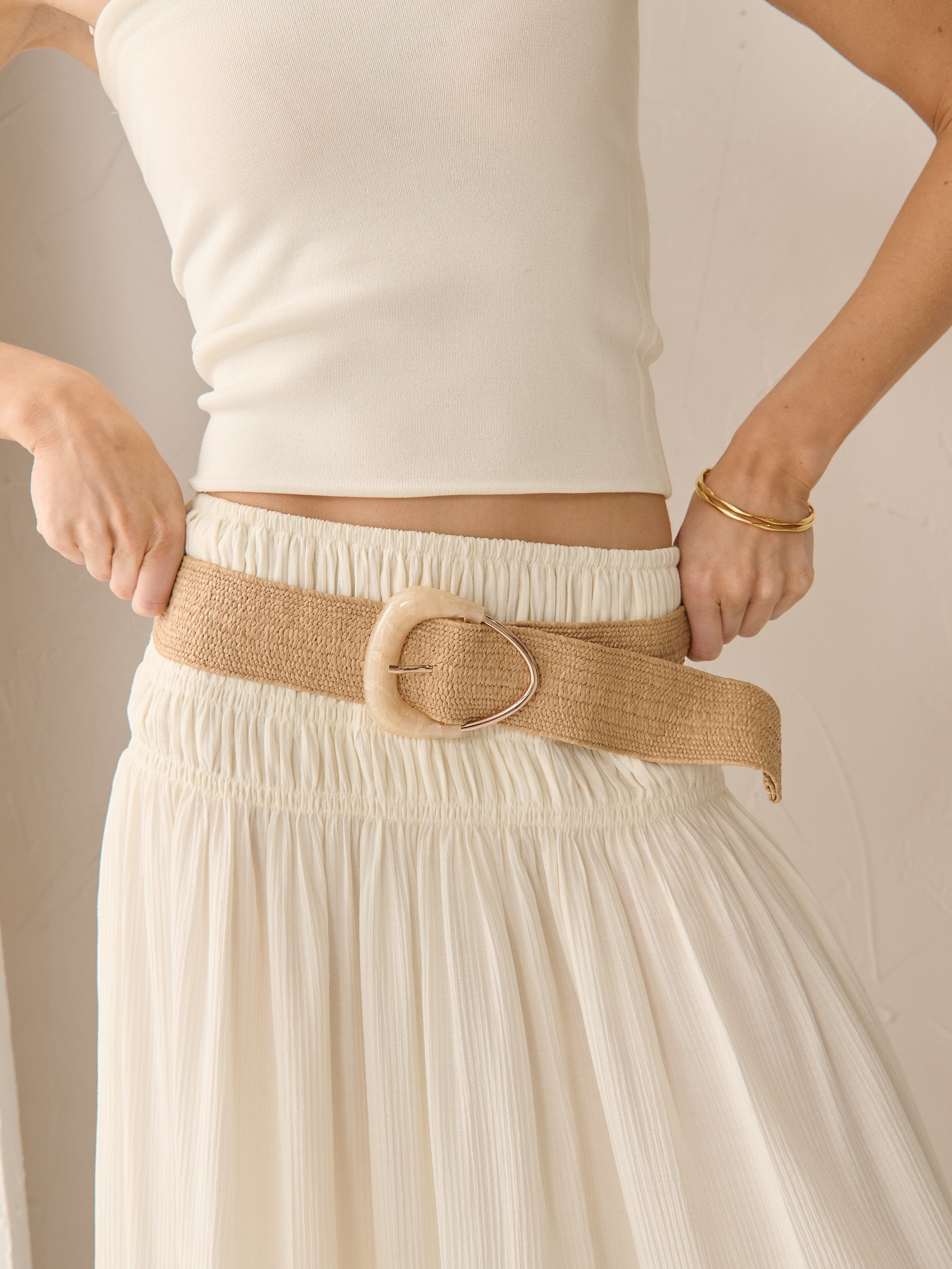 Upgrade your wardrobe with our Lana Acrylic Buckle Straw Belt. Its stretchy design allows for comfortable and versatile wear, while the acrylic buckle adds a touch of style to any outfit. Perfect for adding a trendy and functional piece to your collection.