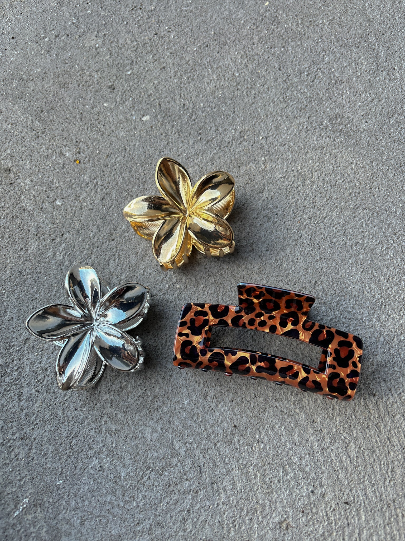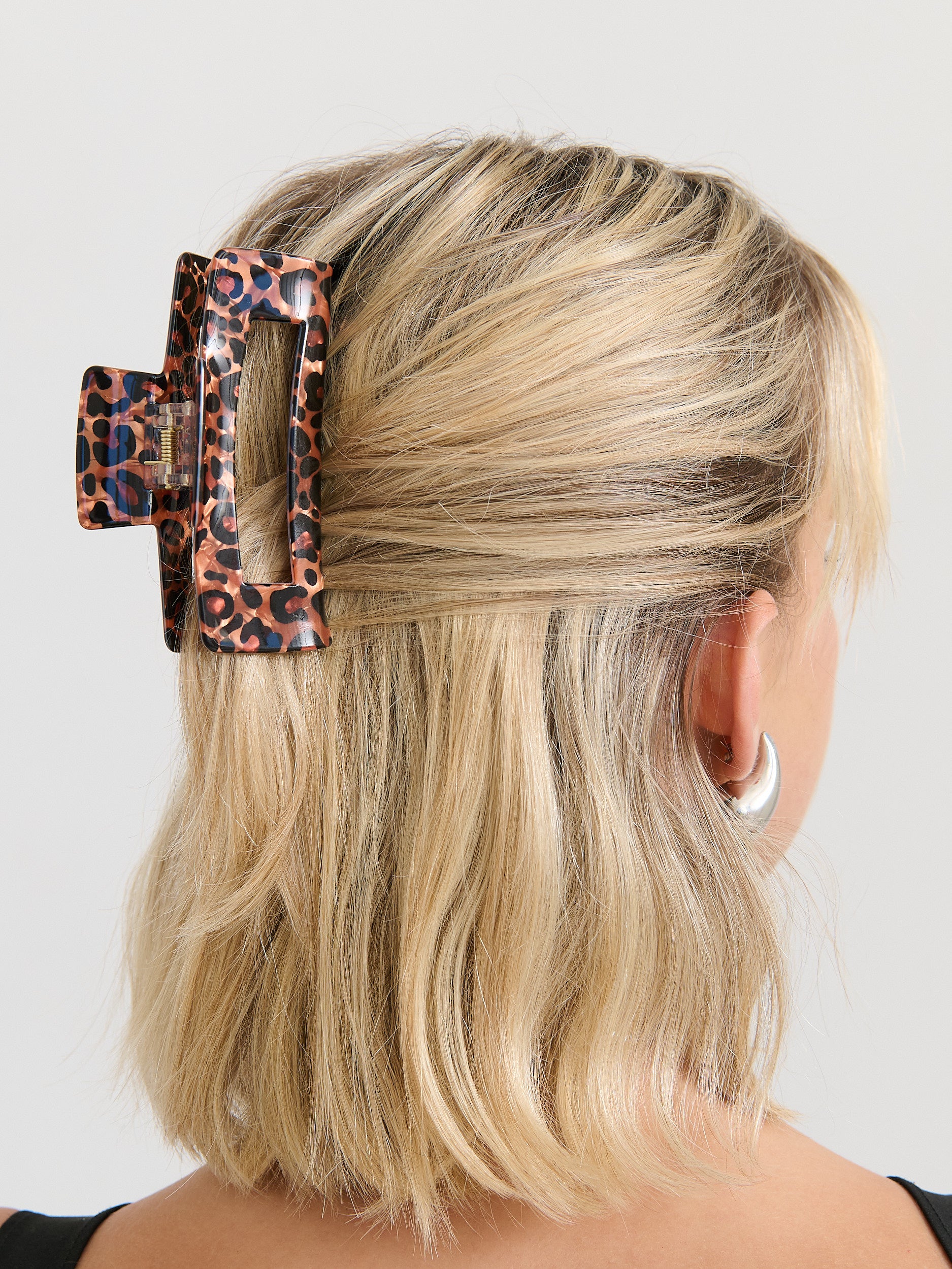 Features leopard printed with coated layer and great grip, perfect for half ups as well as keeping all your hair up all day.