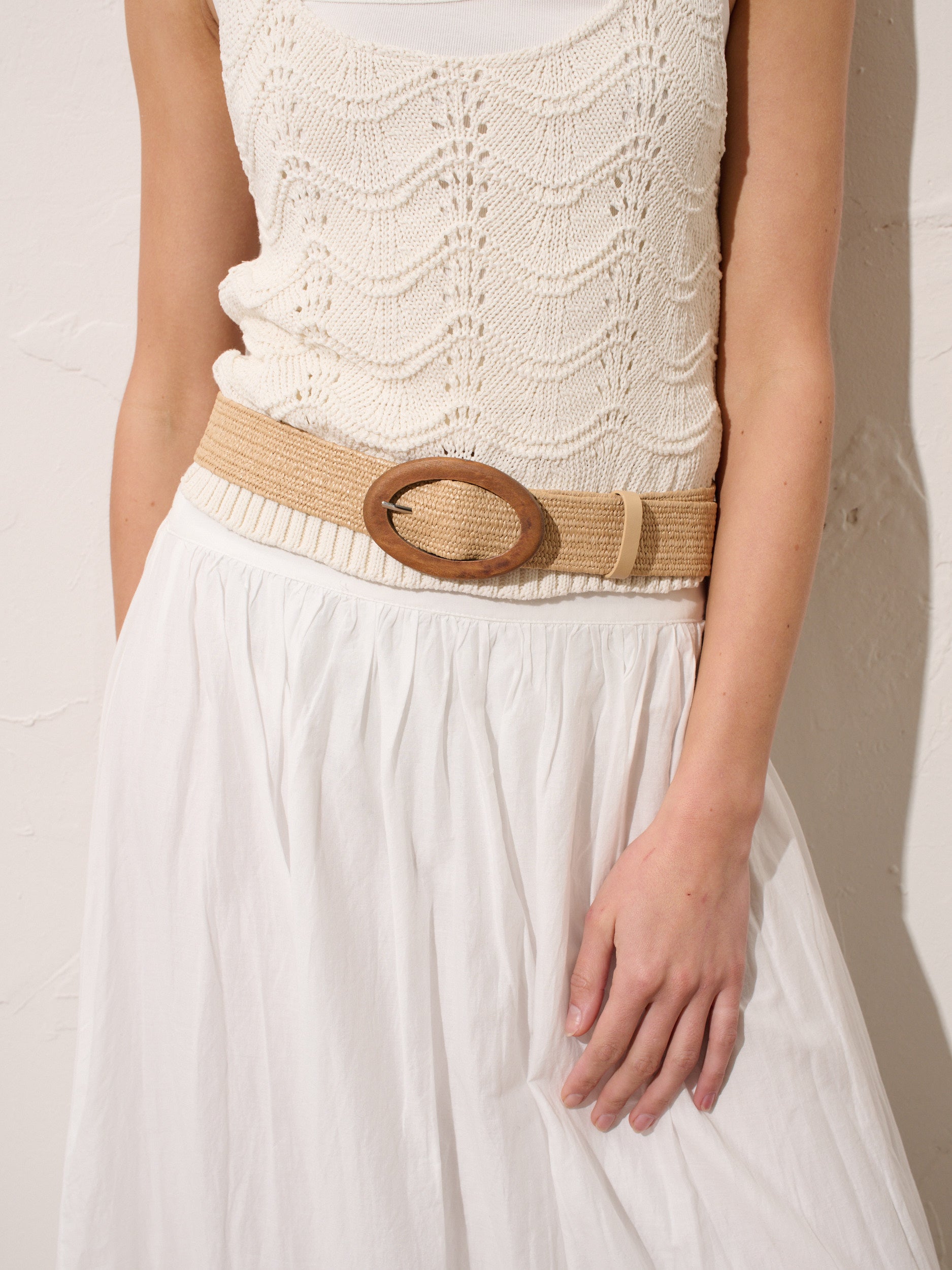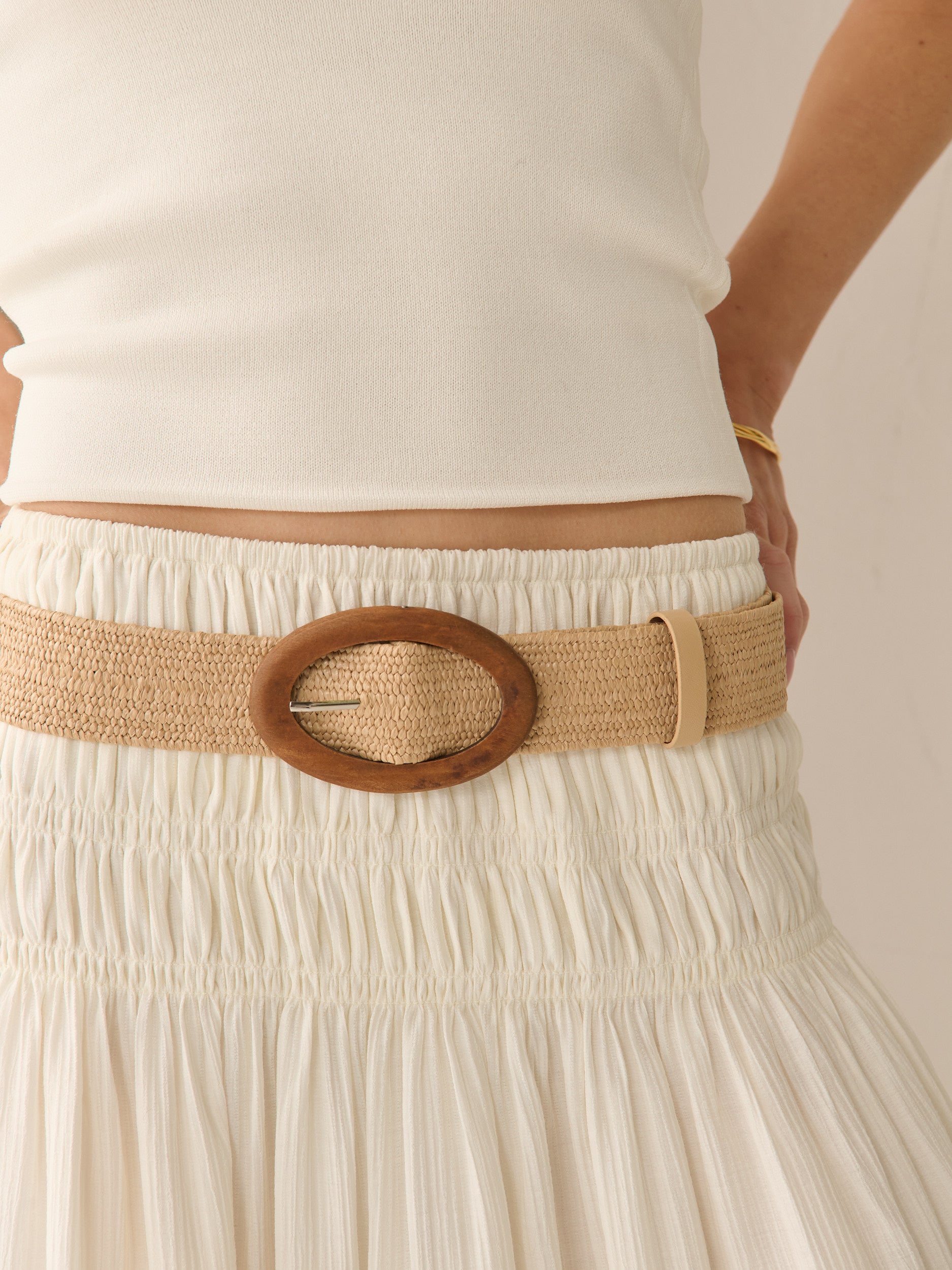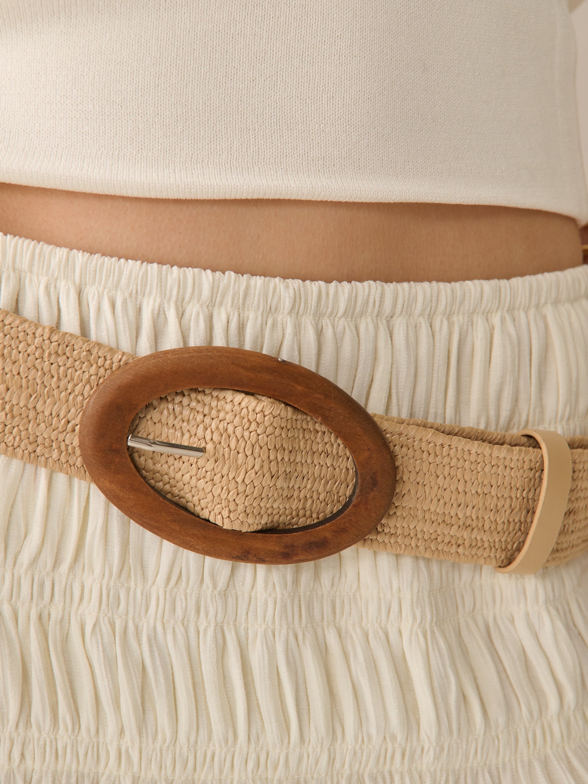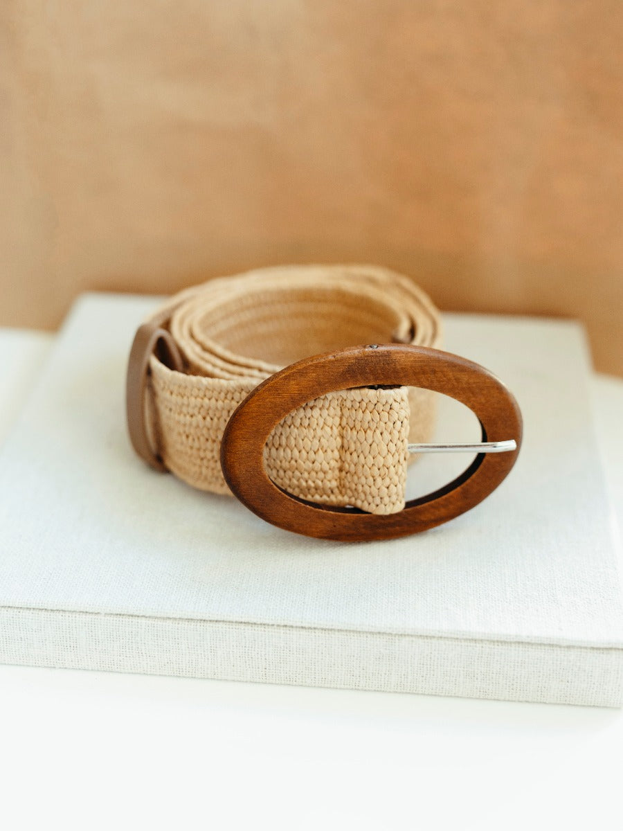 Complete your summer look with the Lila Wooden Buckle Straw Belt. Made from high-quality straw material, this belt features a unique wooden buckle that adds a touch of bohemian elegance.