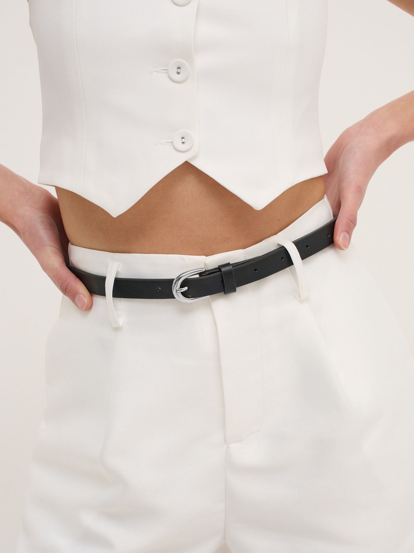 Complete your look with the Lomance Skinny Belt in Silver Buckle – crafted with a straw woven texture and stretchy elastic waistband for comfort. Its elegant design will seamlessly take you from weekday to weekend style.