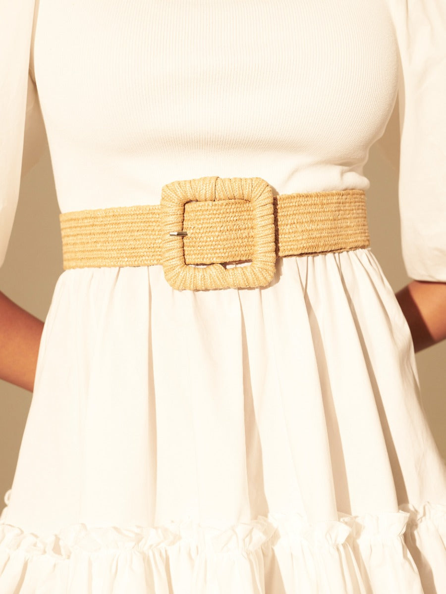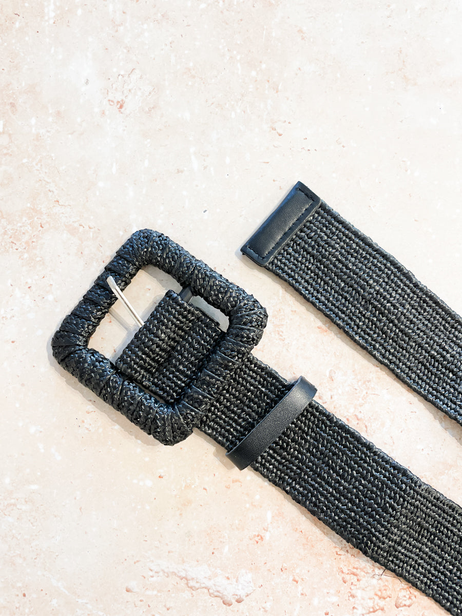 Add a touch of effortless style with this woven straw belt, finished with a bold square buckle. Perfect for cinching dresses or layering over lightweight looks.