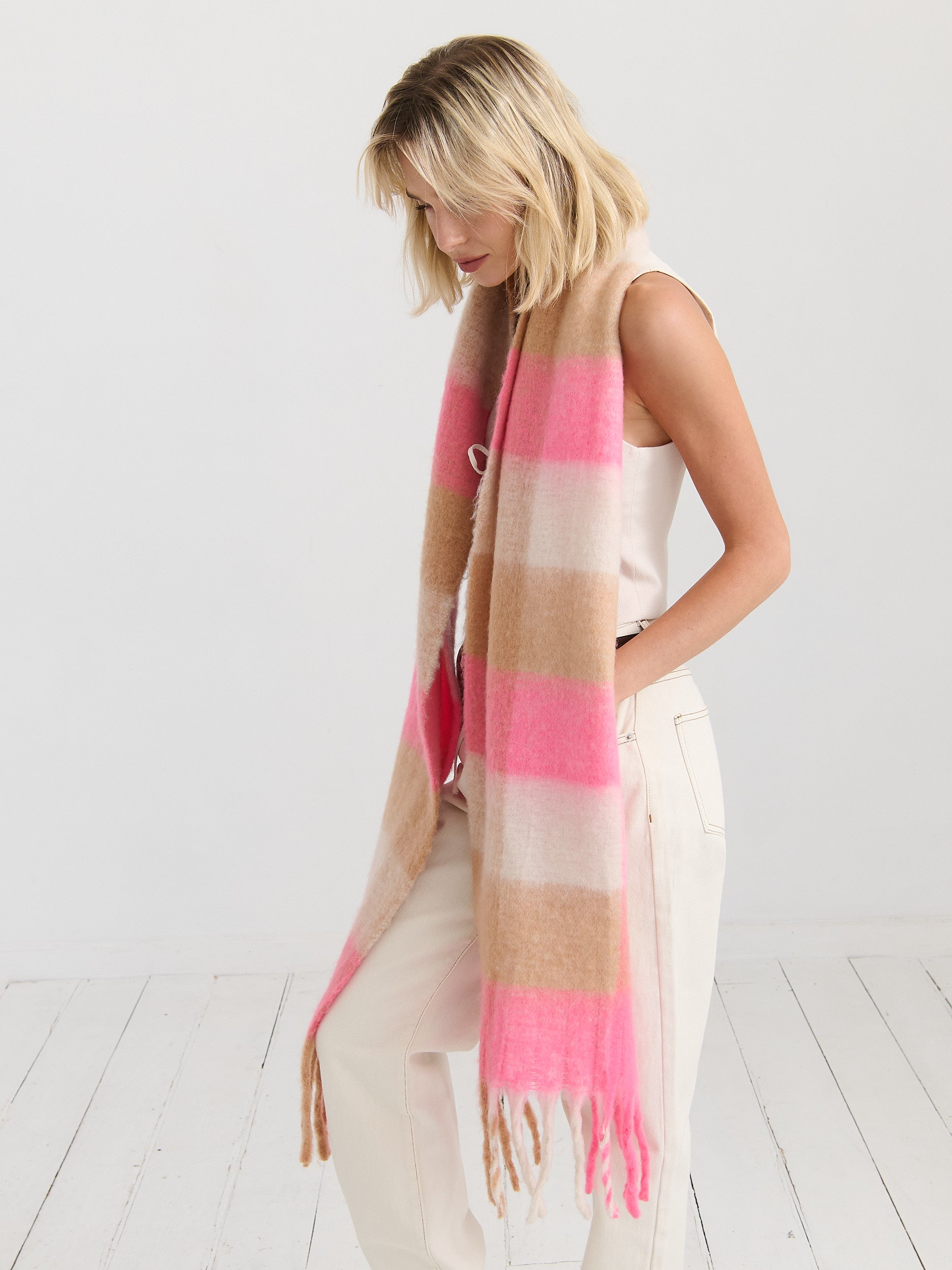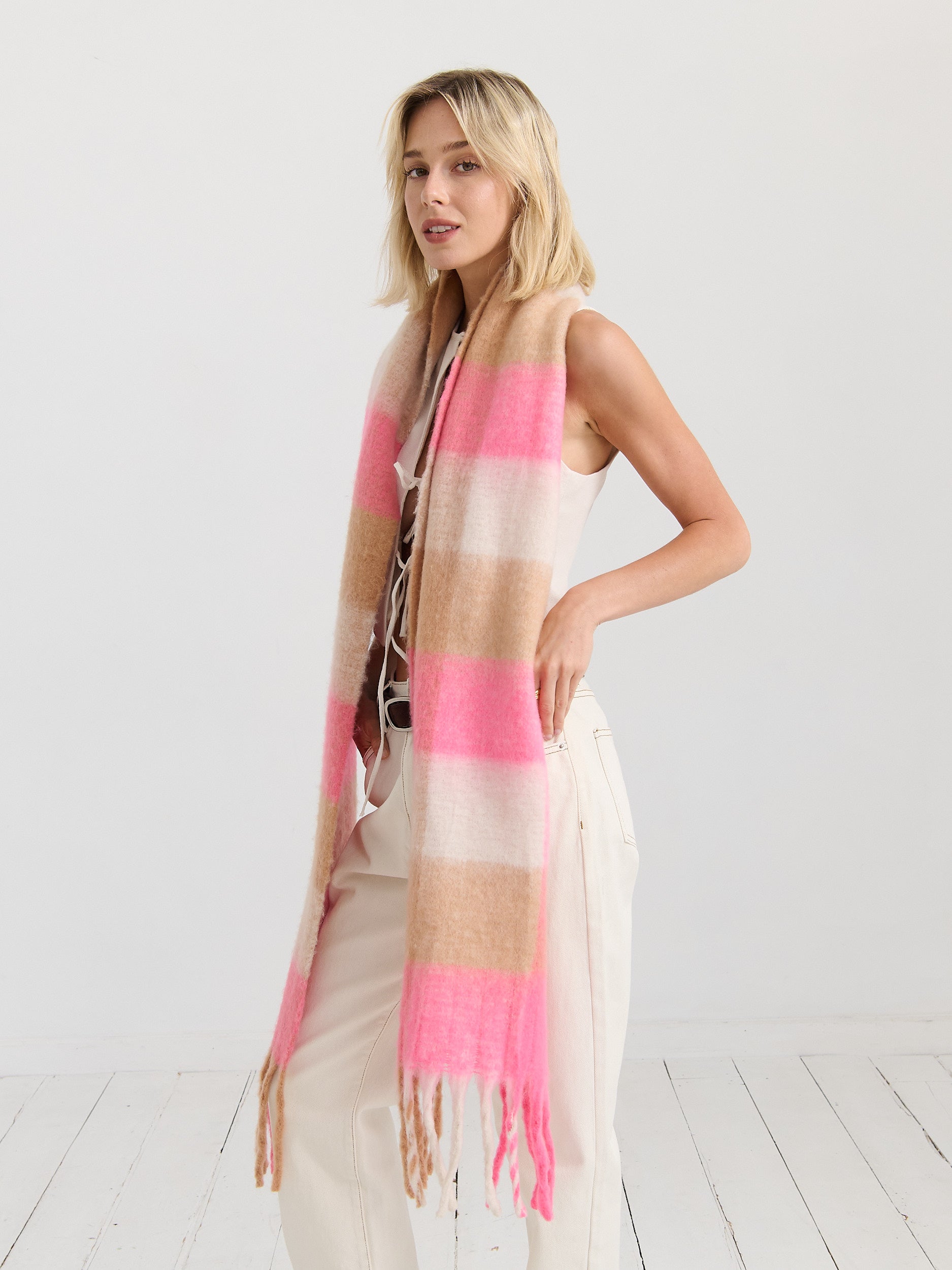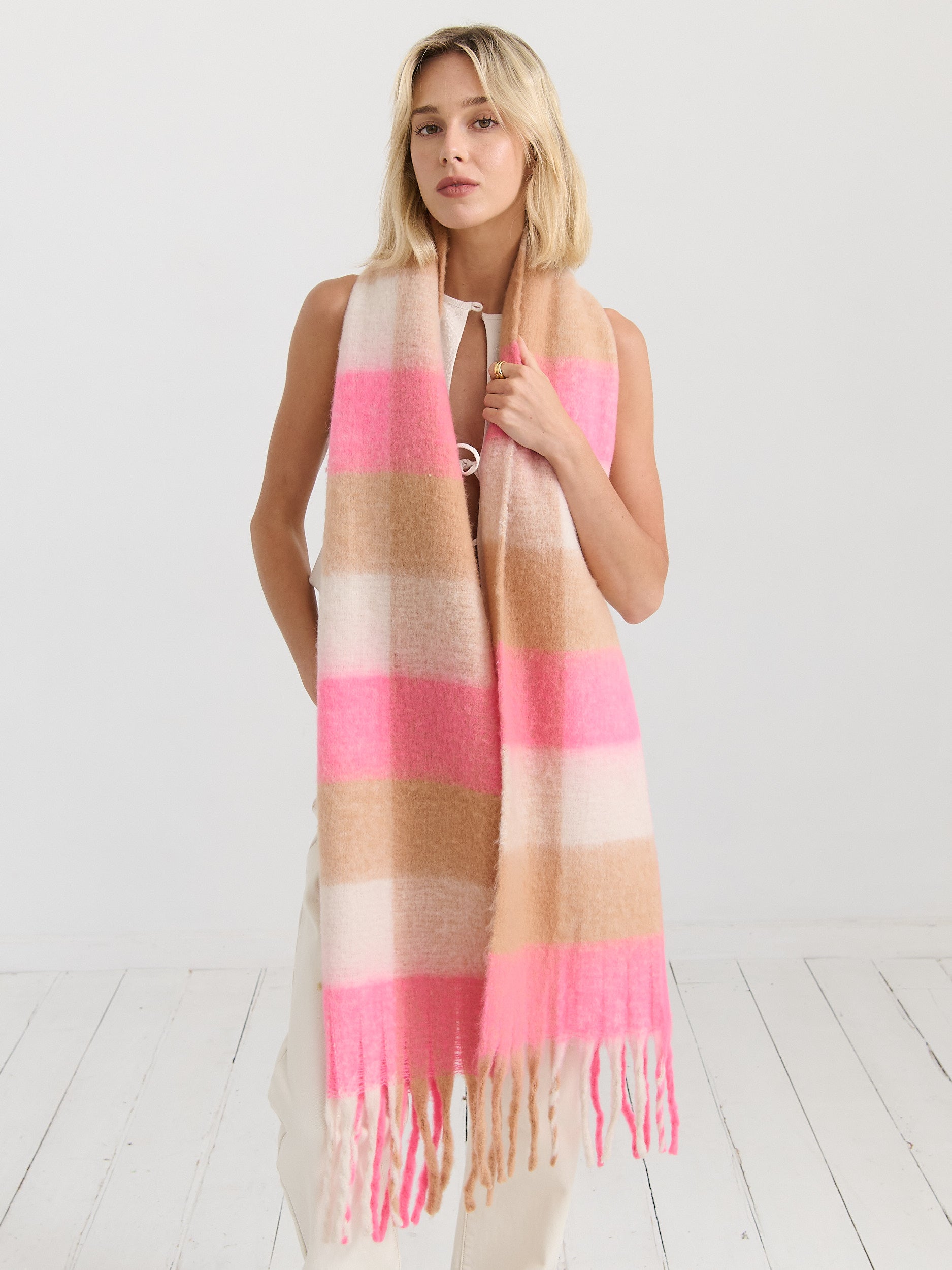 Brighten up your winter wardrobe with our Neon Pink Checkered Fluffy Scarf. Made with ultra-soft material, this playful scarf adds a pop of color to any outfit. Stay warm and stylish all season long!