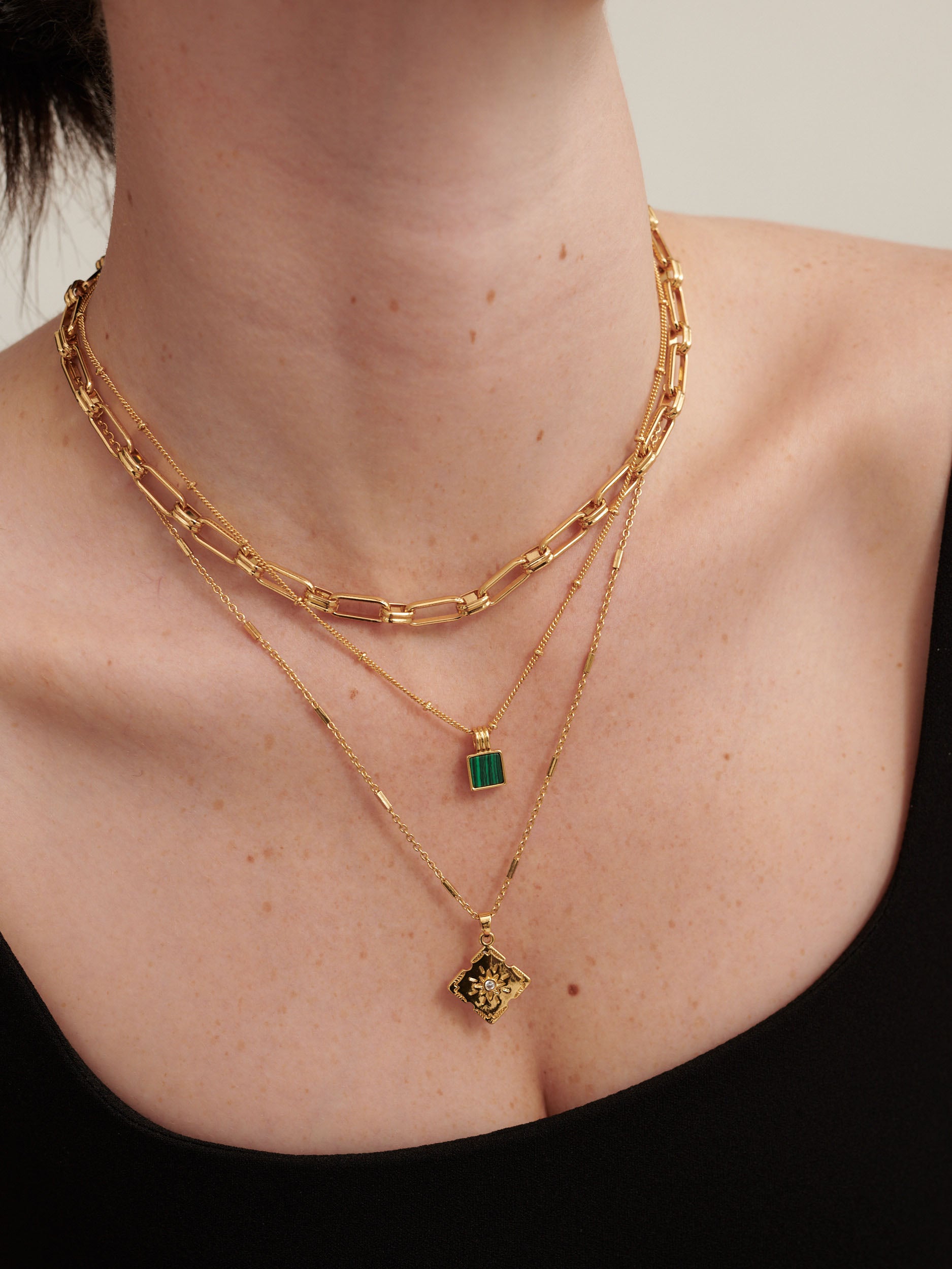 - 18K gold plating on brass base metal, topped with protective anti-tarnish layer