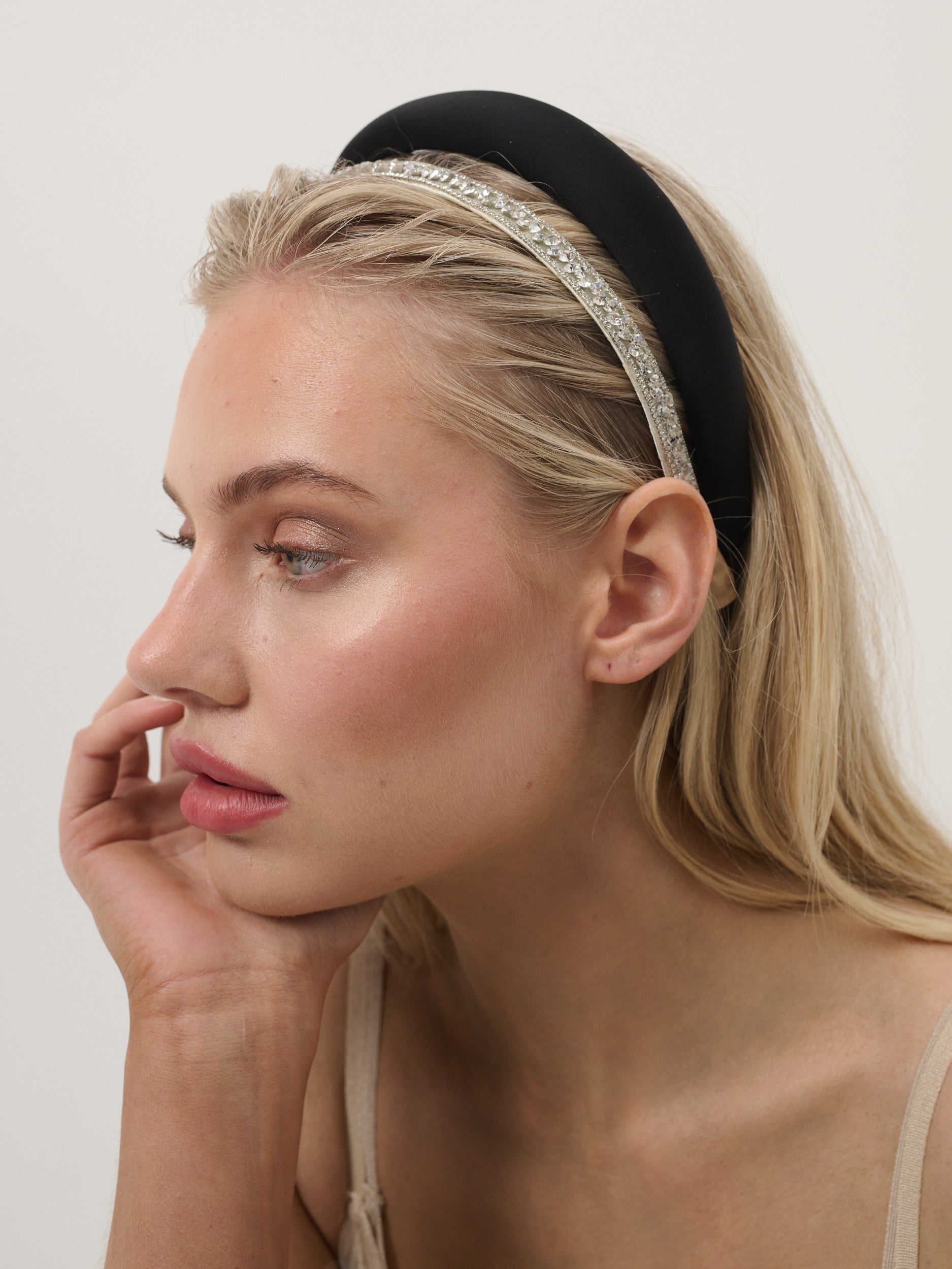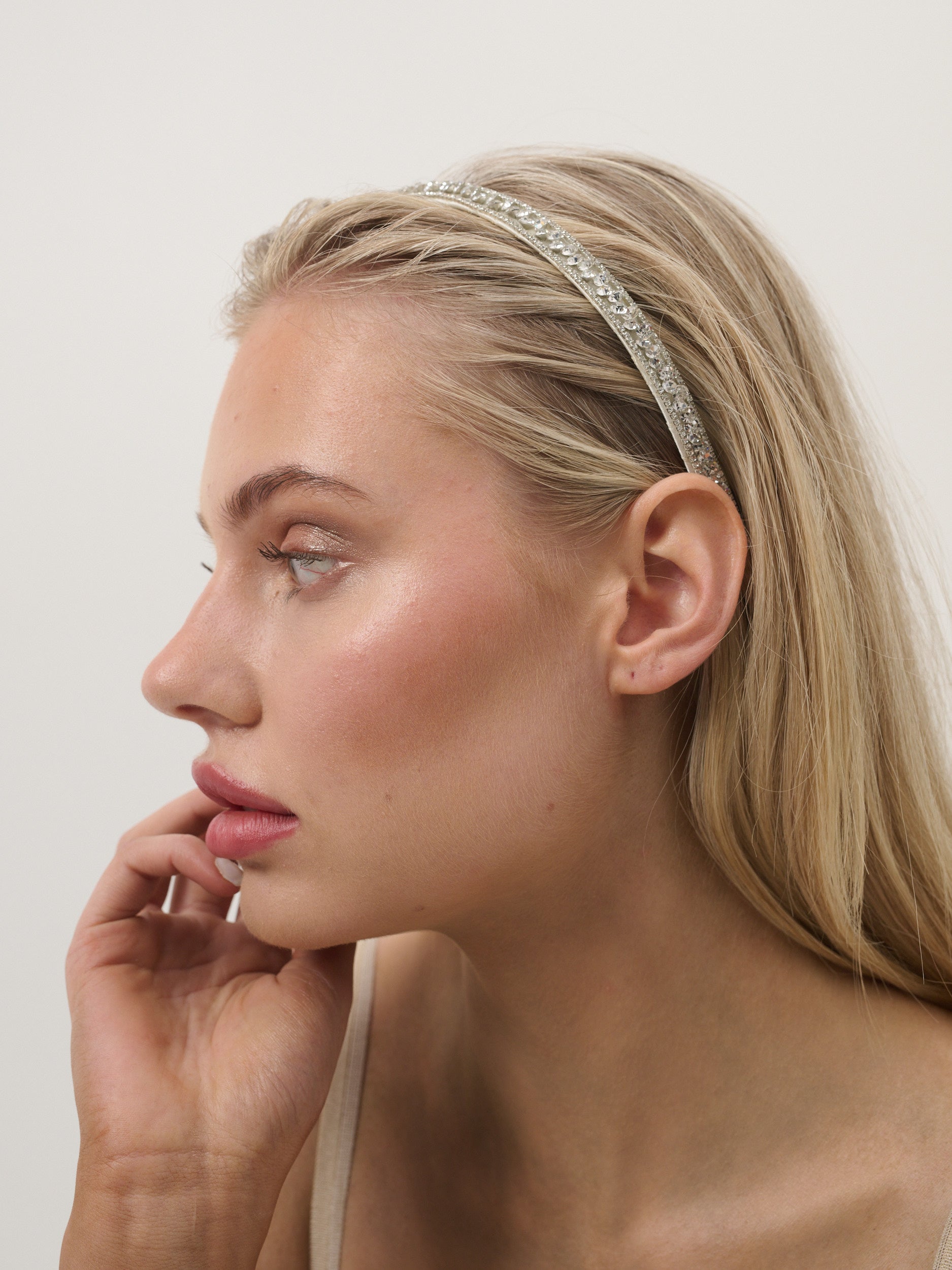 Dress to impress with the Olivia Silver Crystal Statement Headband, an exquisite accessory crafted with dainty crystal beads. Transform any look with that classic, timeless, and sophisticated touch. Recommended for layered styling (HB7080).