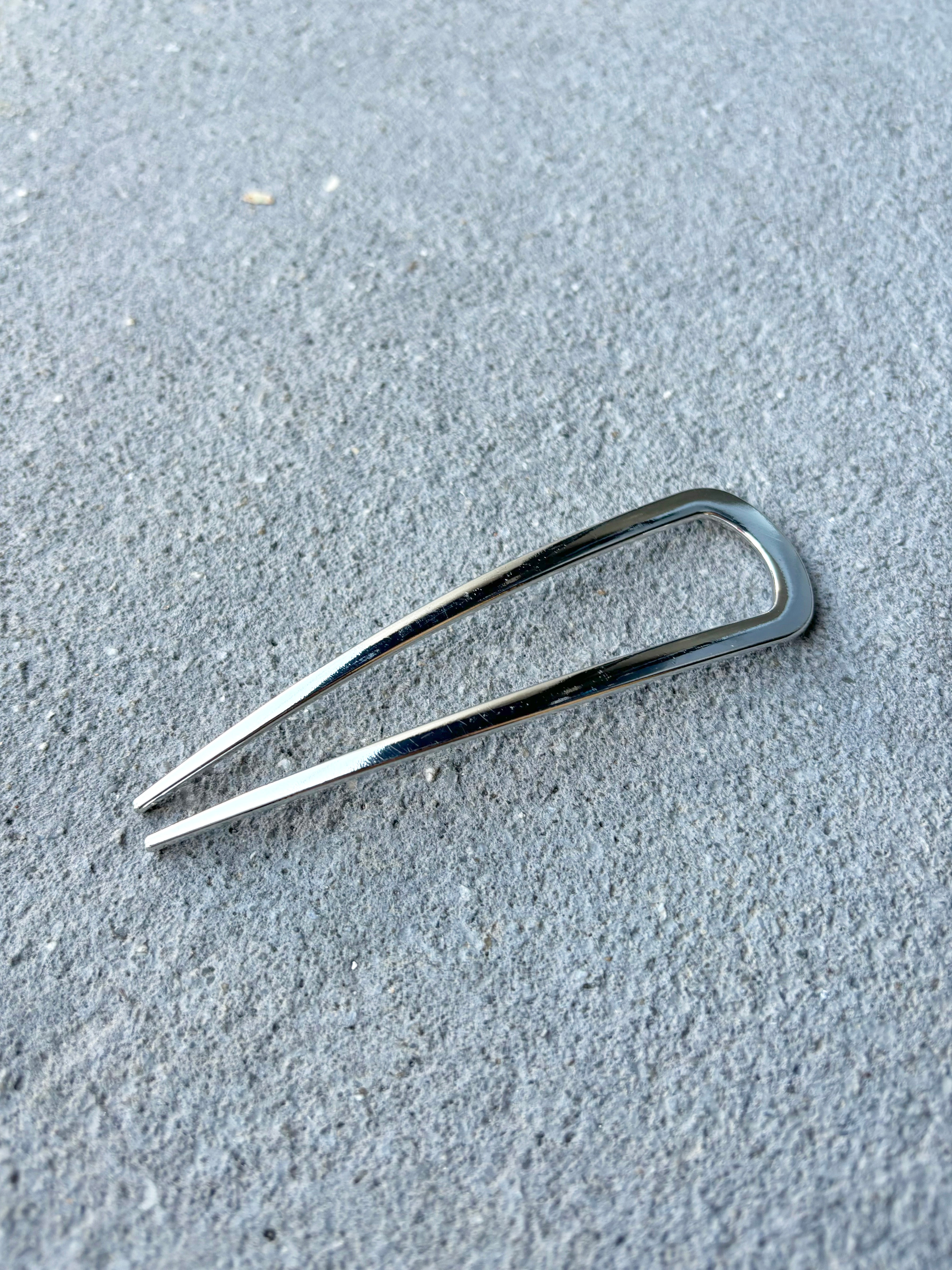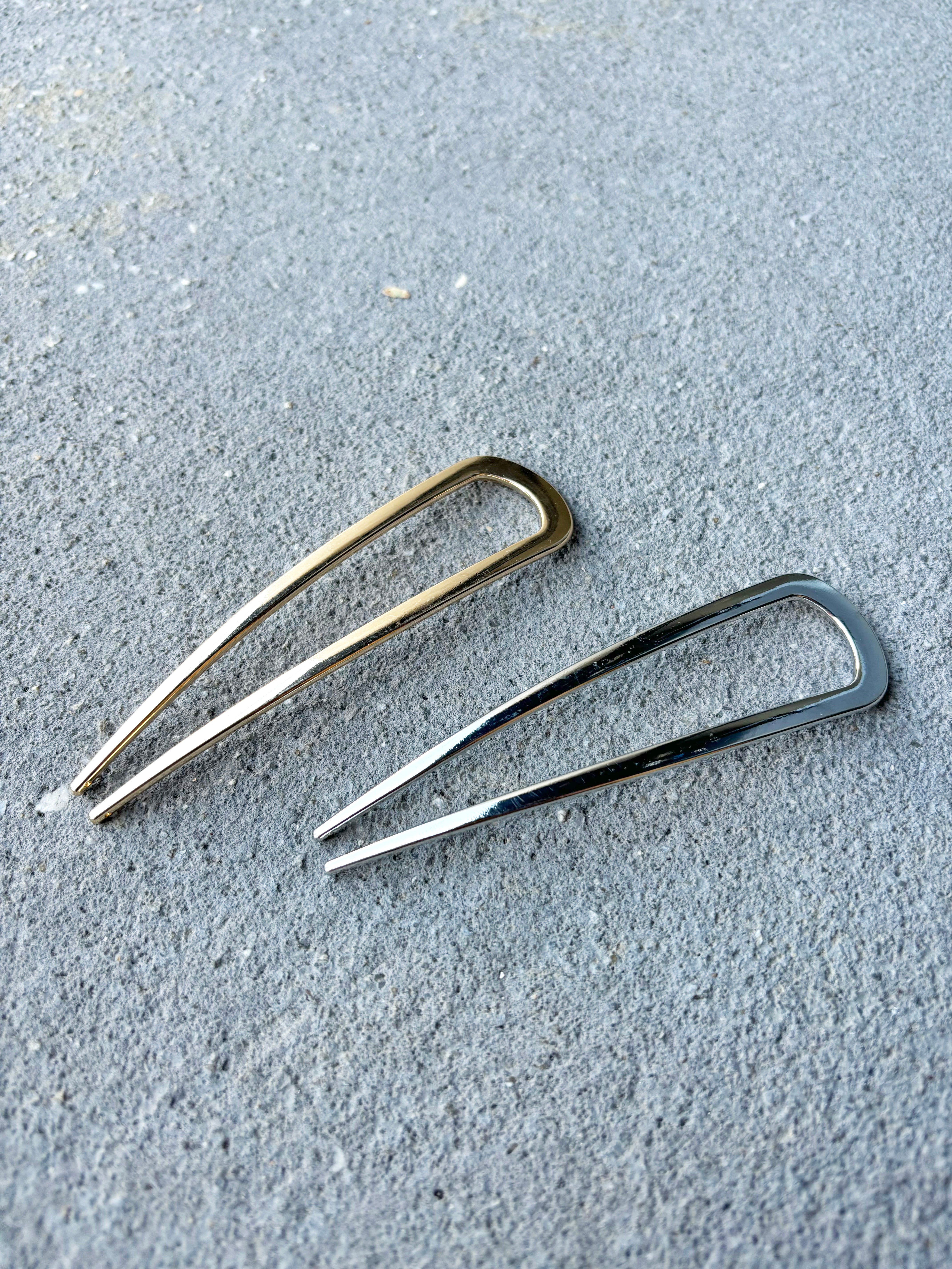 Add a touch of elegance to any hairstyle with this sleek, gold French hair pin. Its timeless design securely holds your hair while enhancing your look with a refined, chic finish.