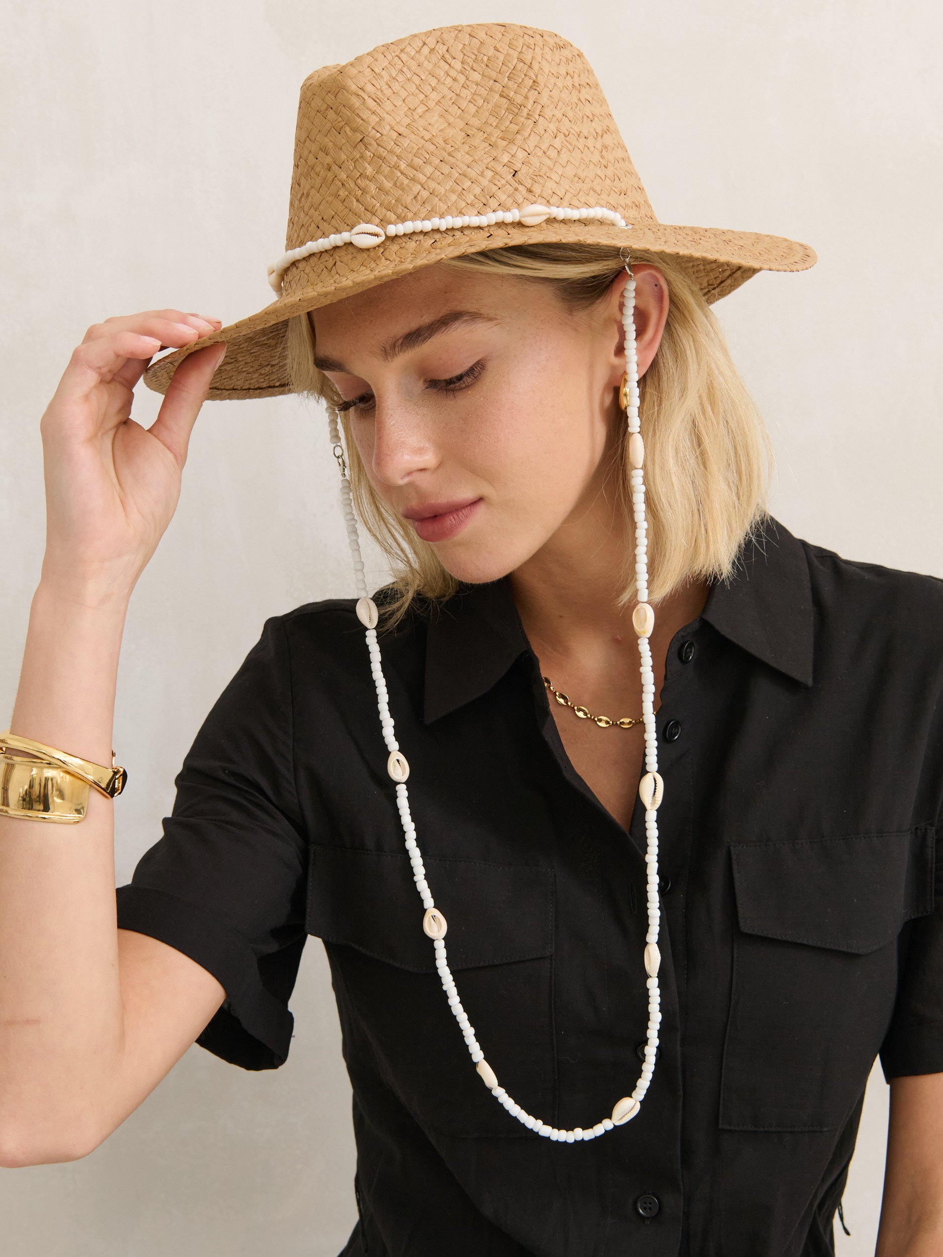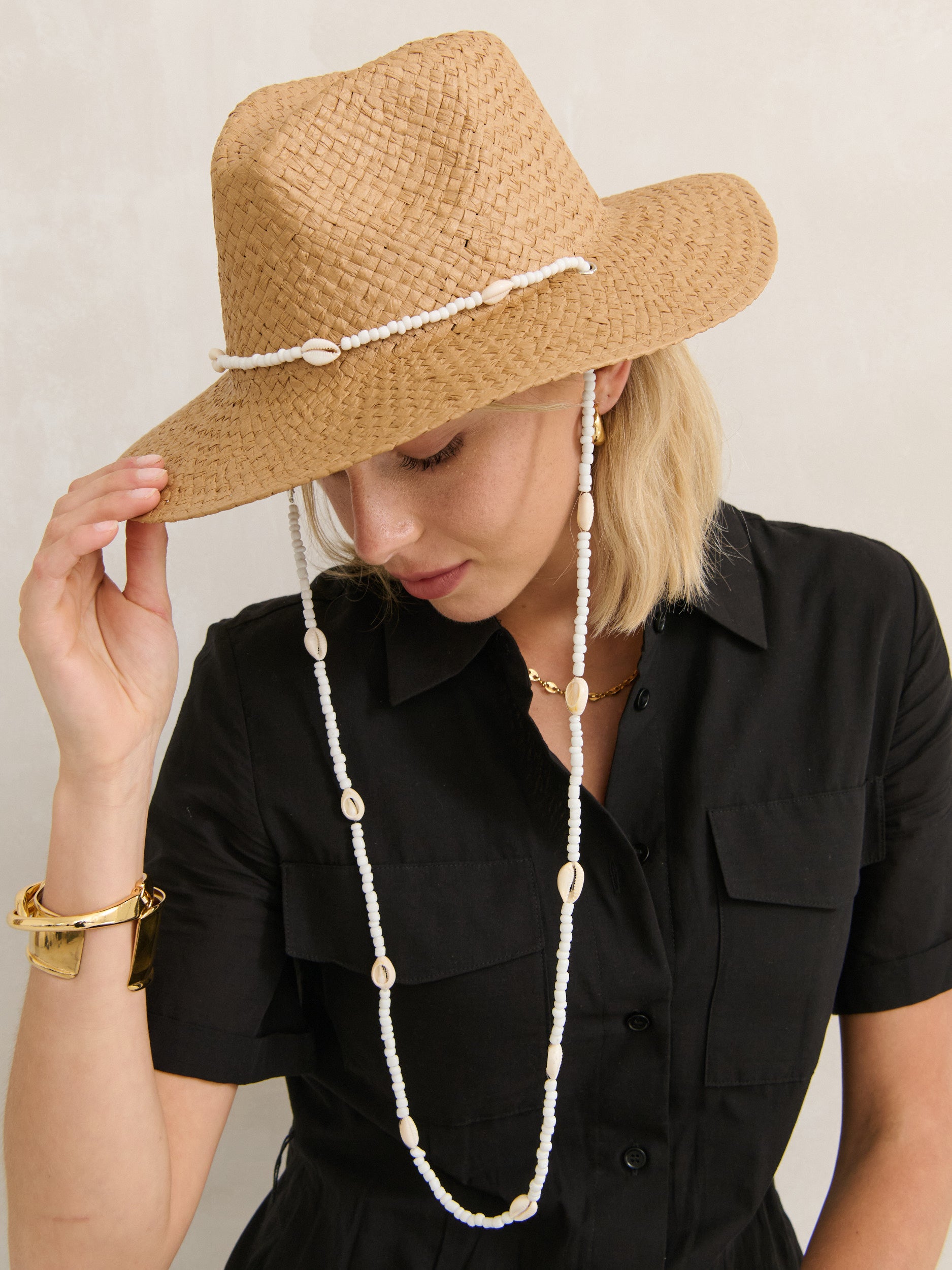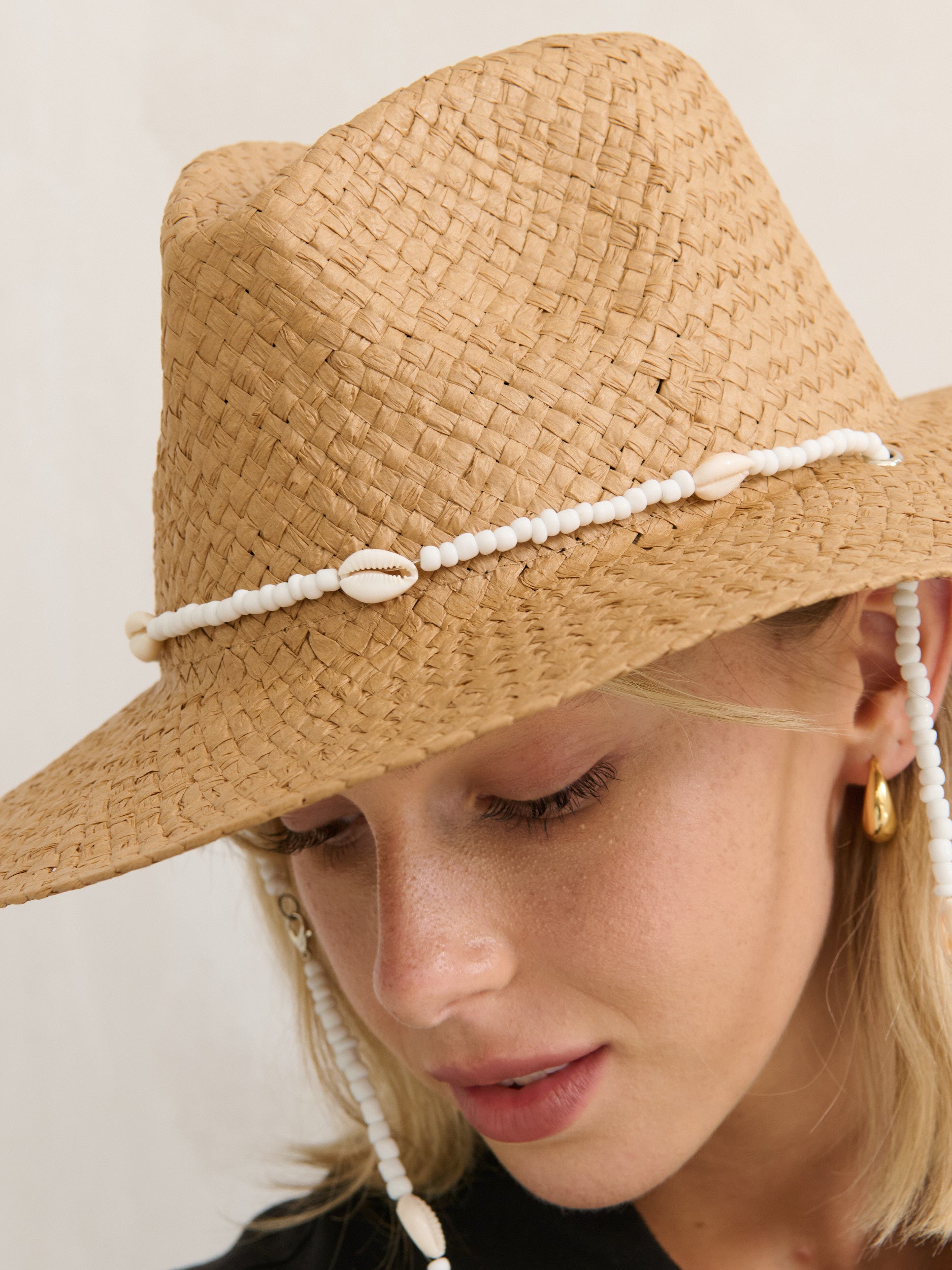 Embrace coastal charm with the Seashells Cowboy Summer Hat. Crafted from quality materials, this unique hat features an eye-catching seashell trim, beach-inspired touch to its classic cowboy silhouette. Perfect for sunny days, it combines style and functionality, making it an ideal choice for laid-back, summer outings.