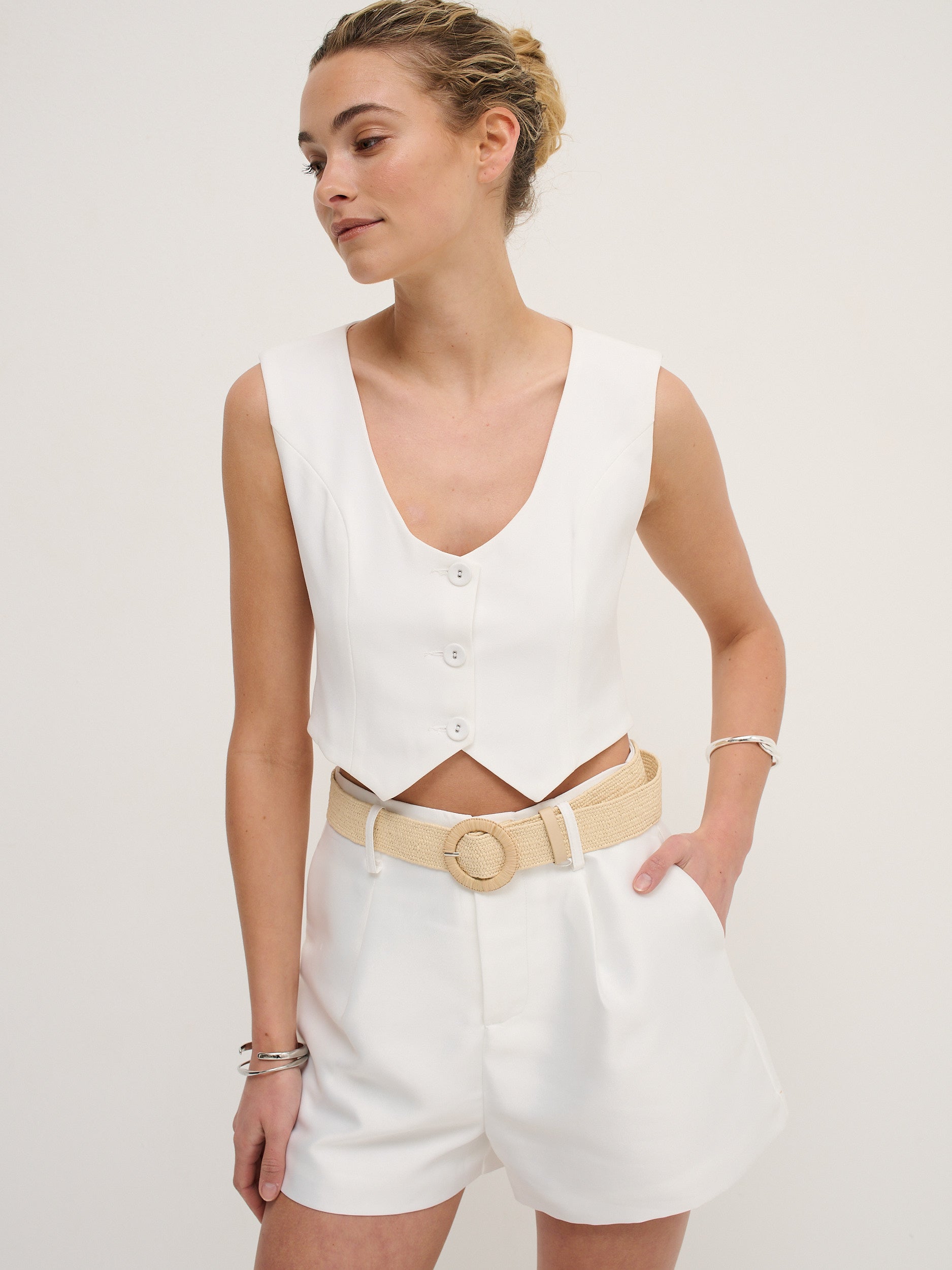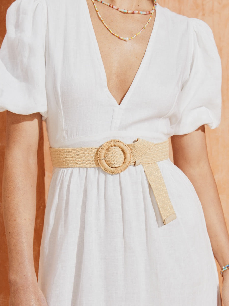 Shelley Round Buckle Straw Belt