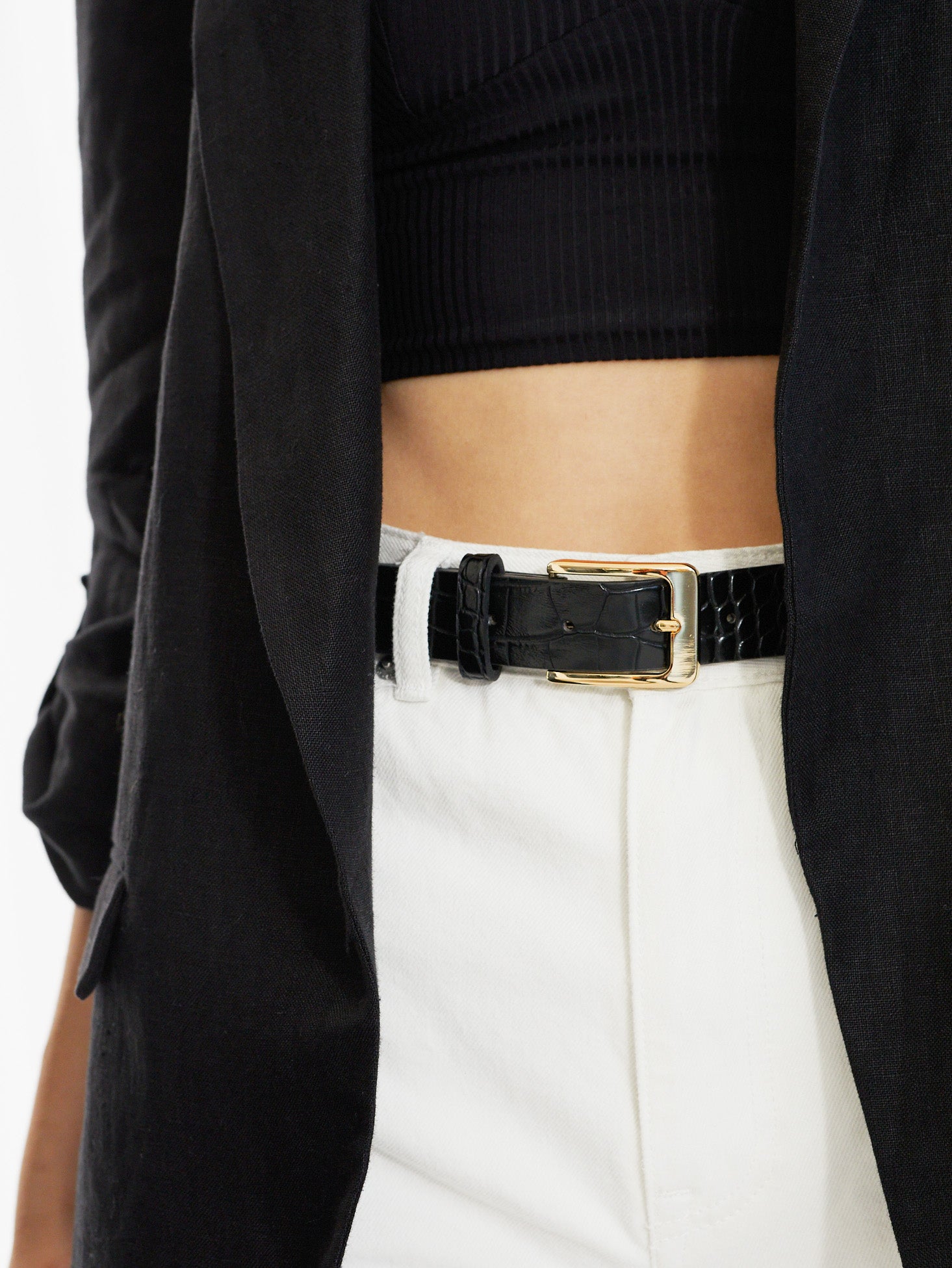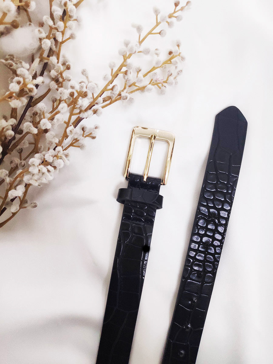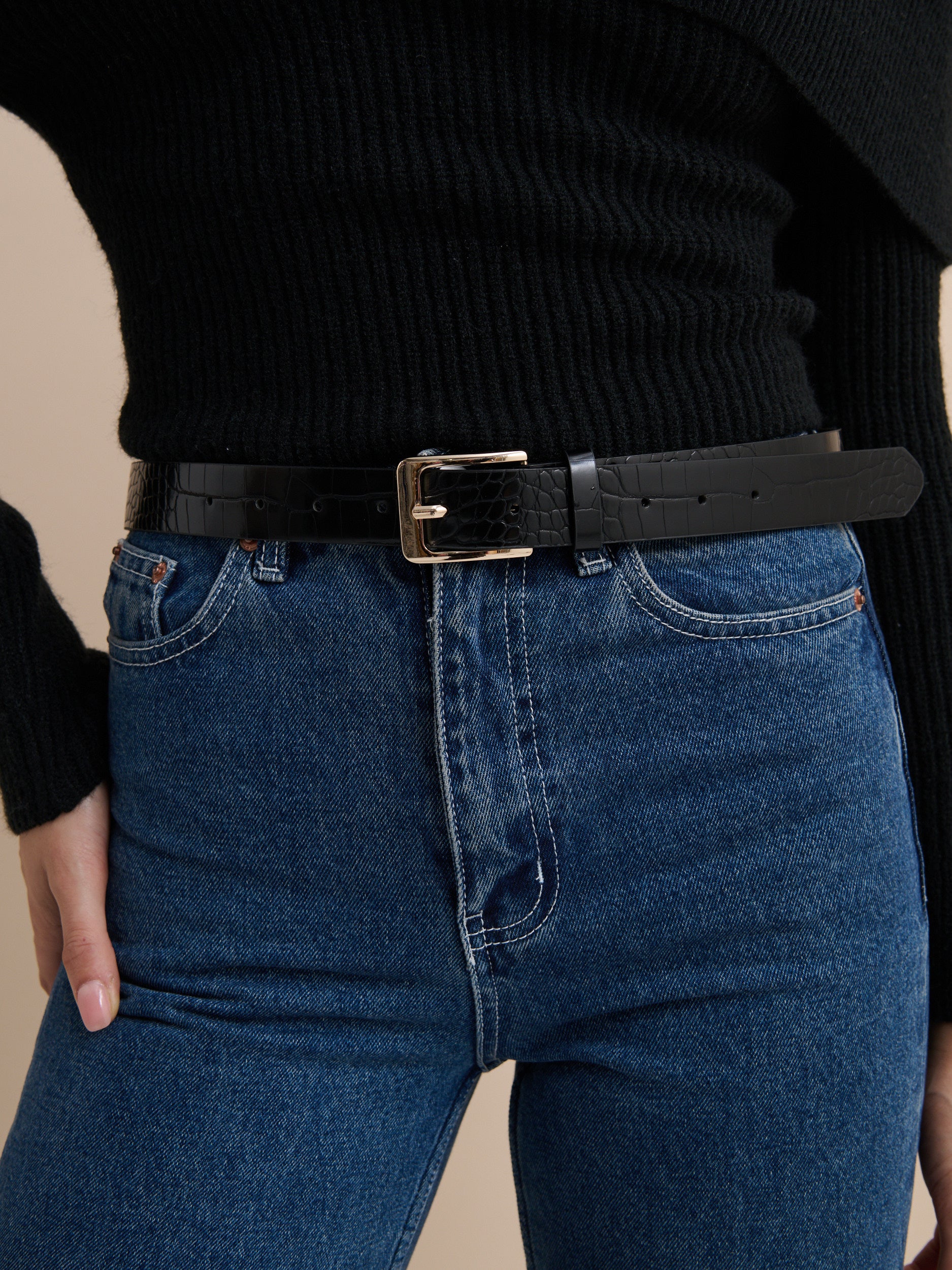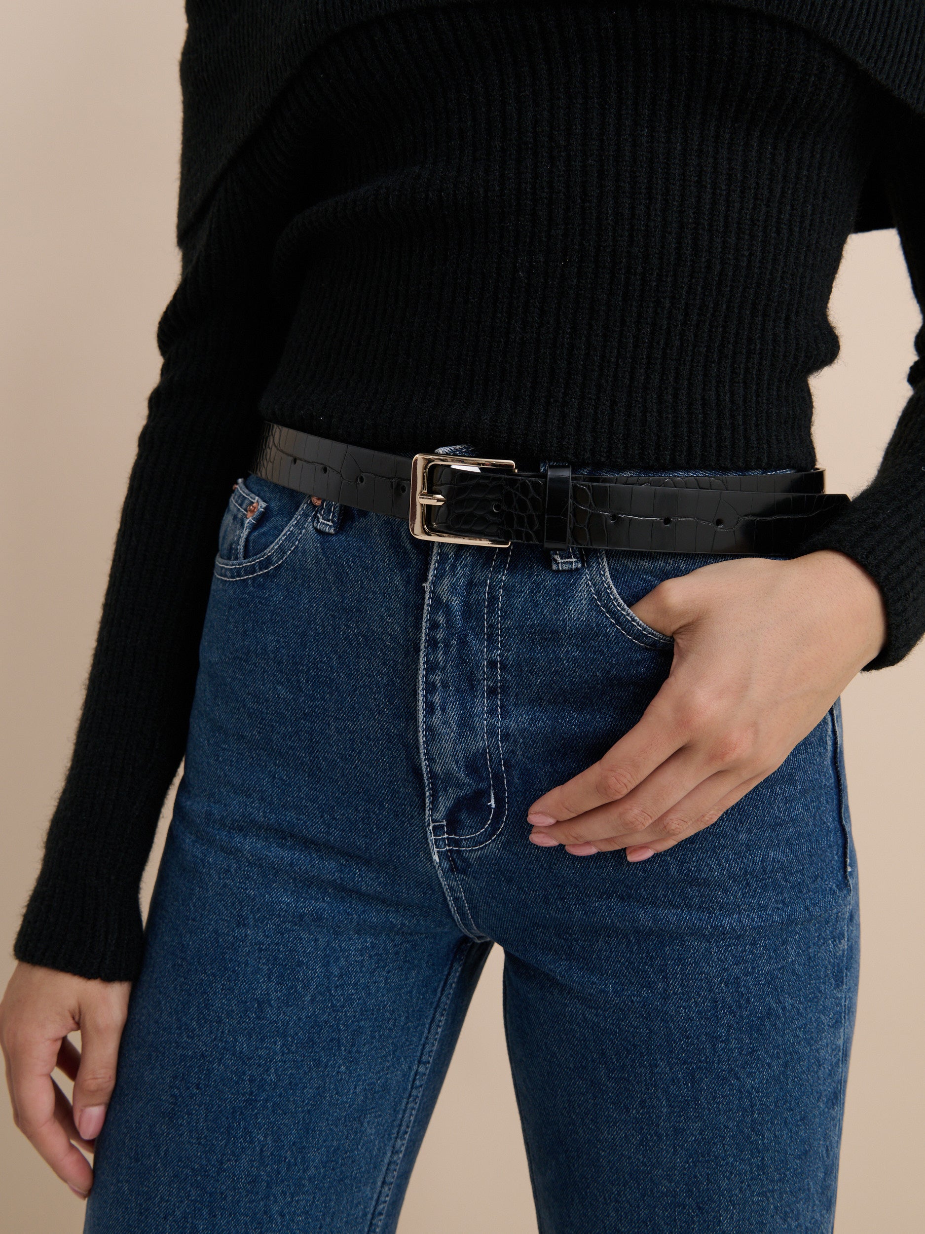 Enhance your style with the Sinclair Basic Croc Belt. Crafted with luxurious croc leather, this belt adds a touch of sophistication to any outfit. Elevate your look and make a statement with this exclusive and timeless accessory.
