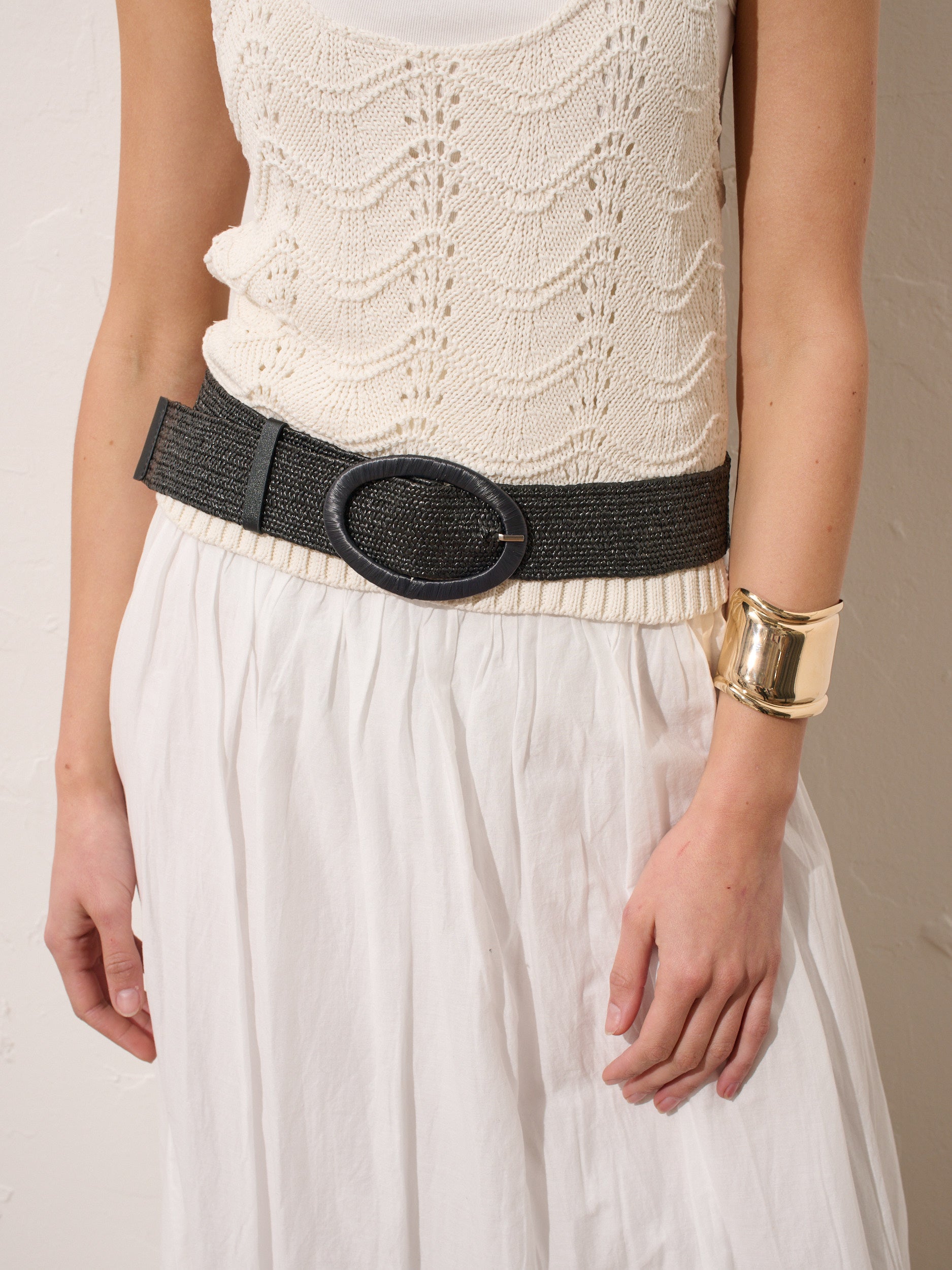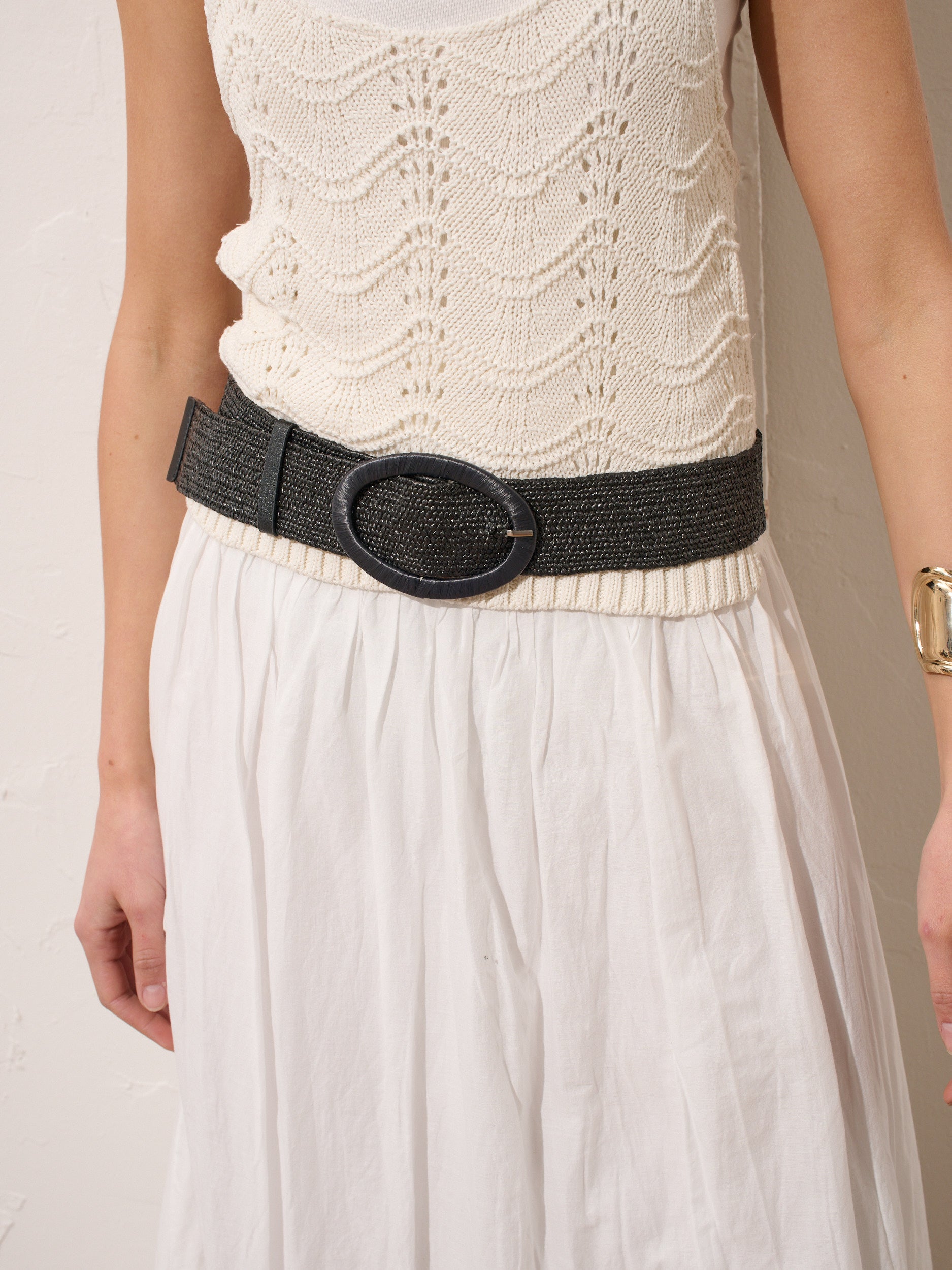 Woven Oval Buckle Straw Belt in Black