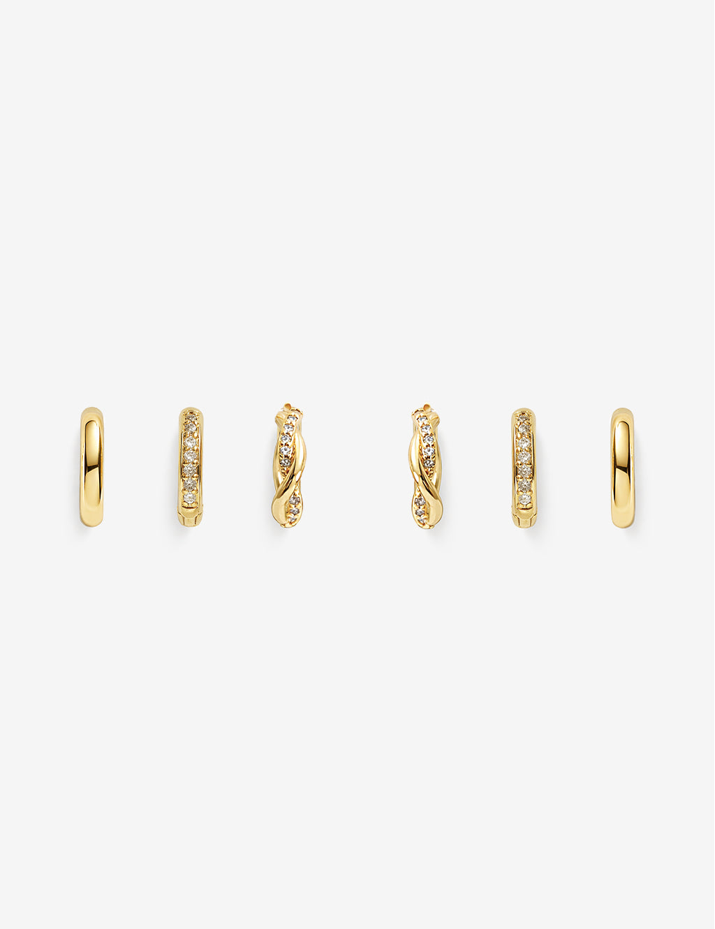 Discover effortless styling with our curated 18k plated gold and sterling silver earring set packs. Designed for layering, mixing, and everyday elegance, each set features versatile silhouettes crafted with 18k Gold Plating over Sterling Silver for lasting shine and durability.