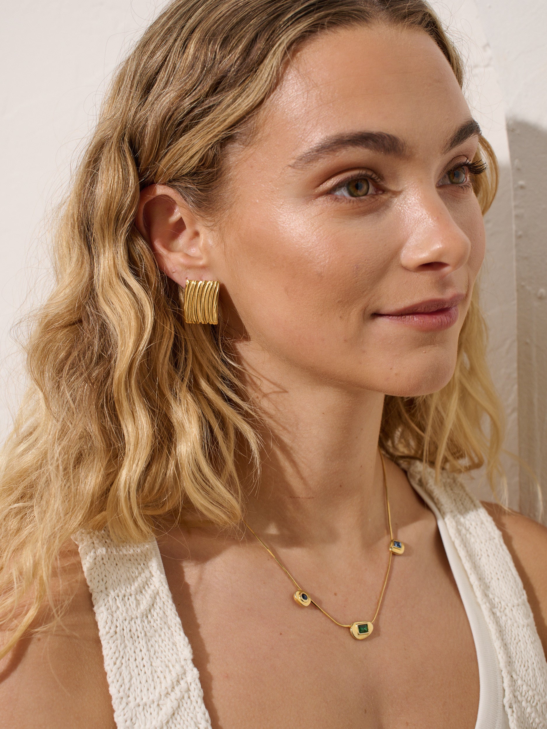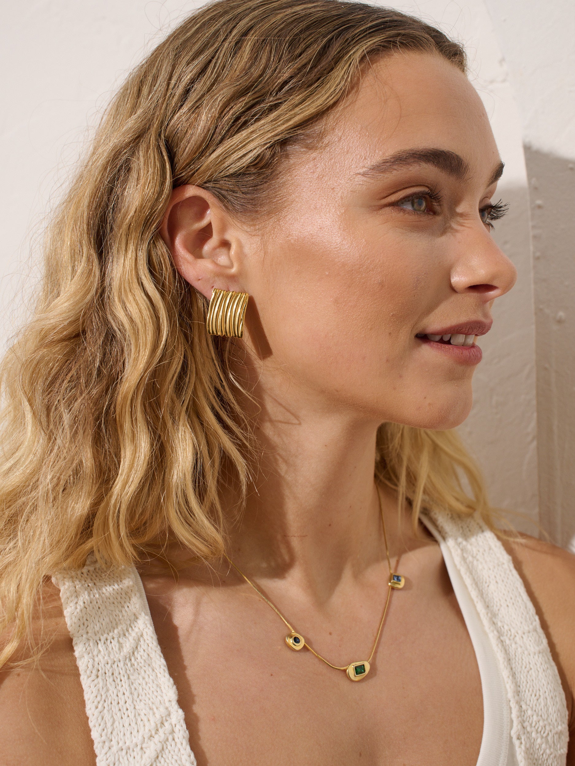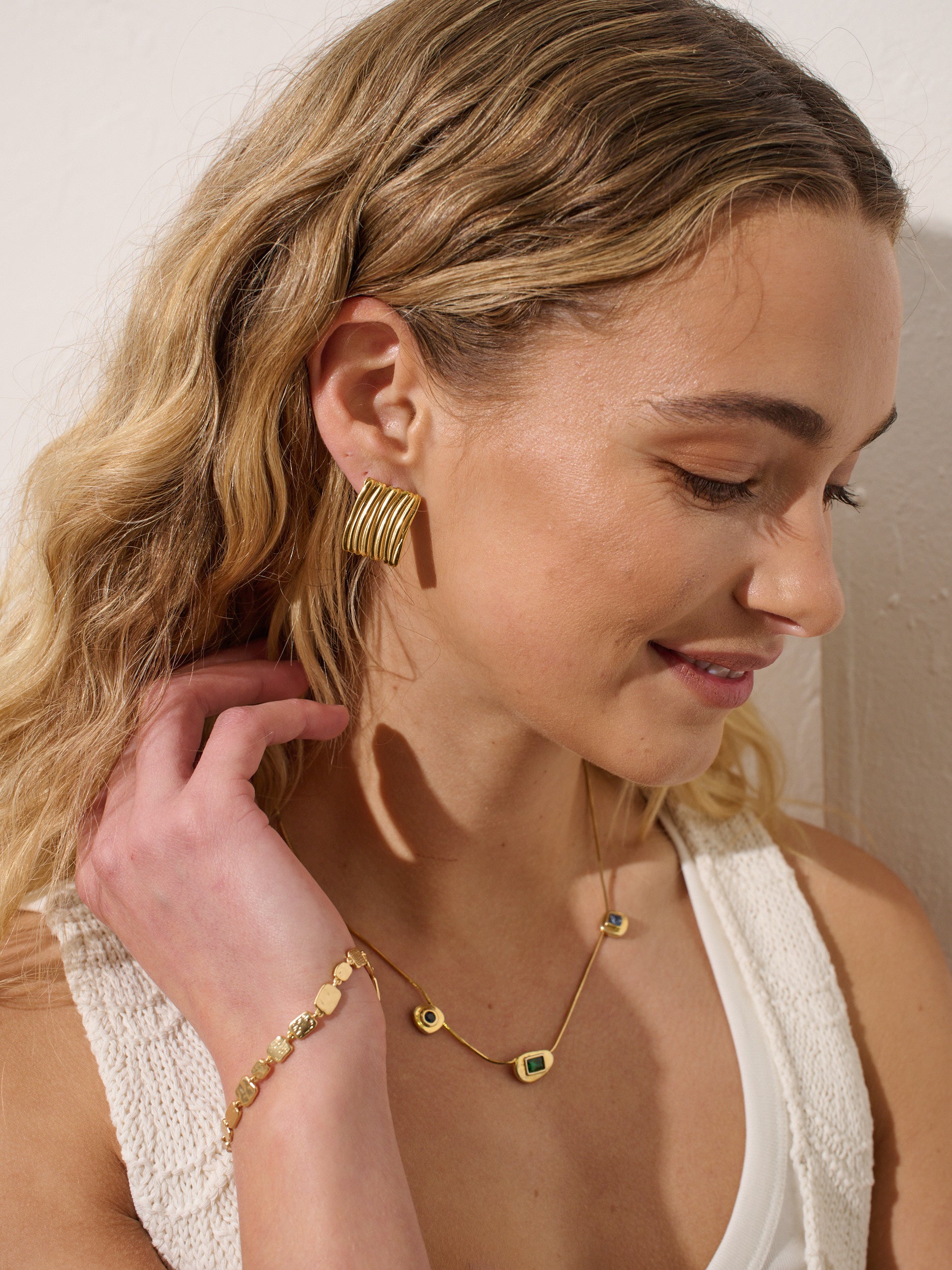 Add a chic touch to any outfit with our Ally Square Statement Earrings. With their lightweight feel, they are comfortable to wear all day long. A must-have accessory for any fashion lover.