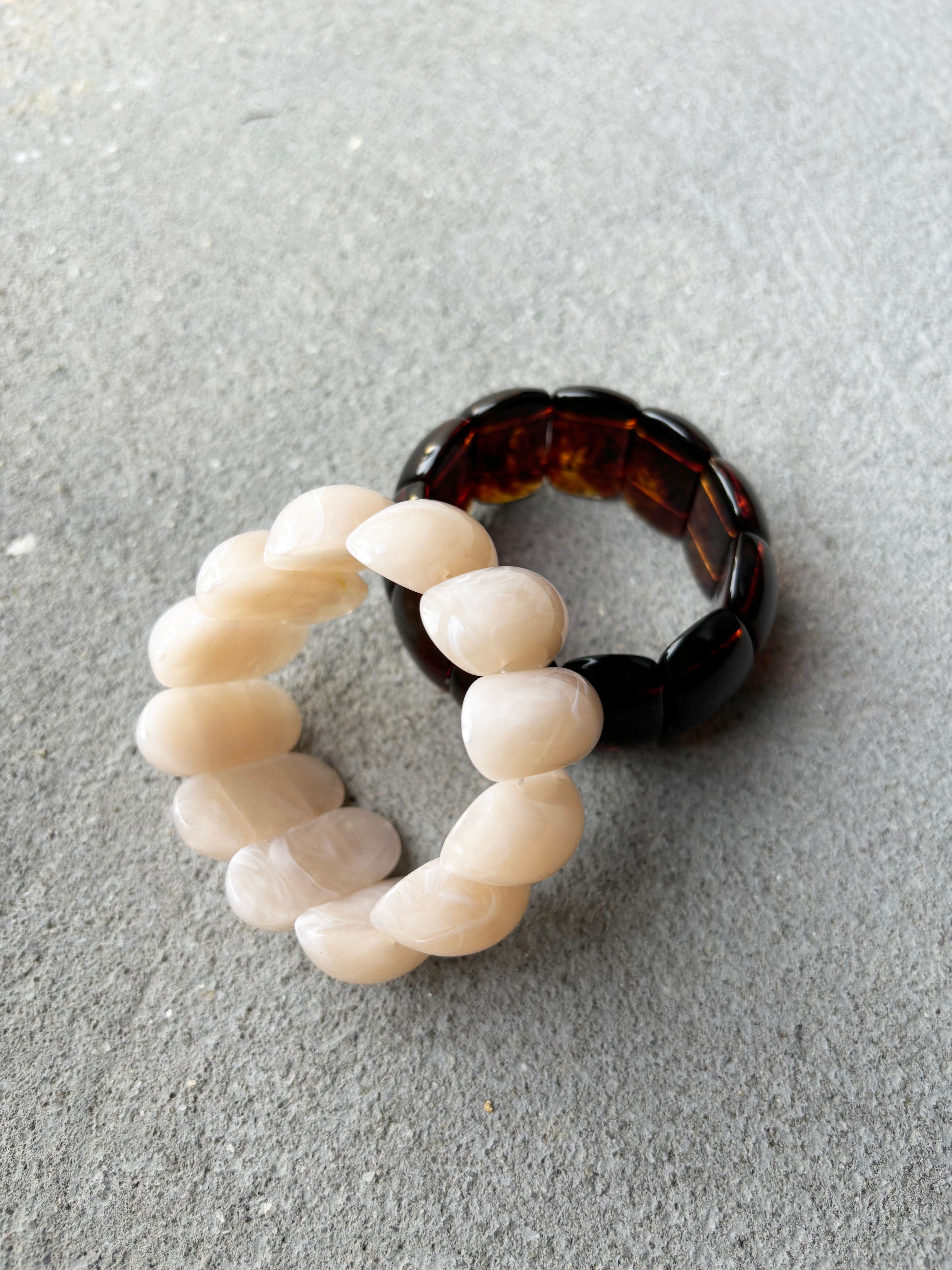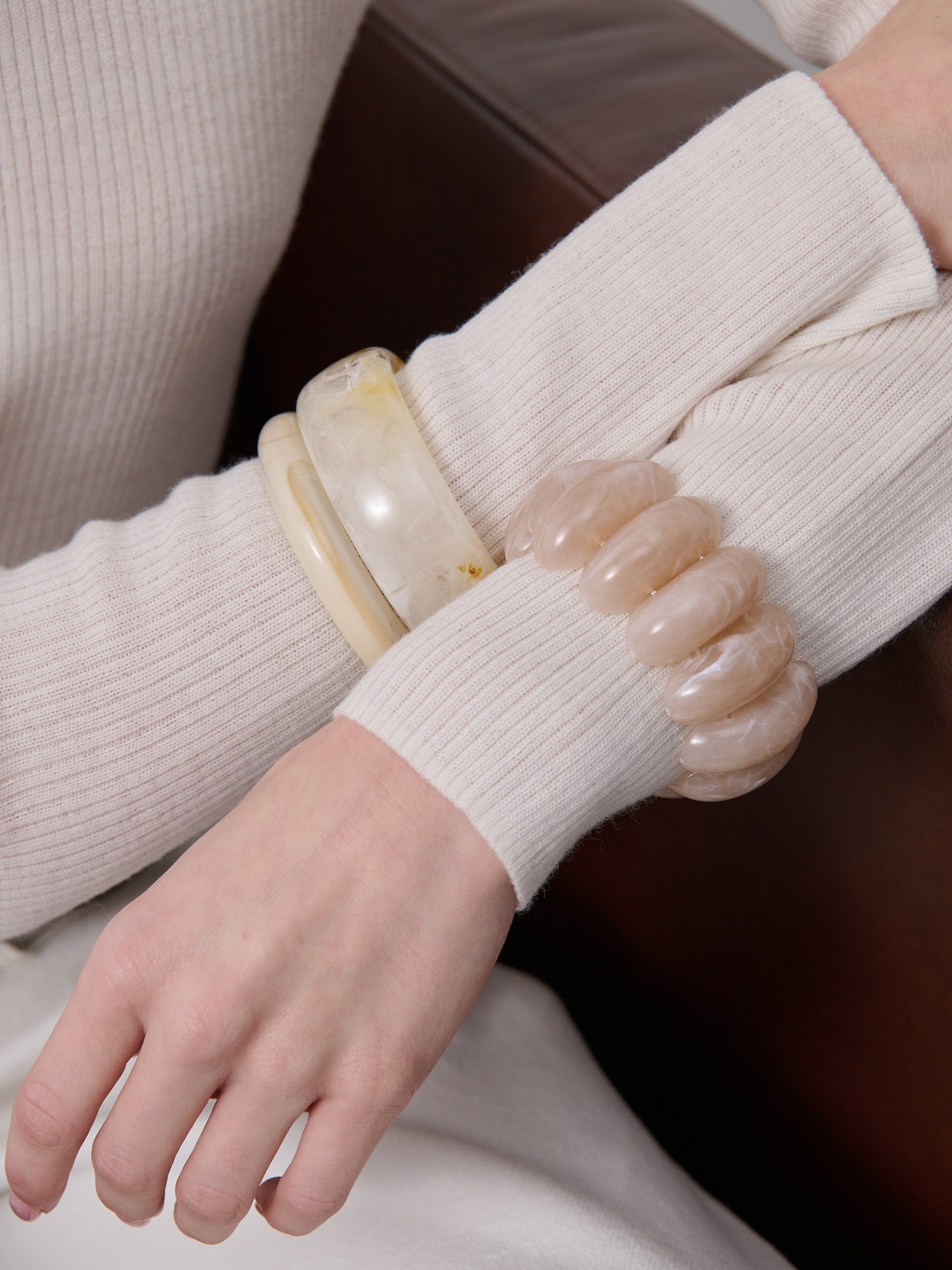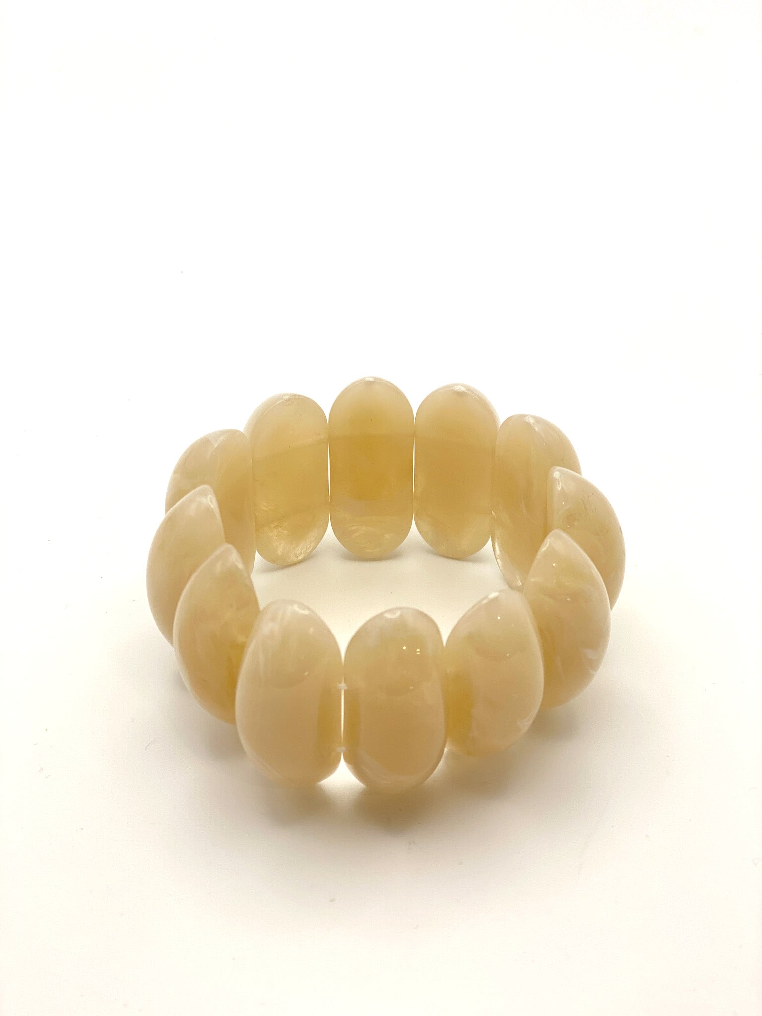 Add a chic touch to any outfit with our Apricot Beaded Resin Bangle. With their lightweight feel, they are comfortable to wear all day long. A must-have accessory for any fashion lover.