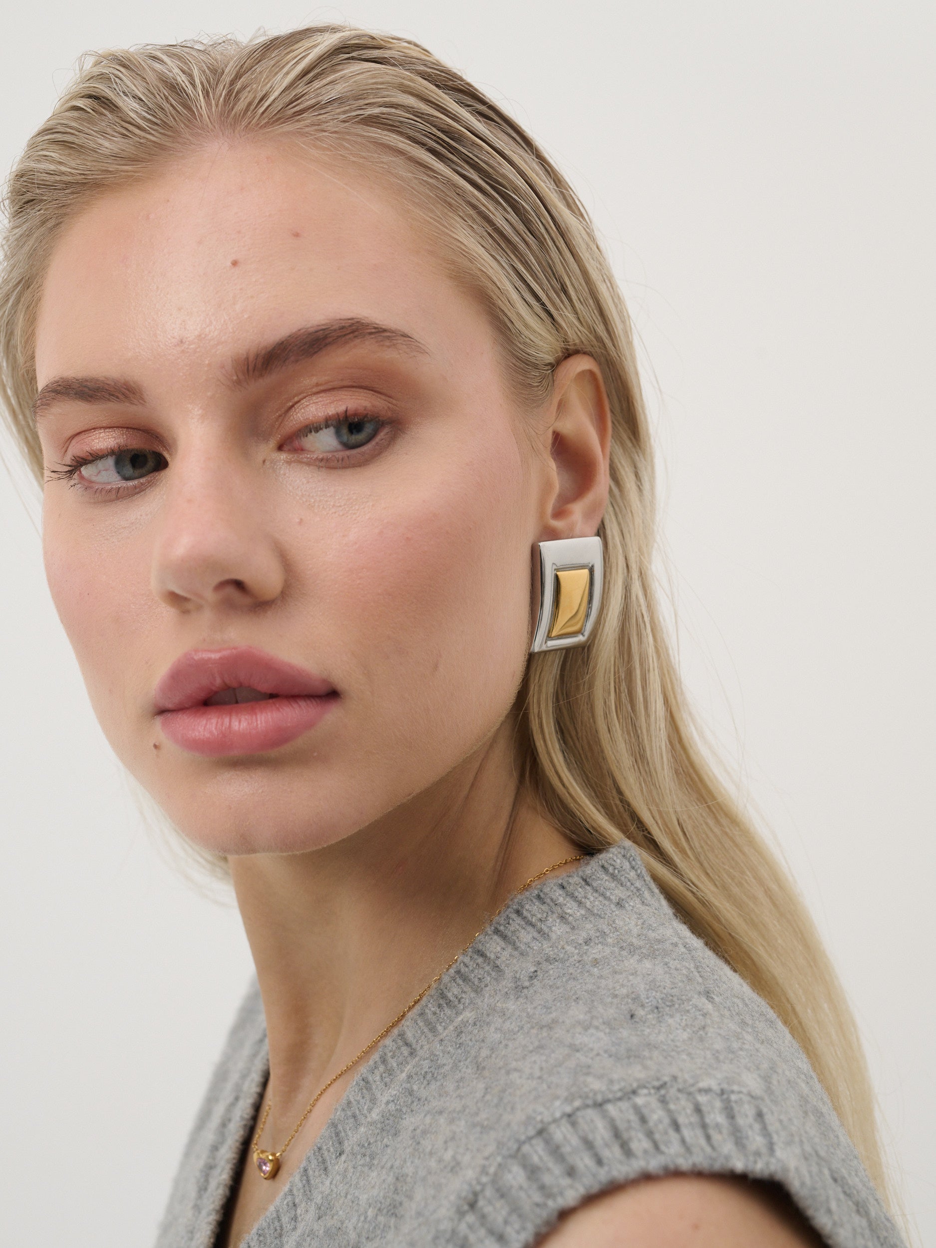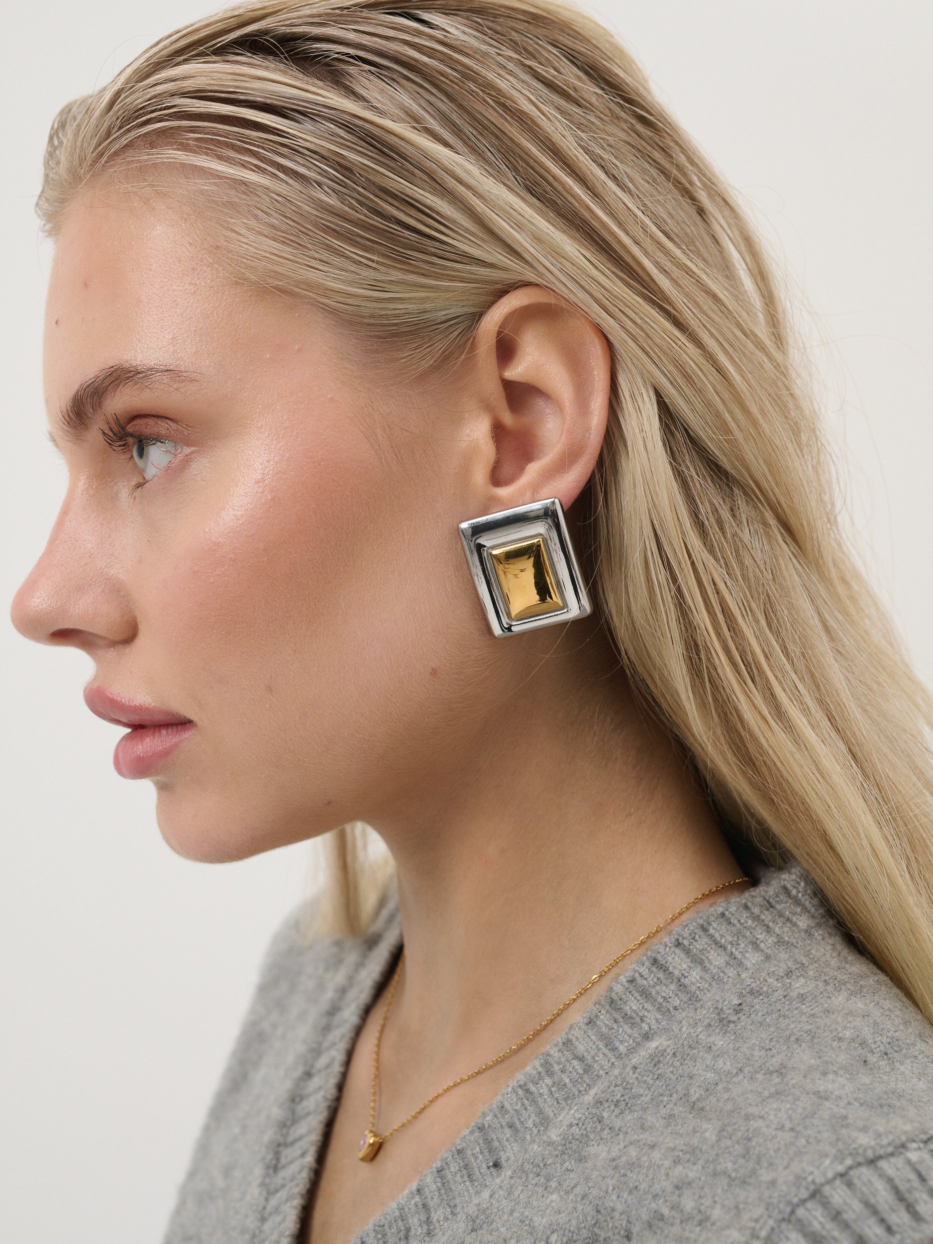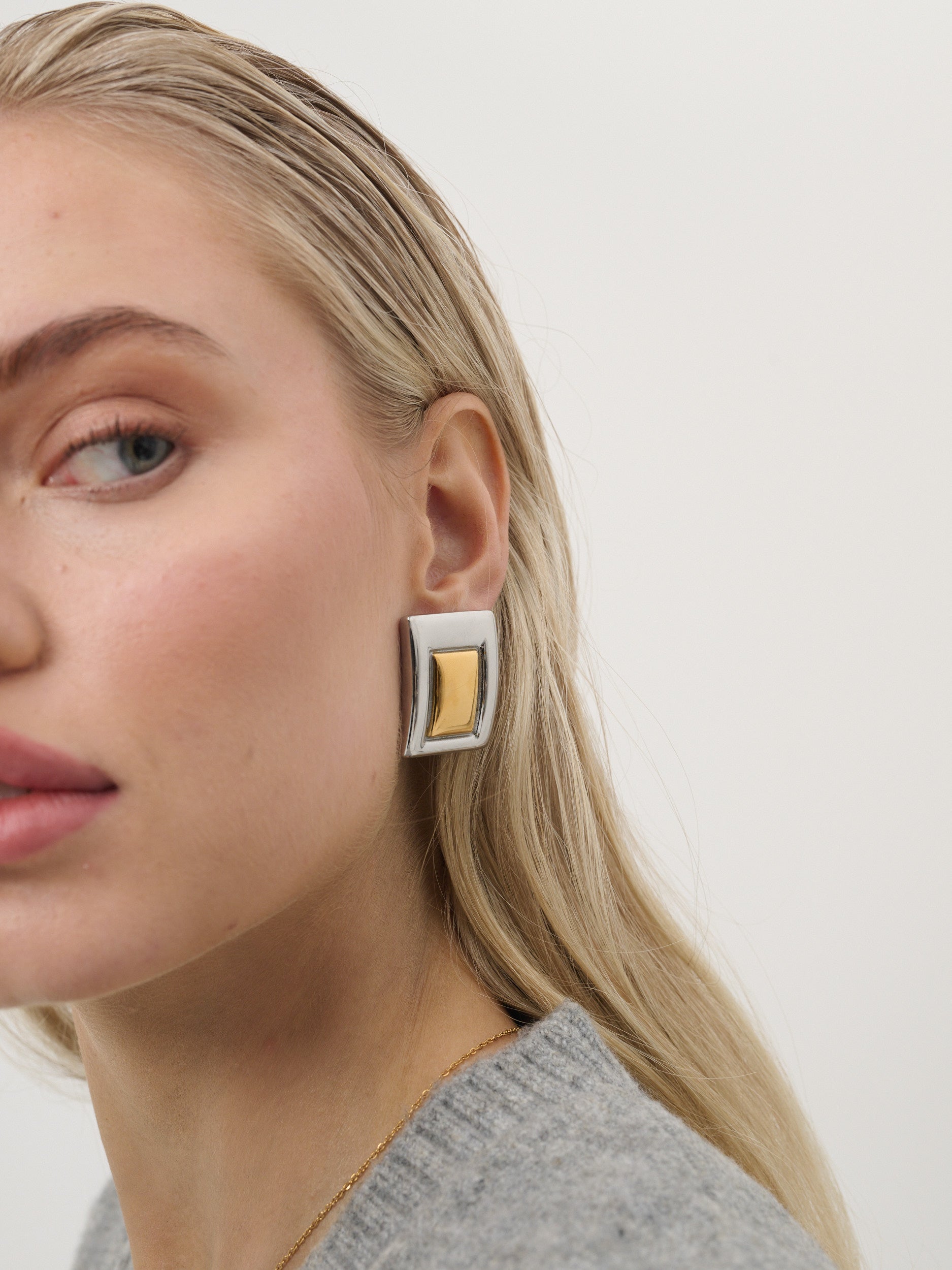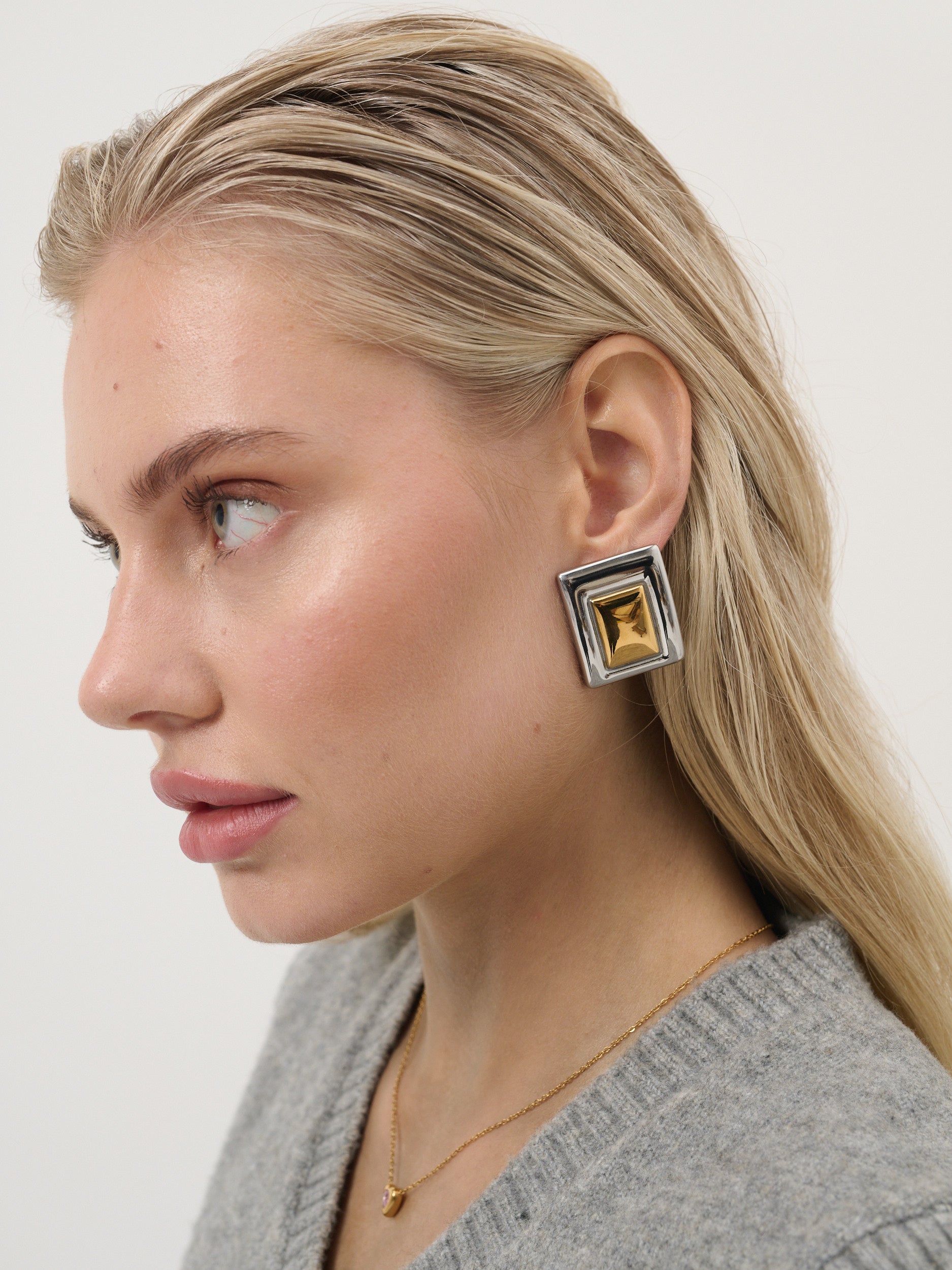 Add a chic touch to any outfit with our Square Duo Tone Statement EarringsĀ . With their lightweight feel, they are comfortable to wear all day long. A must-have accessory for any fashion lover.