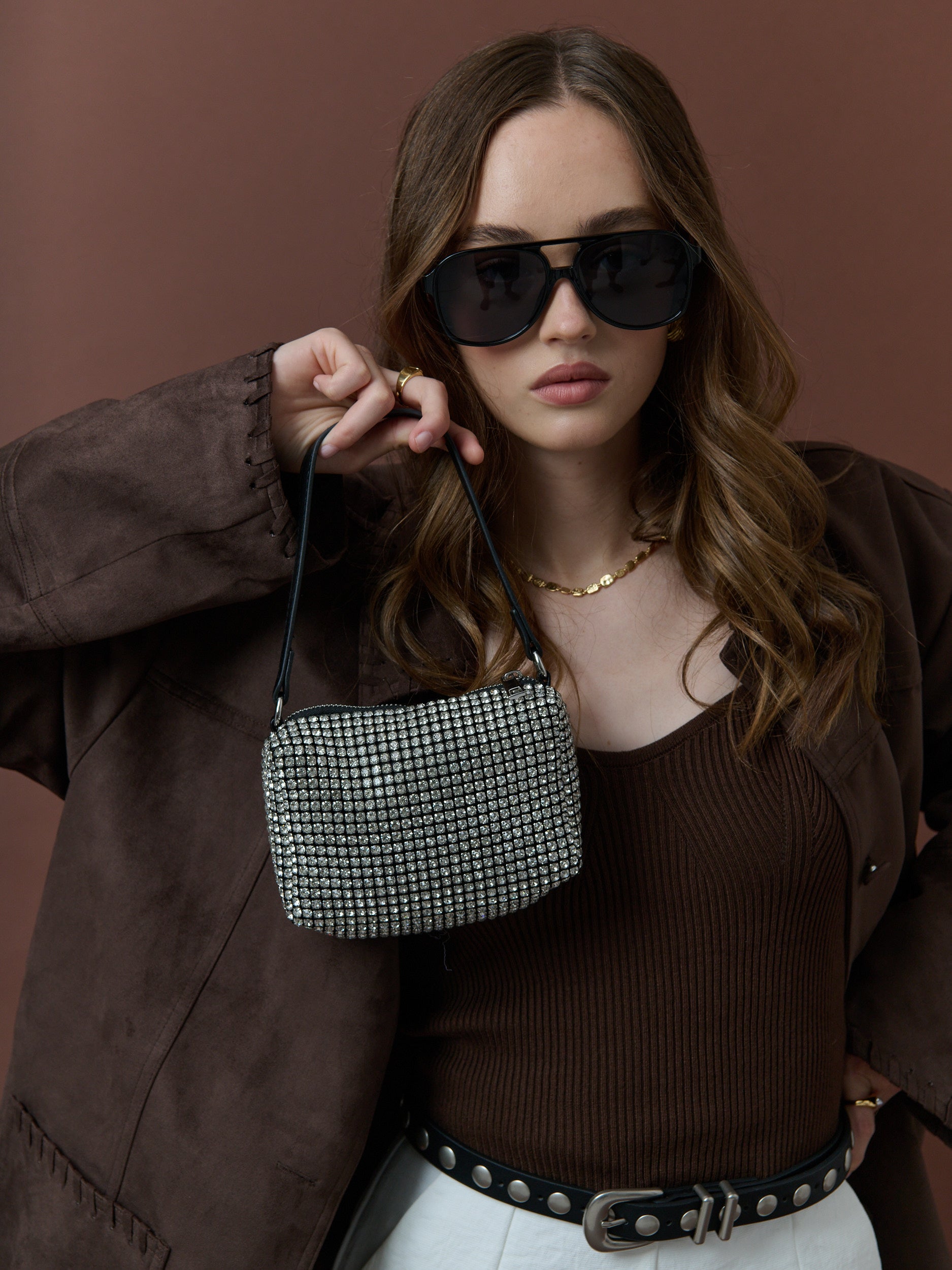 Features zipped closure, fully lined luxe black lining with 1 internal pocket slot.
