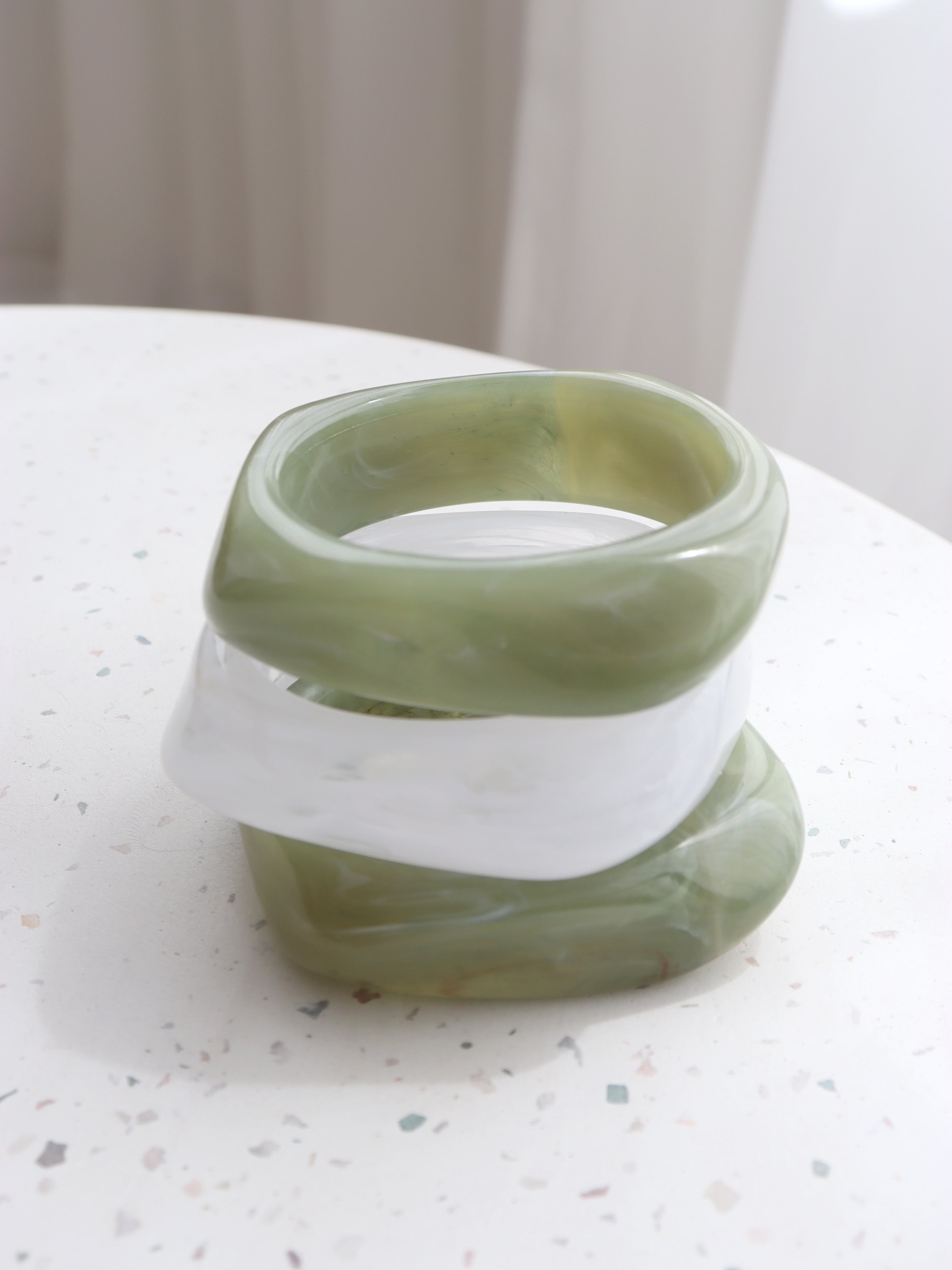 Add a chic touch to any outfit with our Angular Cuff Bangle in Sage. With their lightweight feel, they are comfortable to wear all day long. A must-have accessory for any fashion lover.