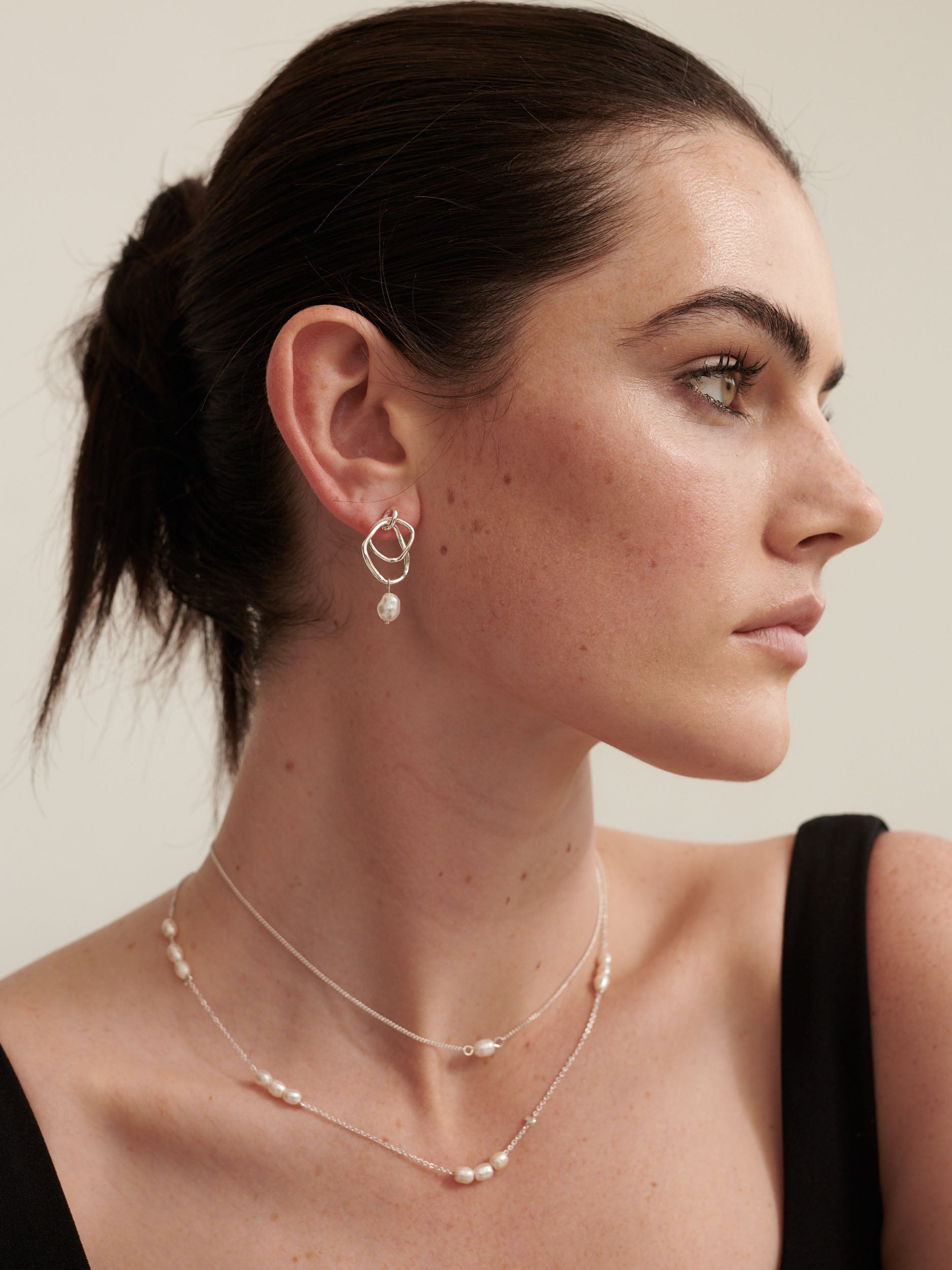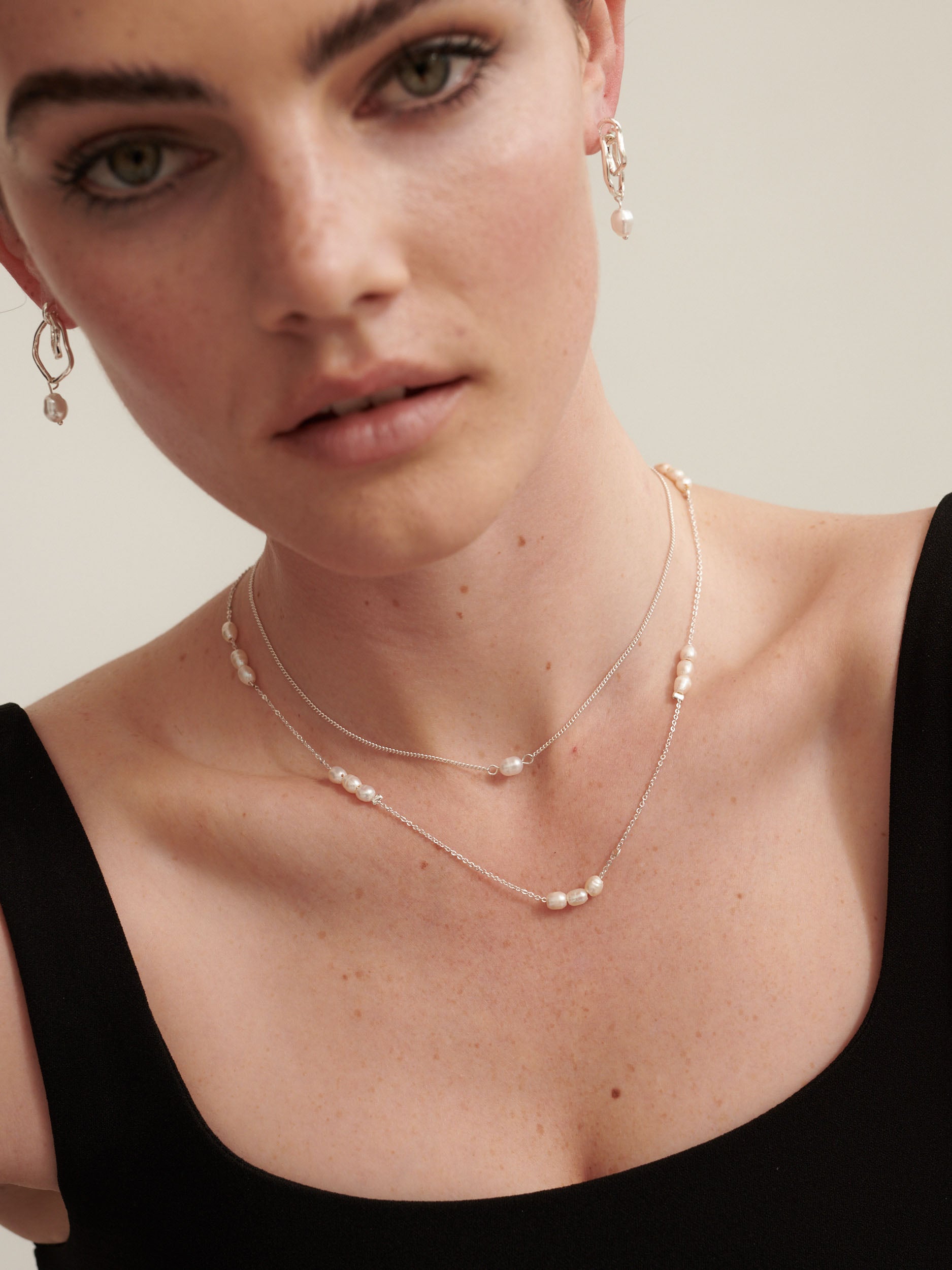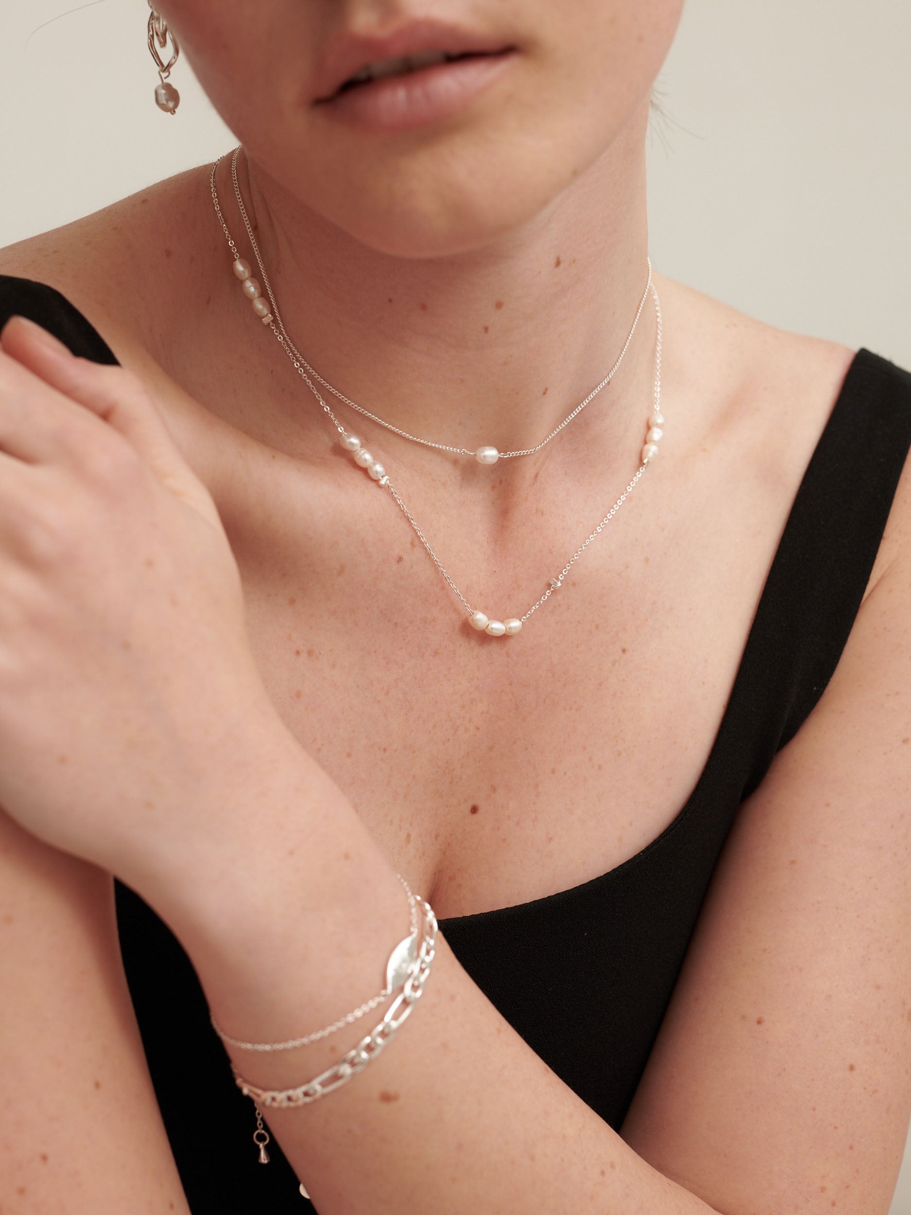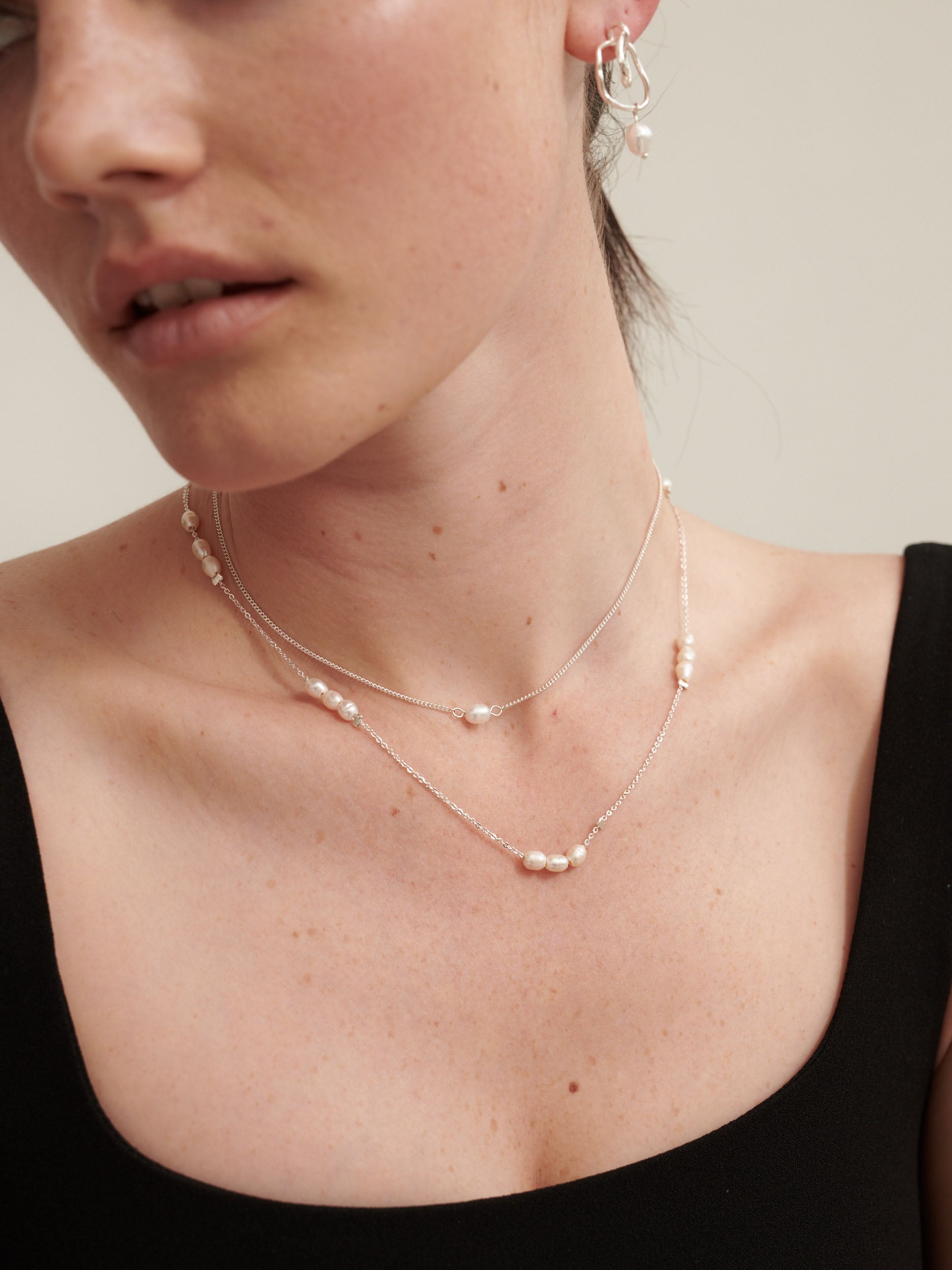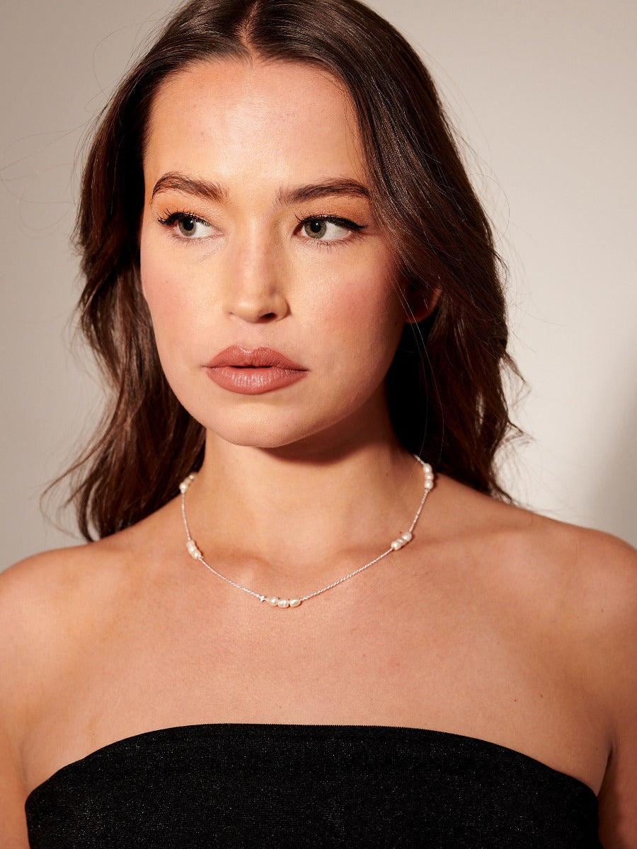 Trio Pearl Silver Plated Necklace