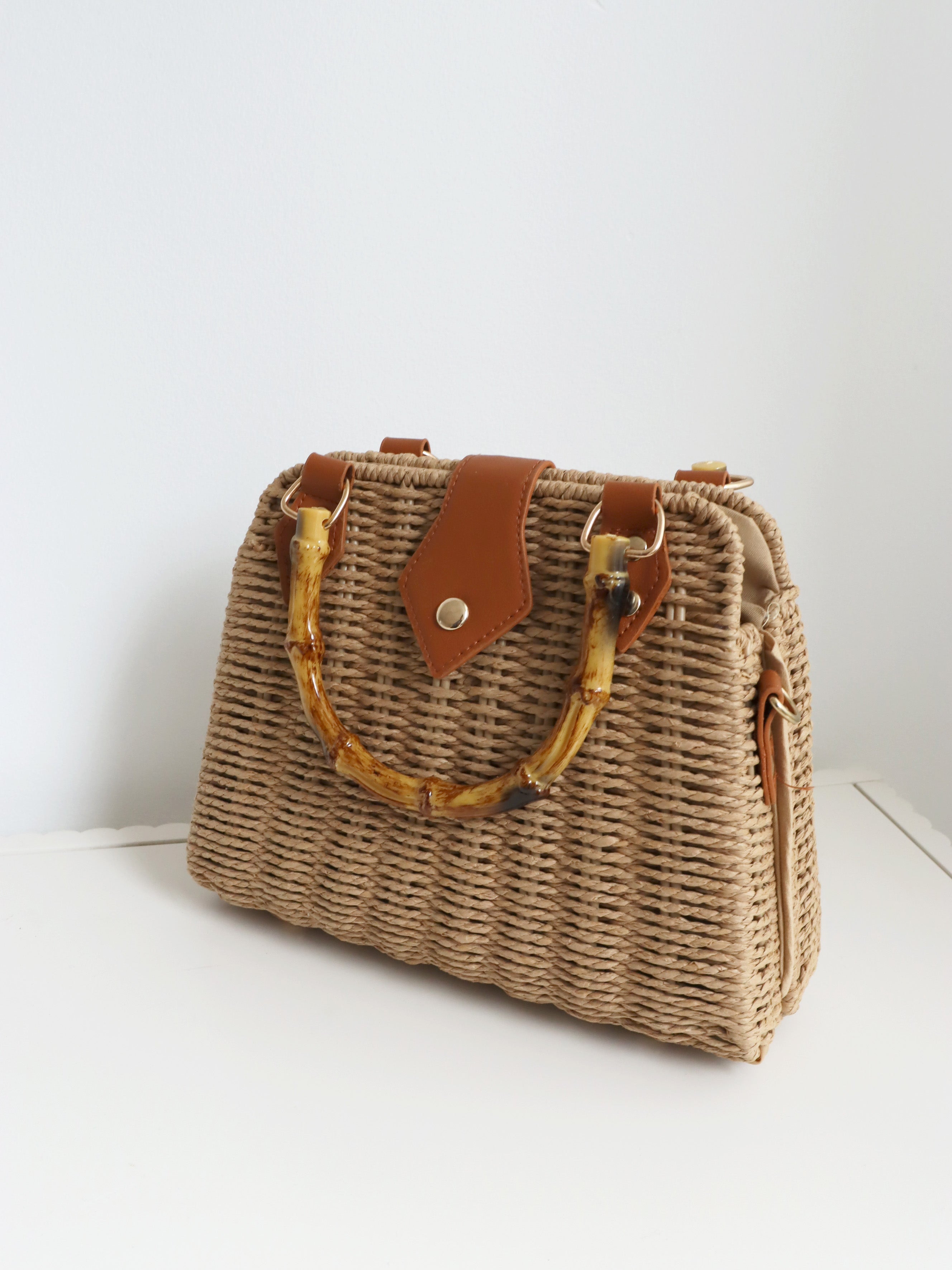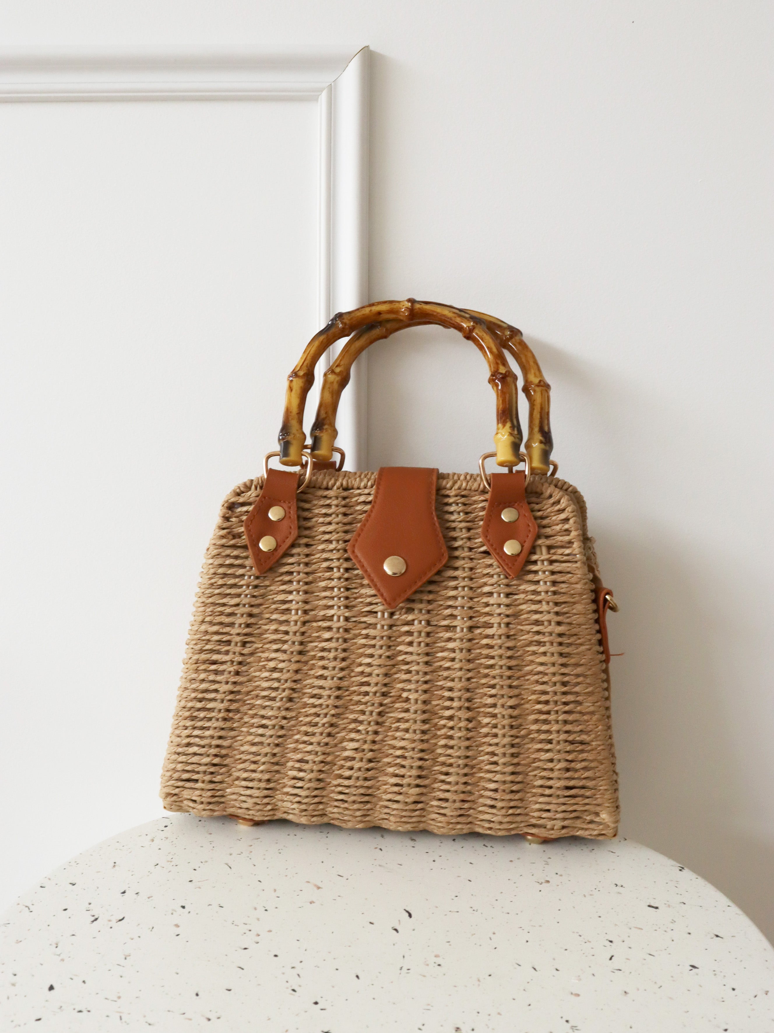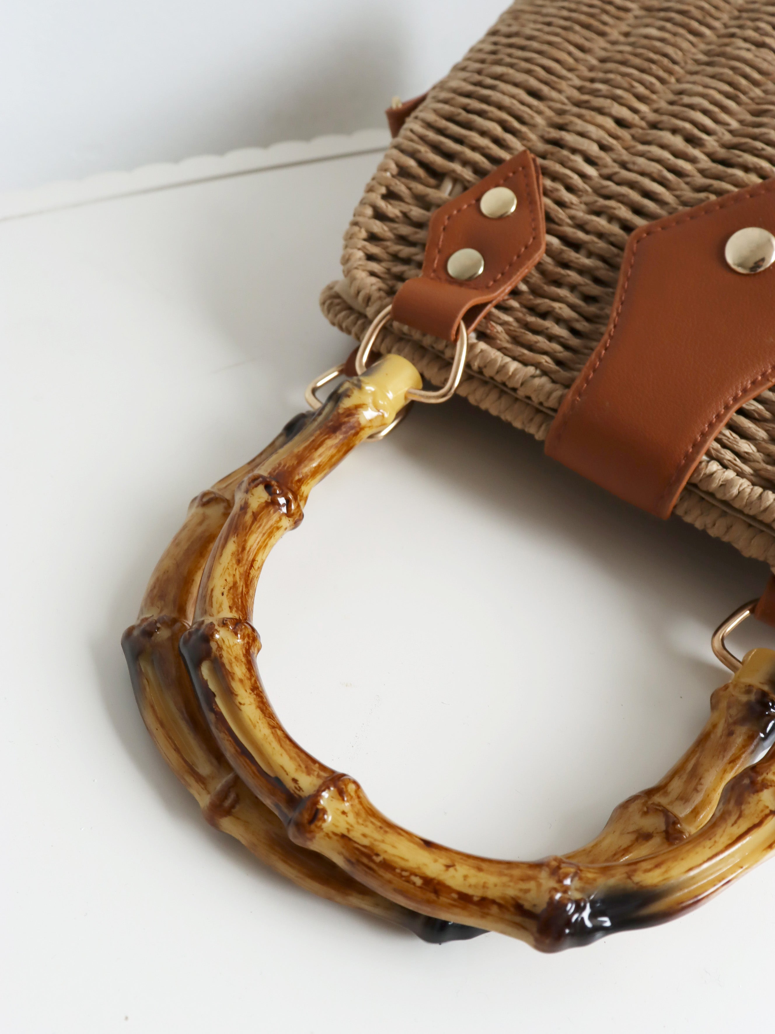 Sun-soaked style meets everyday ease. This woven straw bag with a bamboo handle and tan leather accents is your go-to for chic, coastal days.