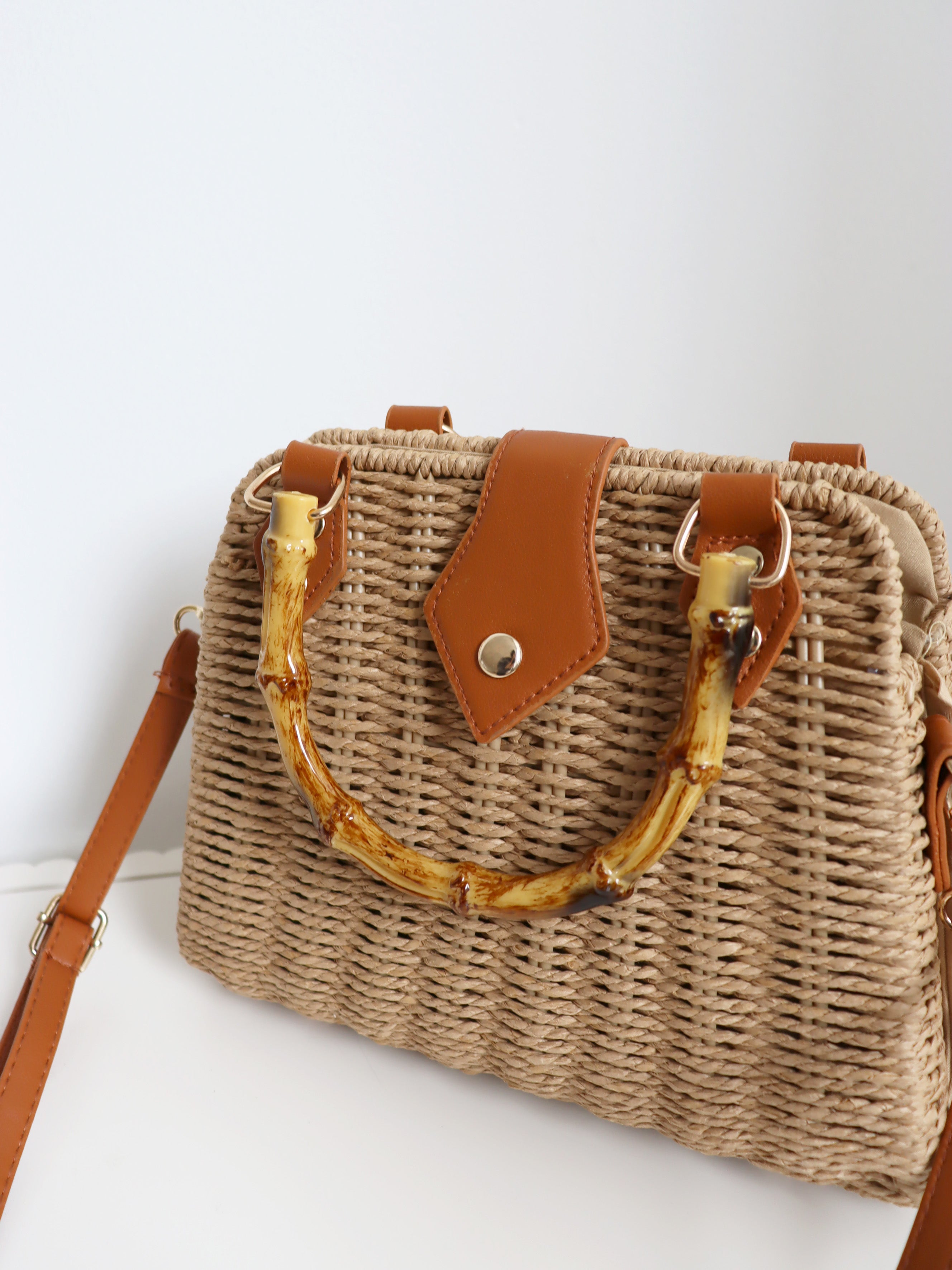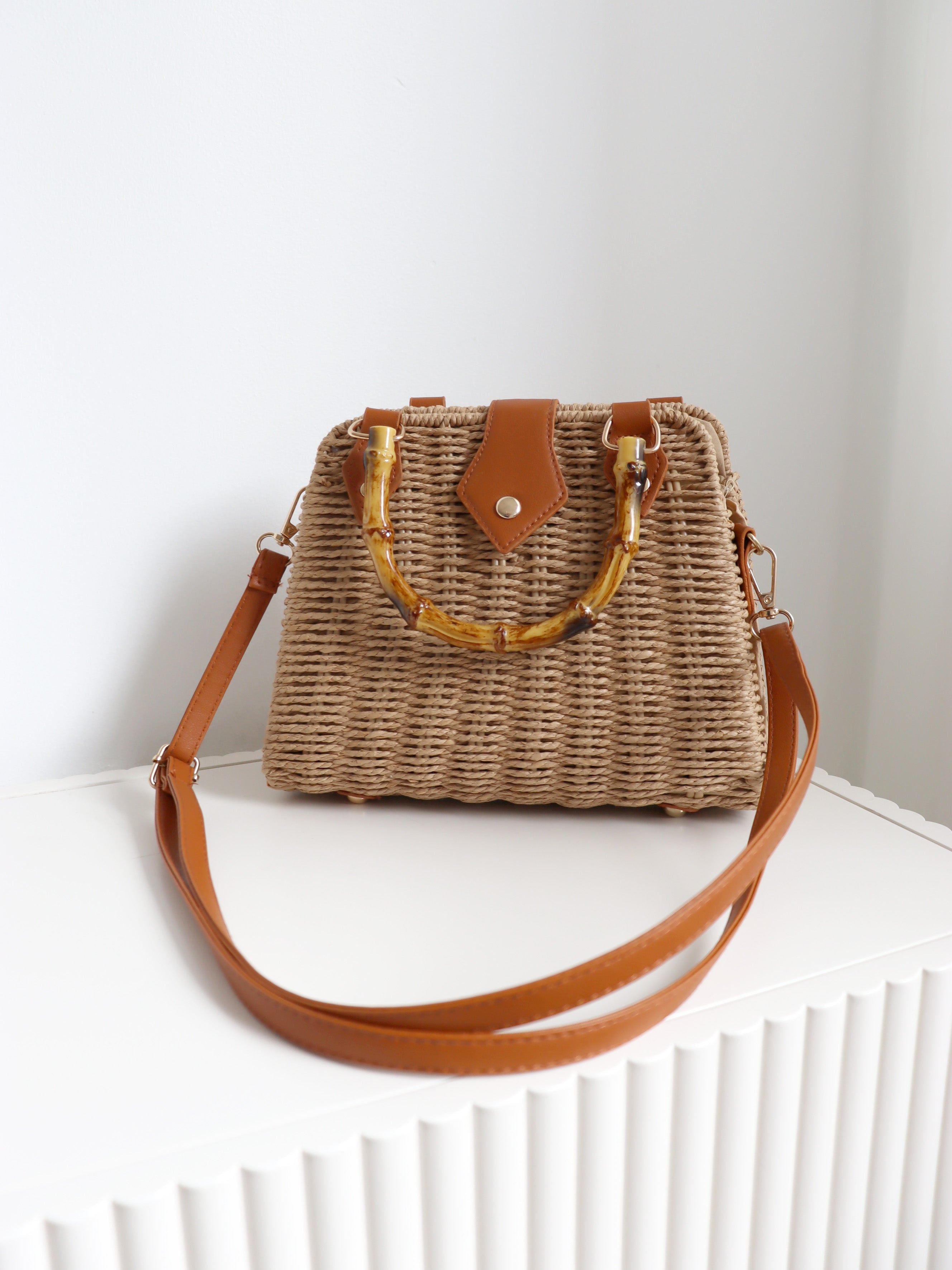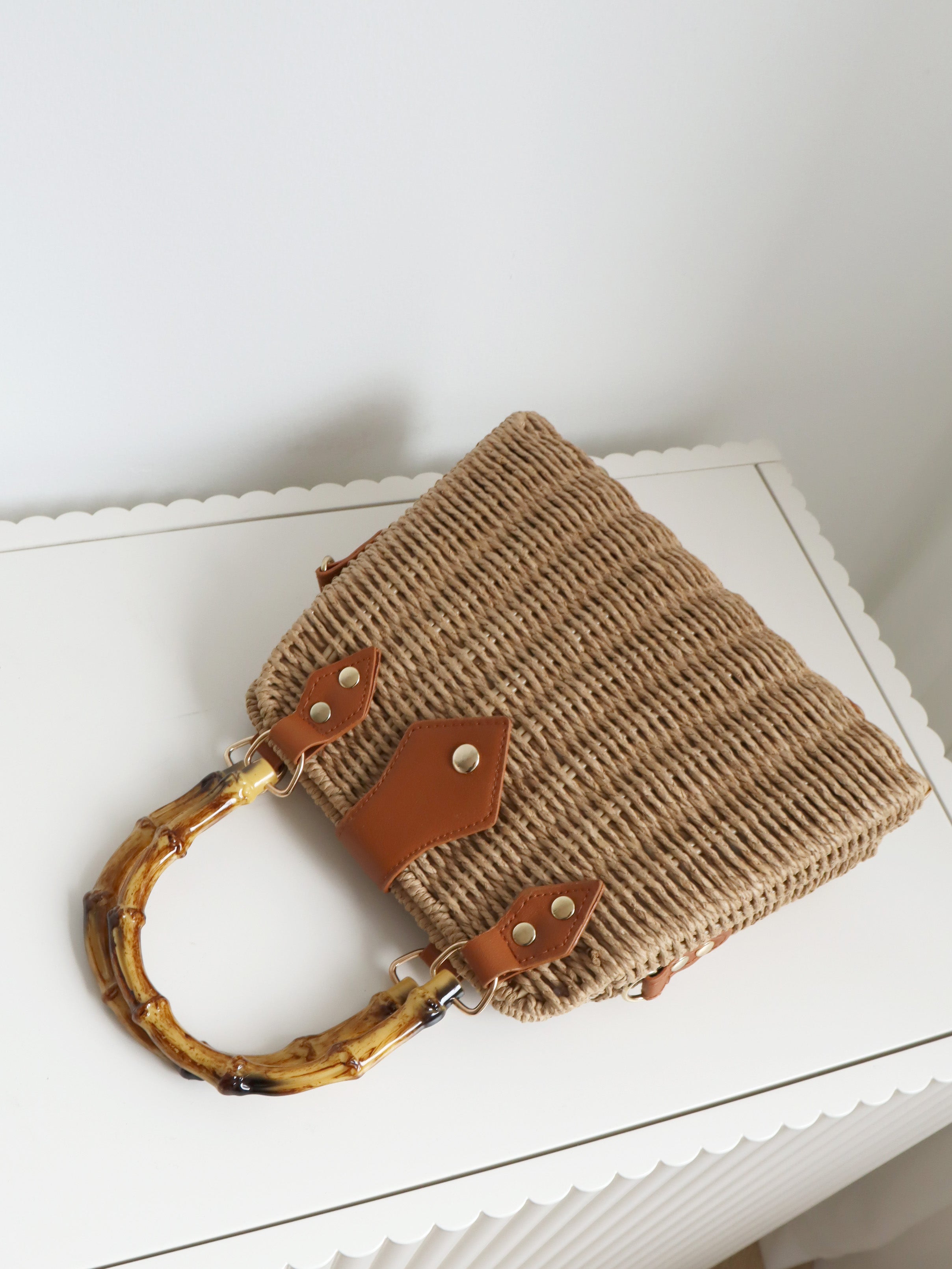 Sun-soaked style meets everyday ease. This woven straw bag with a bamboo handle and tan leather accents is your go-to for chic, coastal days.