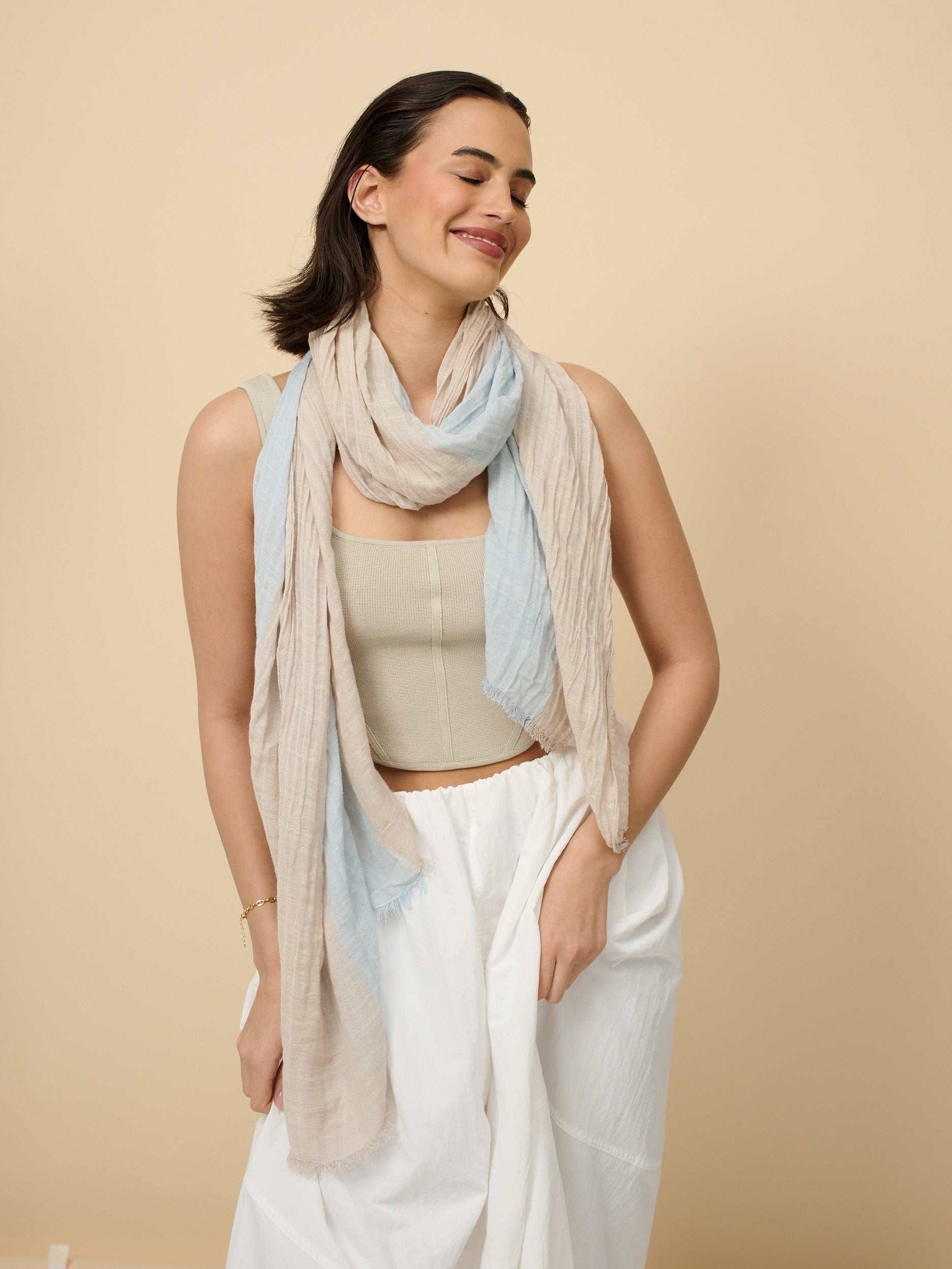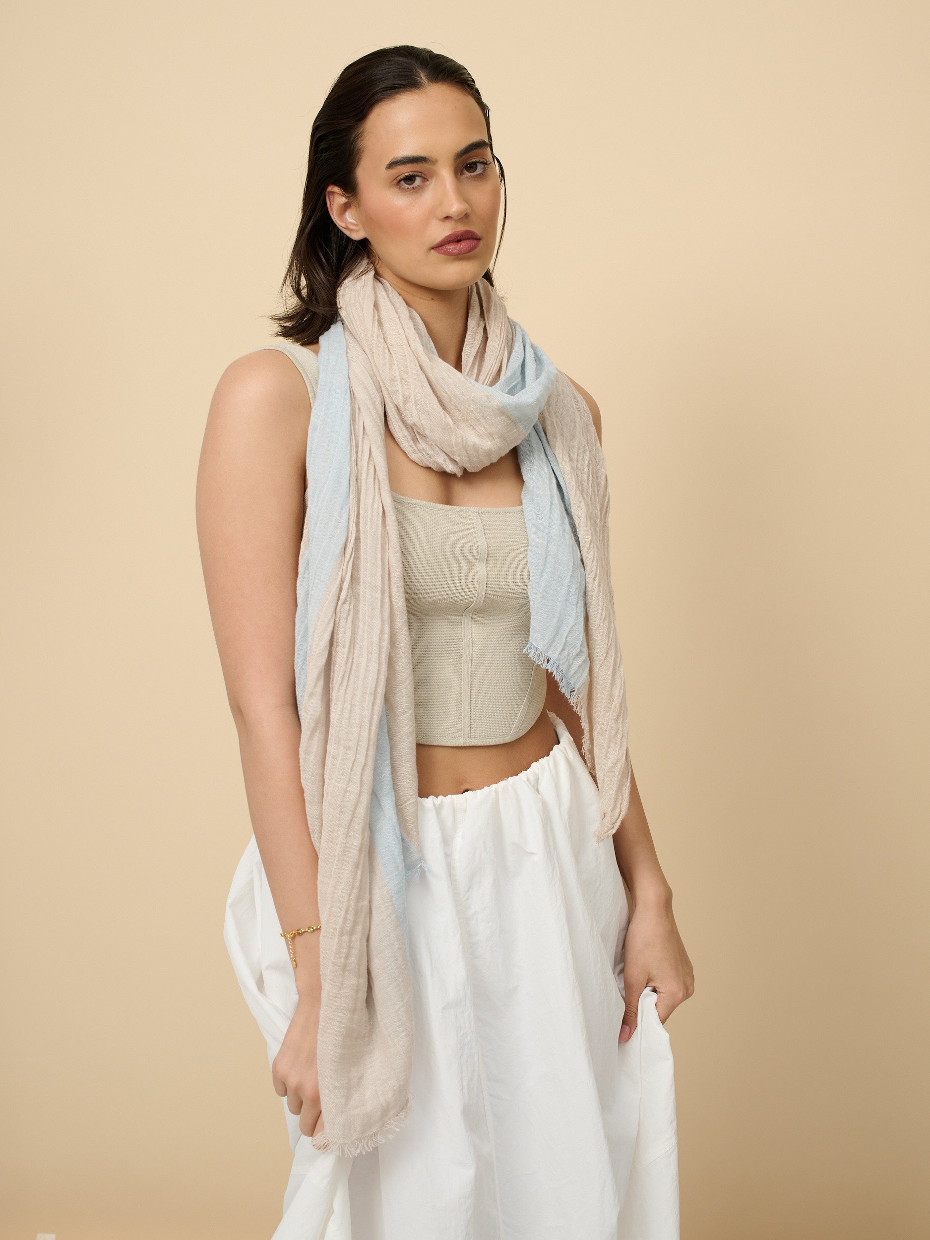Made from premium quality cotton, this scarf boasts a unique two-tone design that adds a touch of sophistication to any outfit. Its lightweight and breathable fabric ensures comfort and style all day long. Elevate your wardrobe with this must-have accessory.