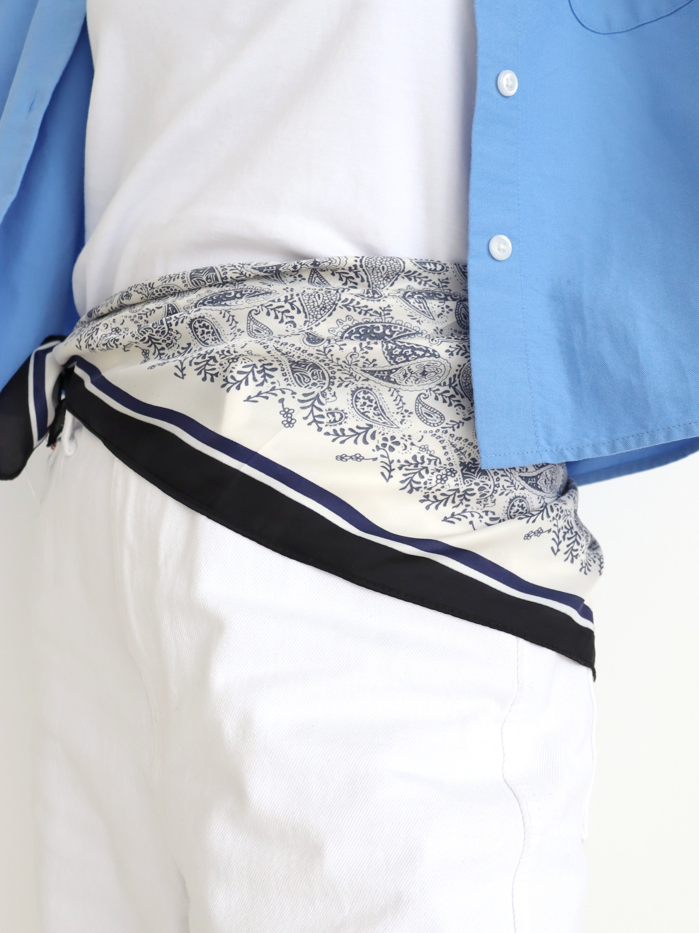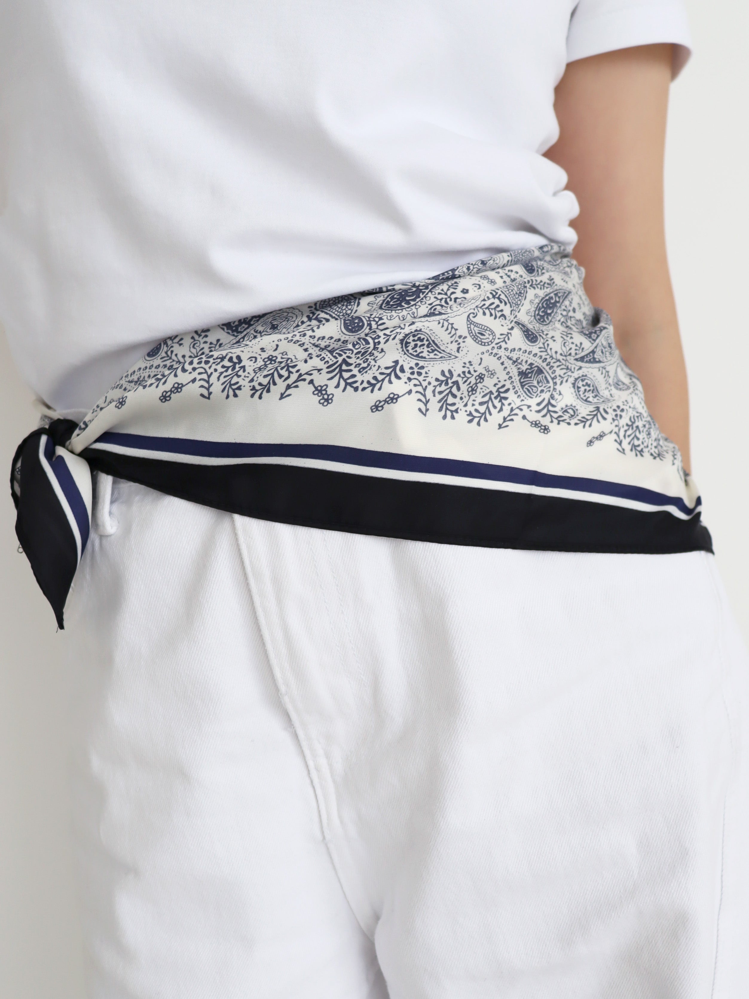 The Freya Paisley Bandana Scarf adds a touch of vintage charm with its classic paisley print. Lightweight and versatile - wear it as a neck tie, headband, or hair wrap for effortless everyday style.