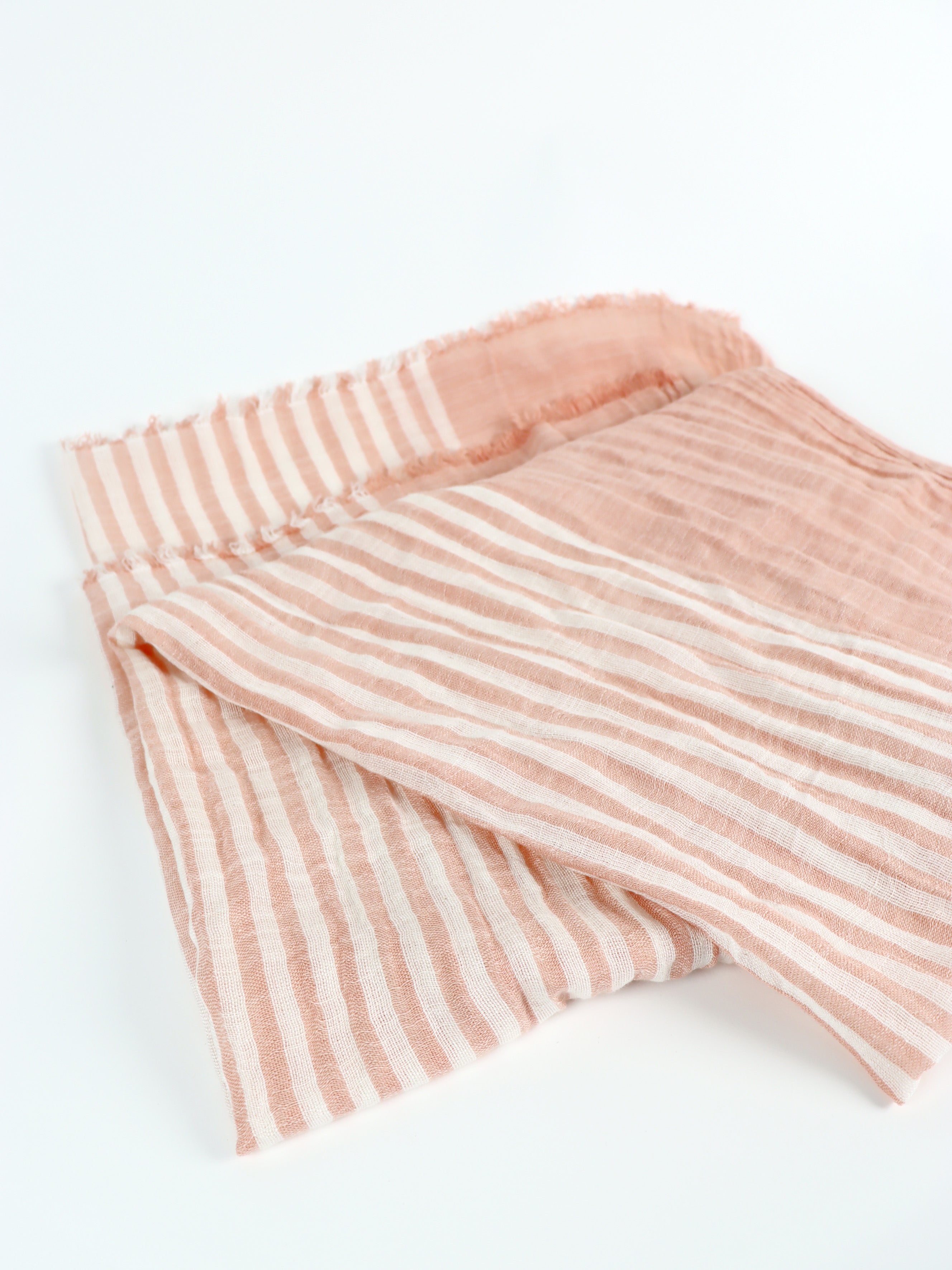 Stay stylish and comfortable with our Pink Stripe Cotton Sarong Scarf. Made of soft textured cotton, this scarf is perfect for any season, adding a touch of sophistication to any outfit. Stay effortlessly chic and cozy with this lightweight and versatile accessory.