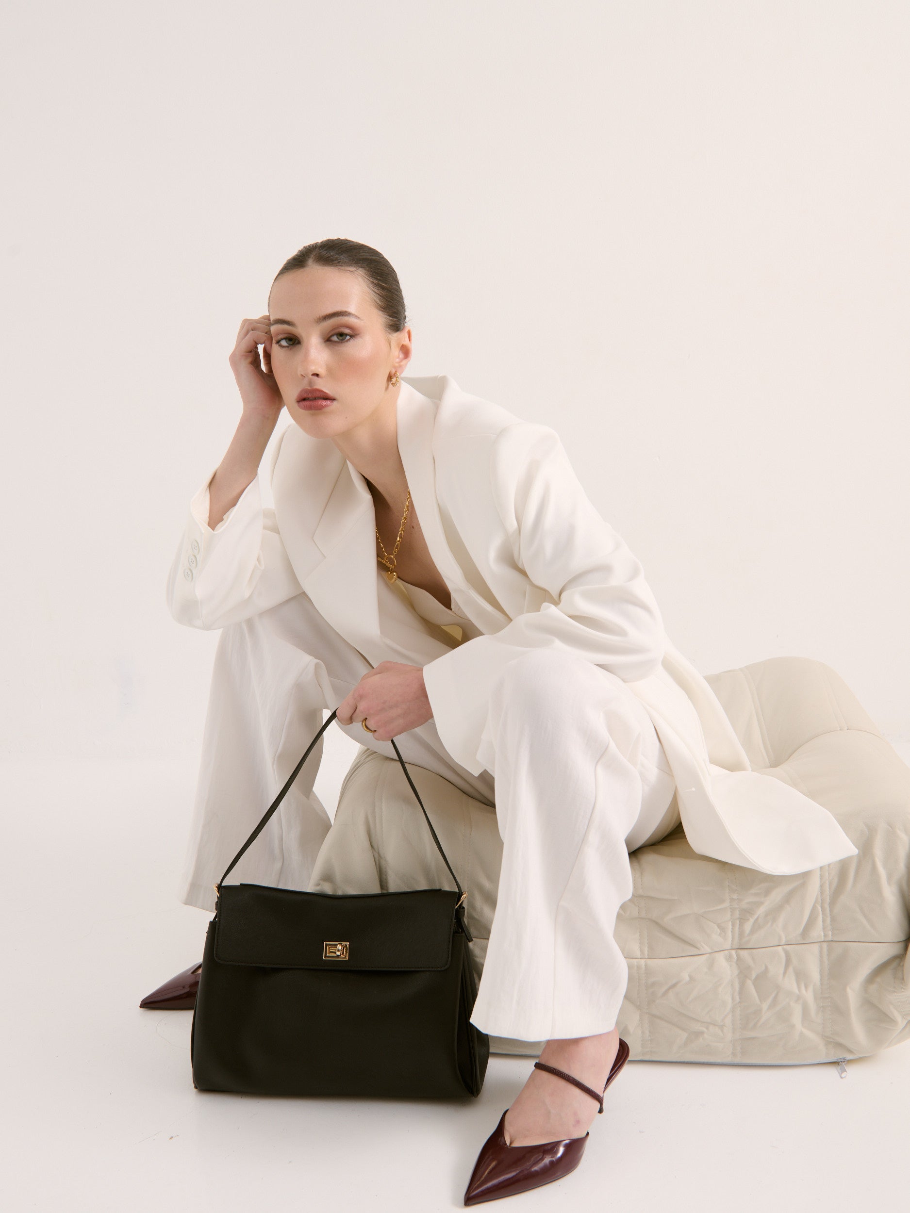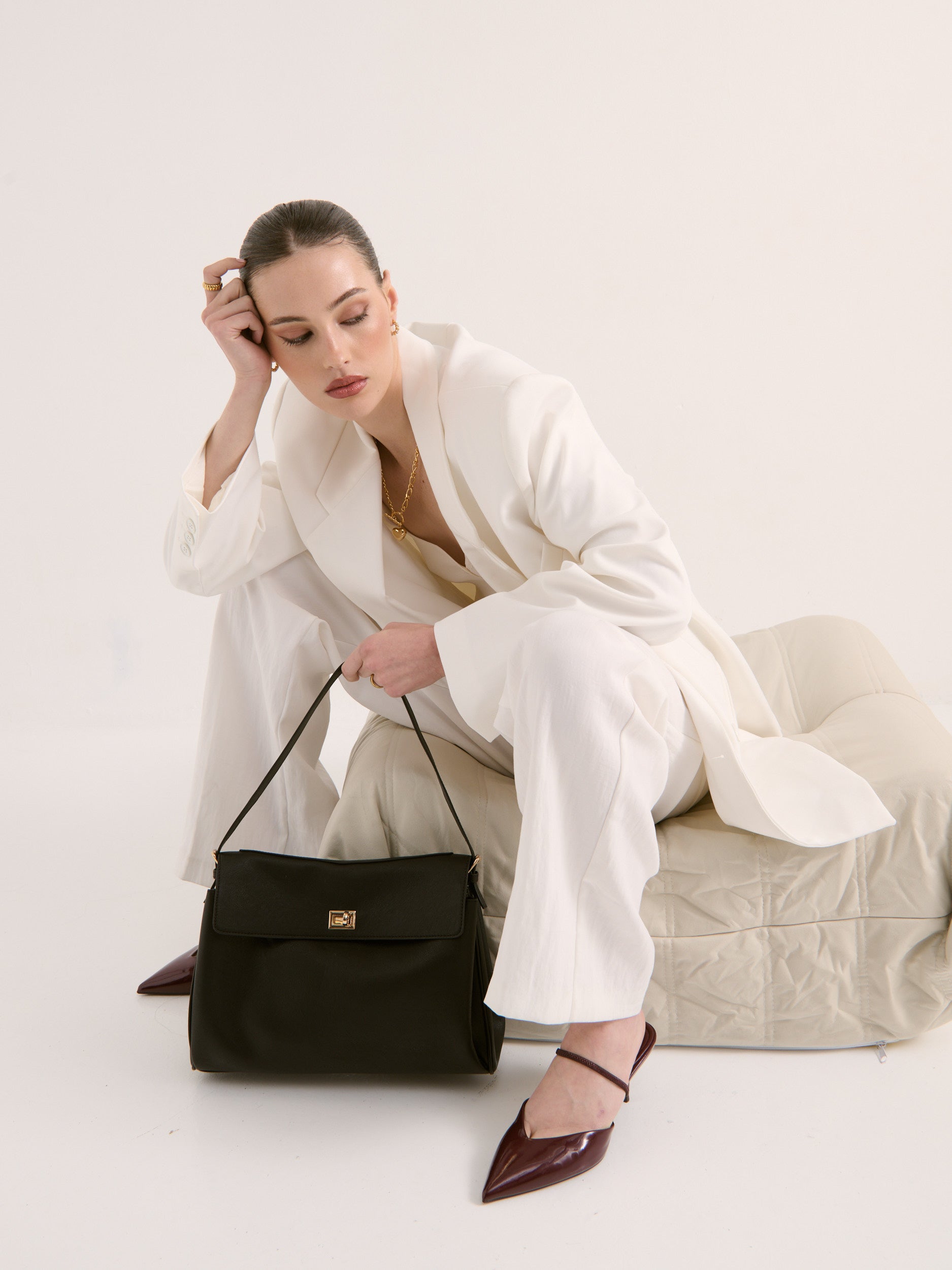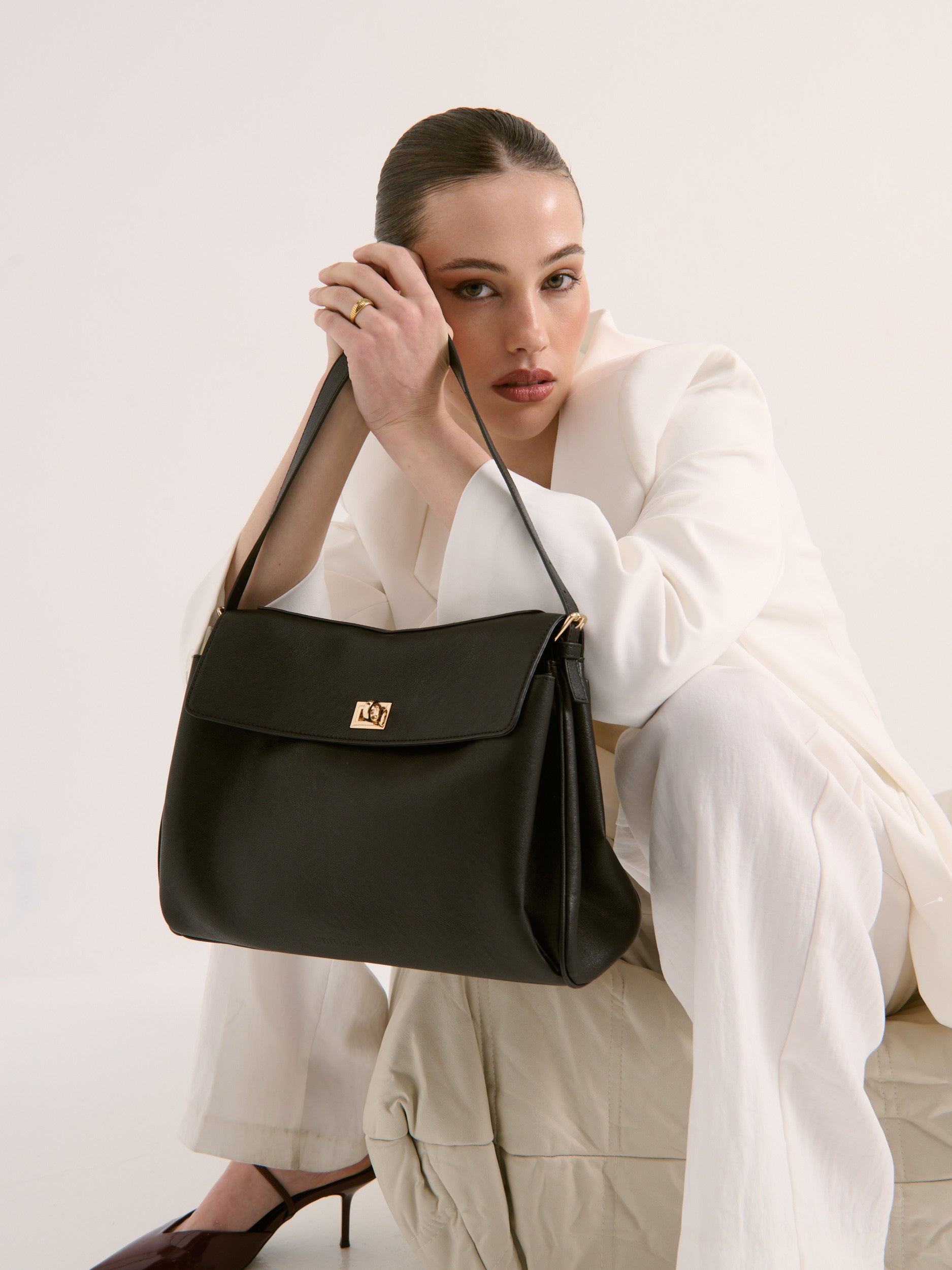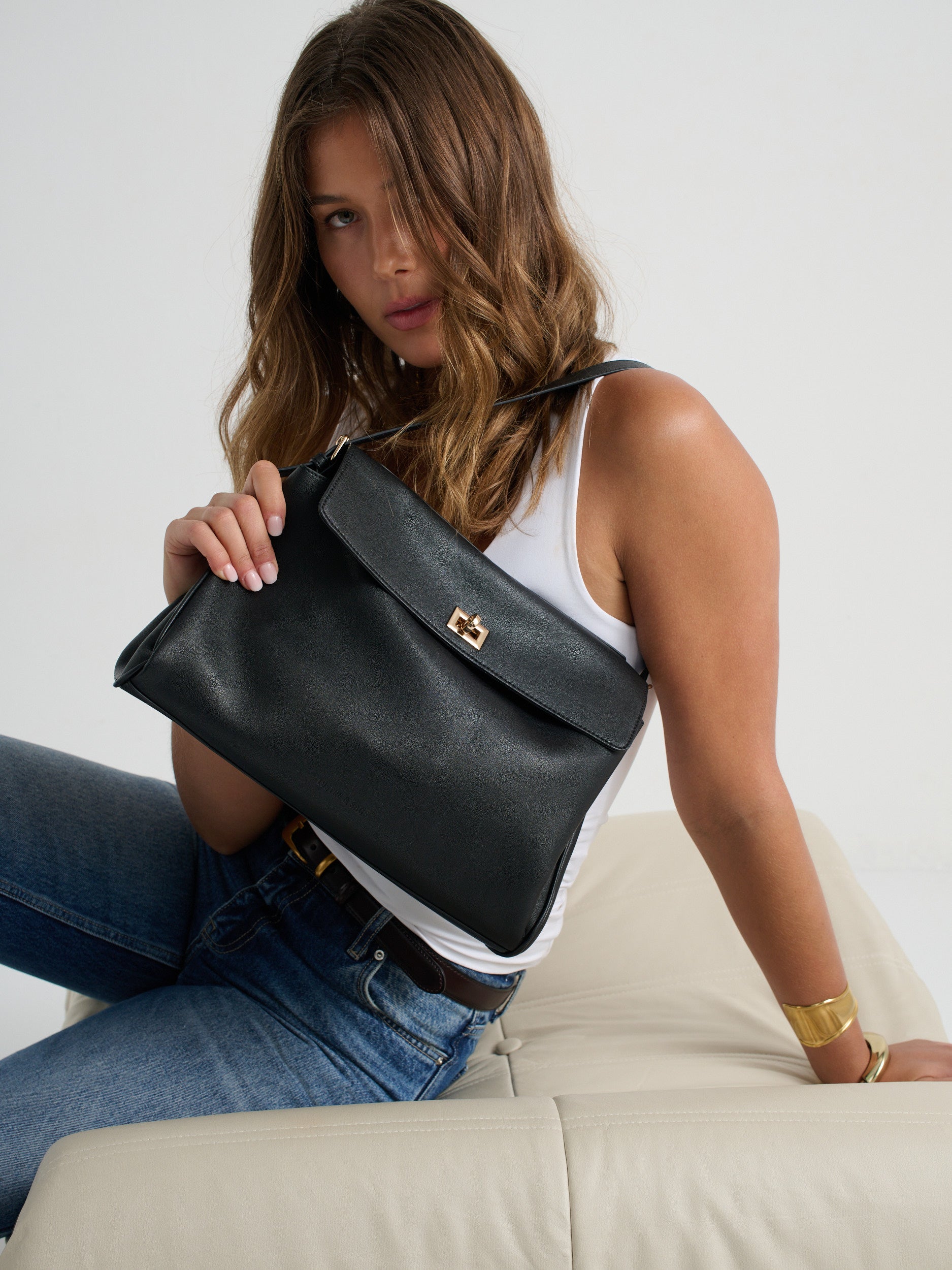 Elevate your everyday style with The Isabeau Black Classic Shoulder Bag designed for both practicality and elegance. Featuring sleek gold hardware and a timeless silhouette, this bag pairs effortlessly with any outfit, from casual daytime looks to evening wear.