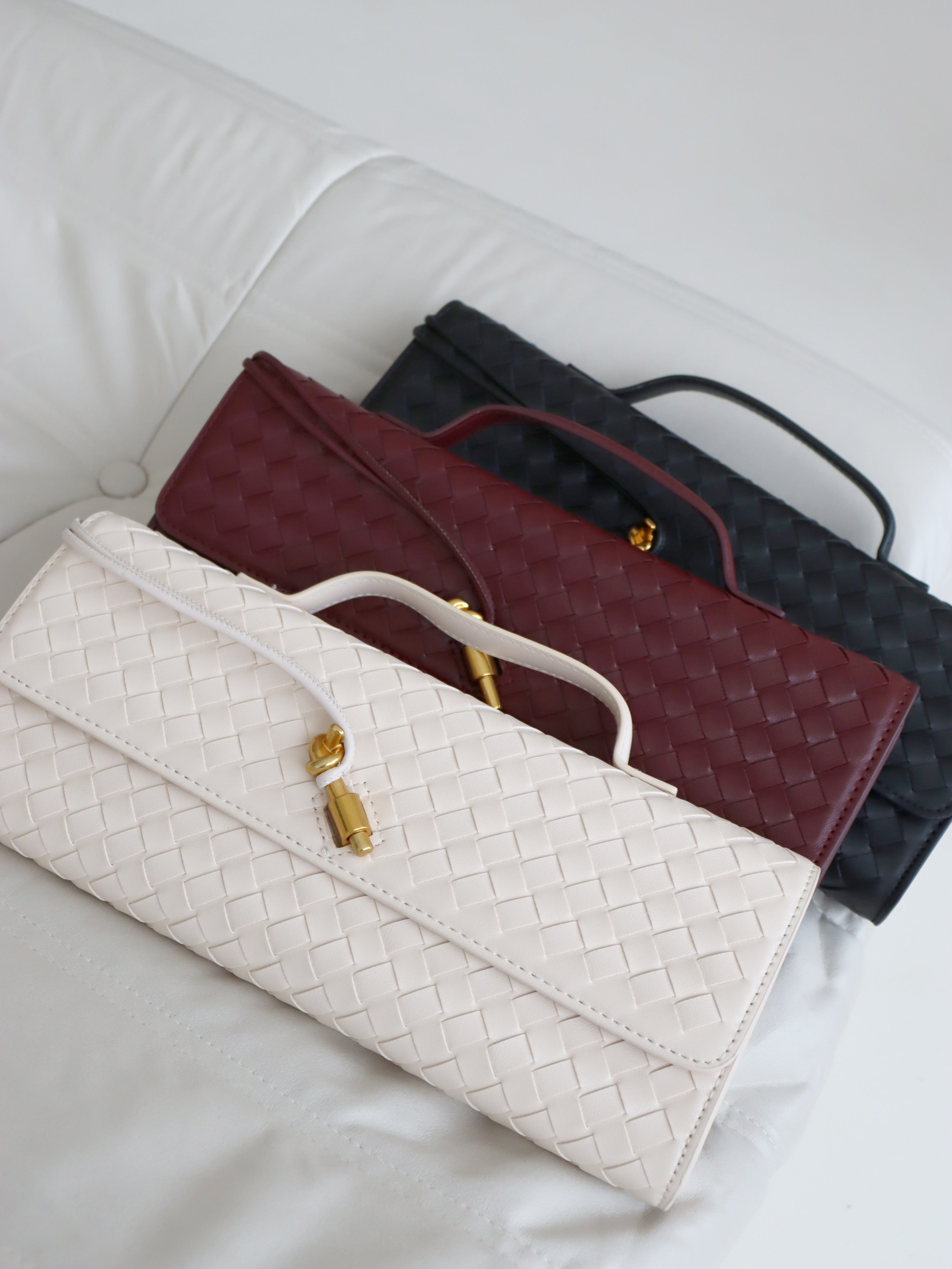 The Paloma Clutch Bag in White brings timeless elegance and subtle texture to any outfit. Crafted with a beautiful woven PU fabric, this clutch showcases expert craftsmanship and a clean, minimalist design that suits both formal and casual occasions.