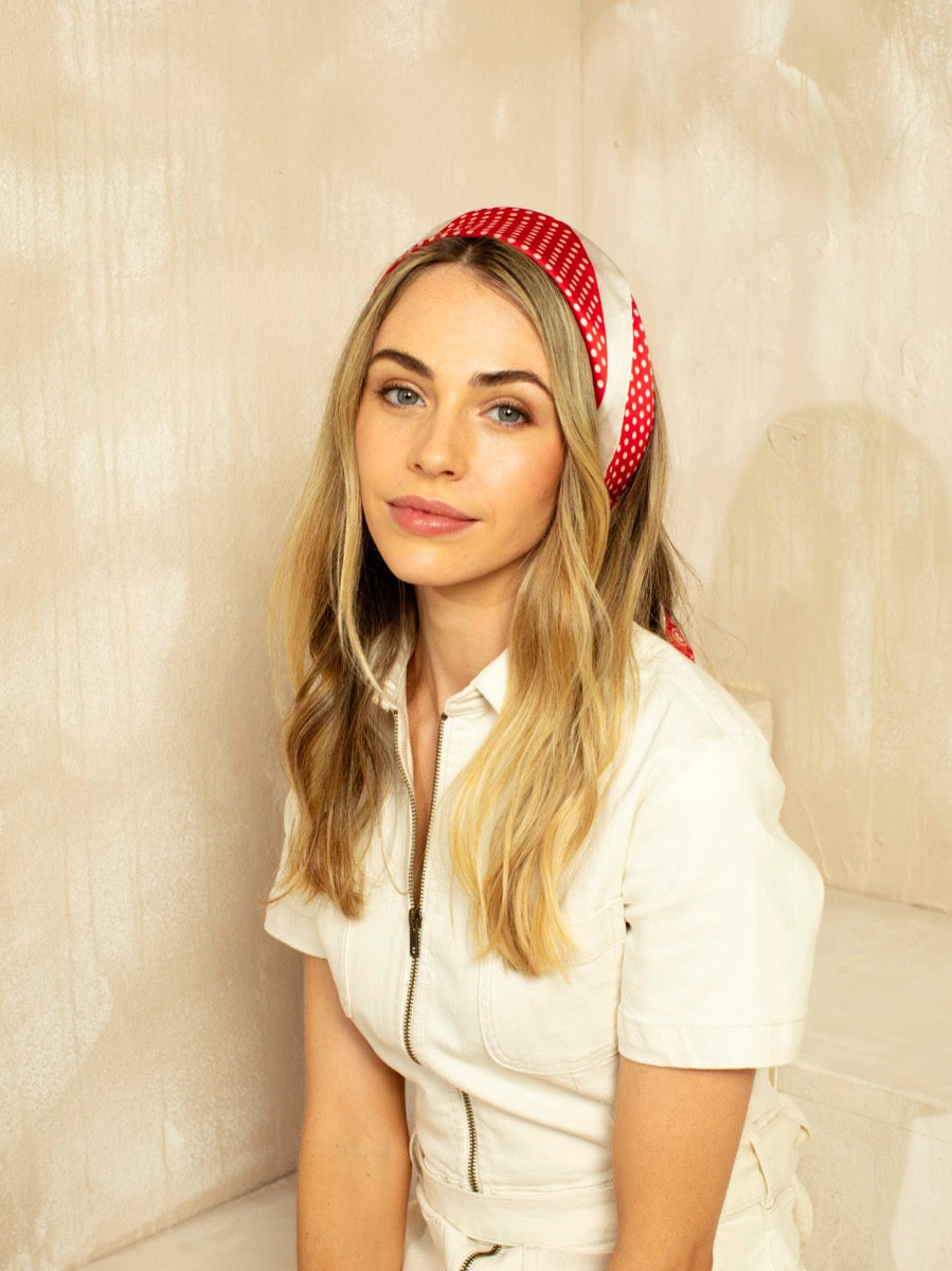Make an unforgettable statement with this Alison Contrast Print Bandana. This vibrant paisley & polka dot bandana is sure to turn heads wherever you go. It's the perfect accessory for adding a touch of charm to your look!