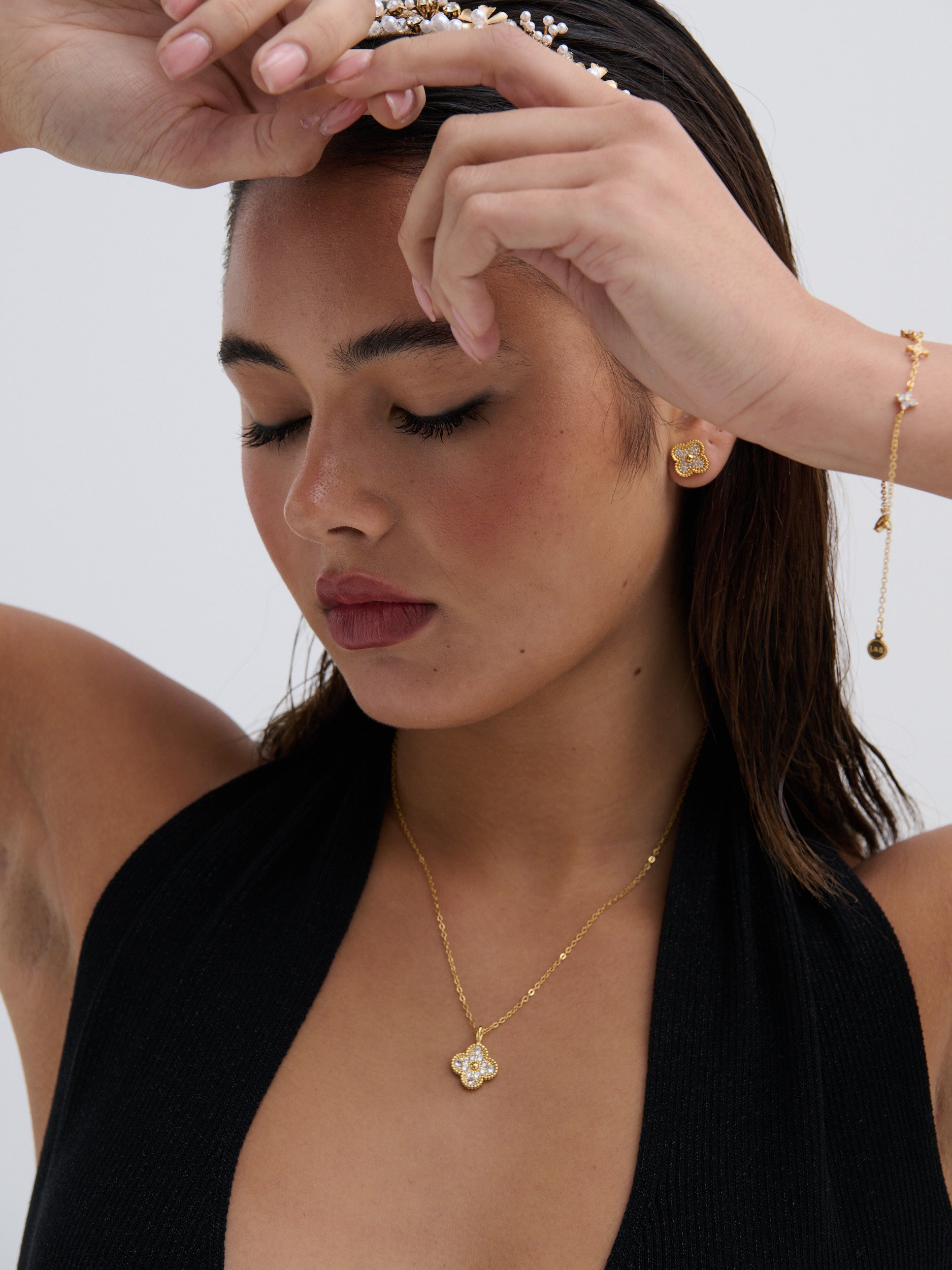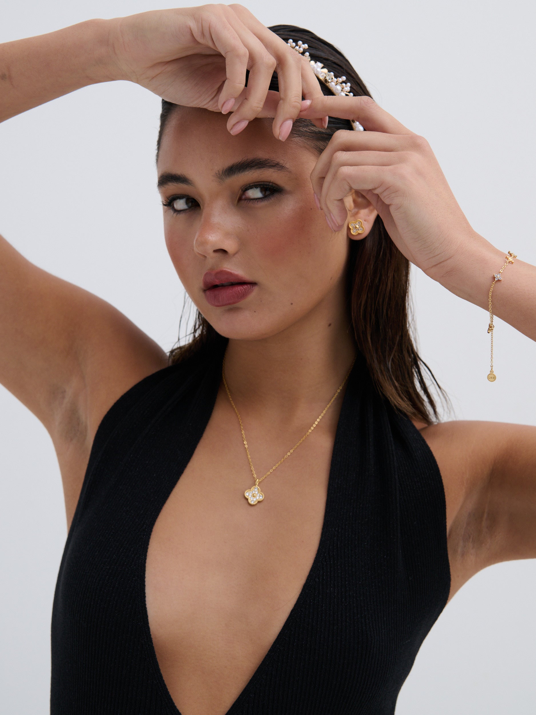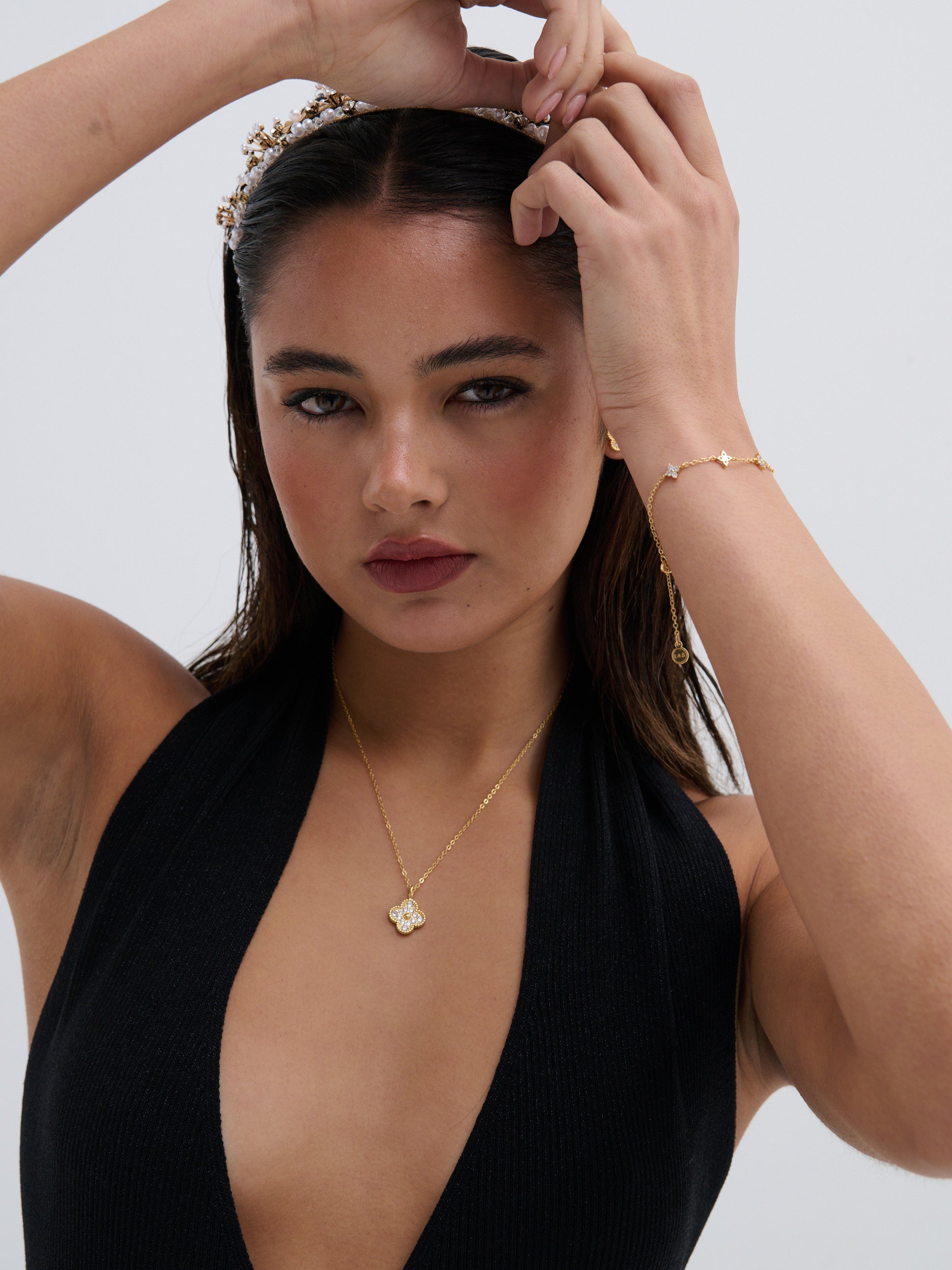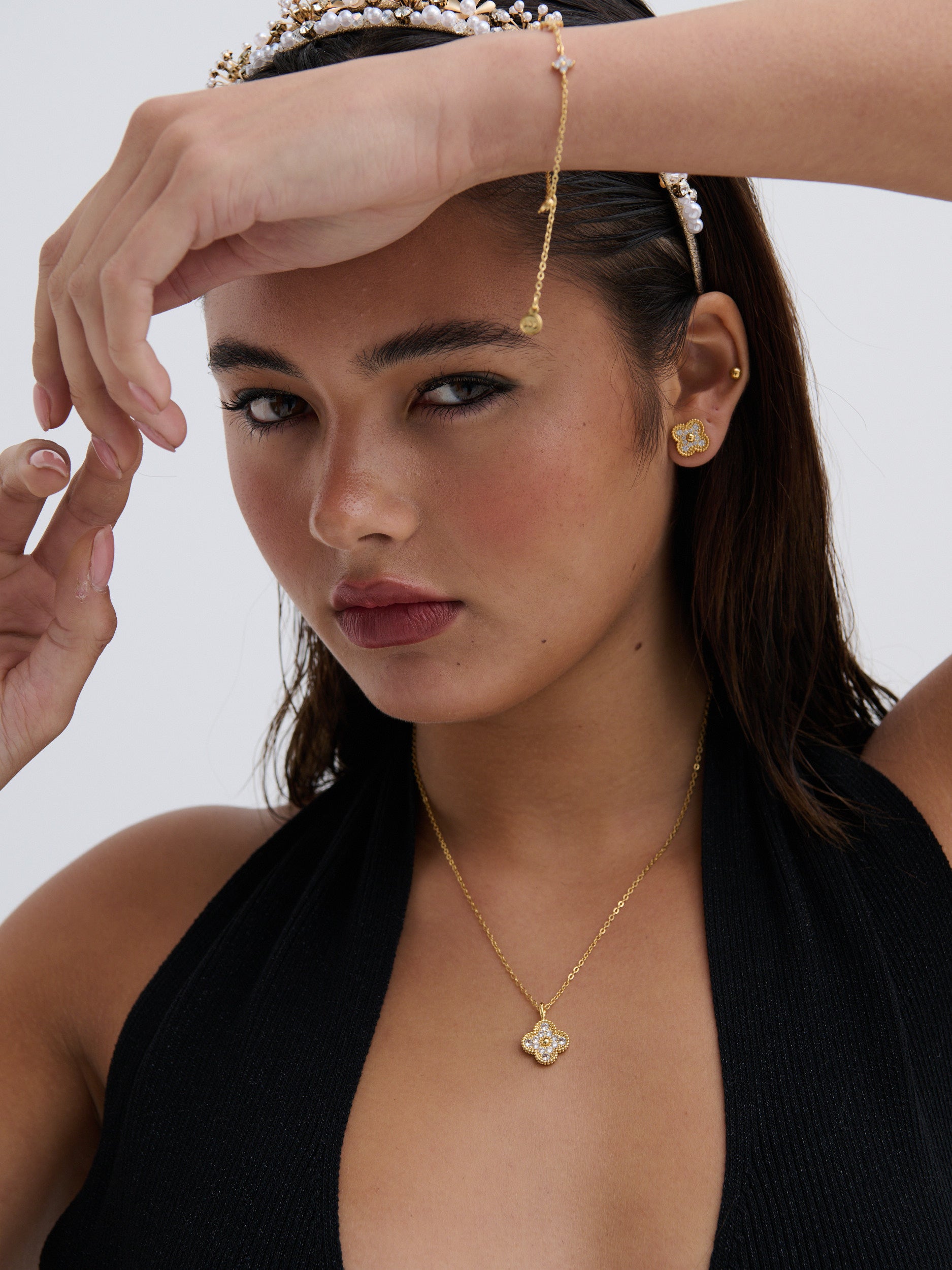 Dainty Clover Embellished 18K Gold Plated Bracelet