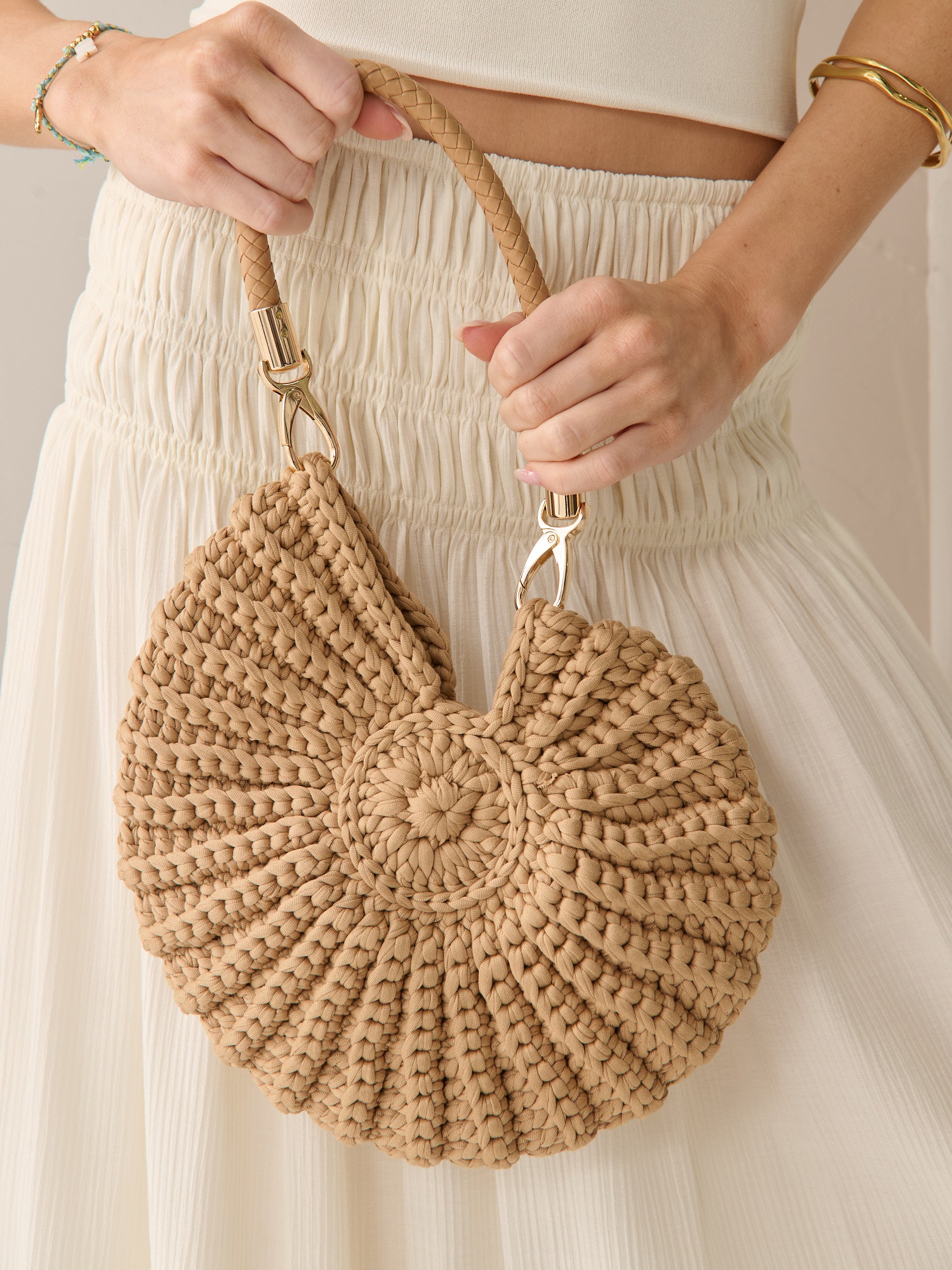 Chic, minimal, and effortlessly stylish, the Ella Weave Shell Bag is your go-to straw handbag for day-to-night wear. Featuring a crochet-style poly weave, sleek vegan leather handle, and fully lined interior, it’s designed to carry your essentials with ease and elegance.
