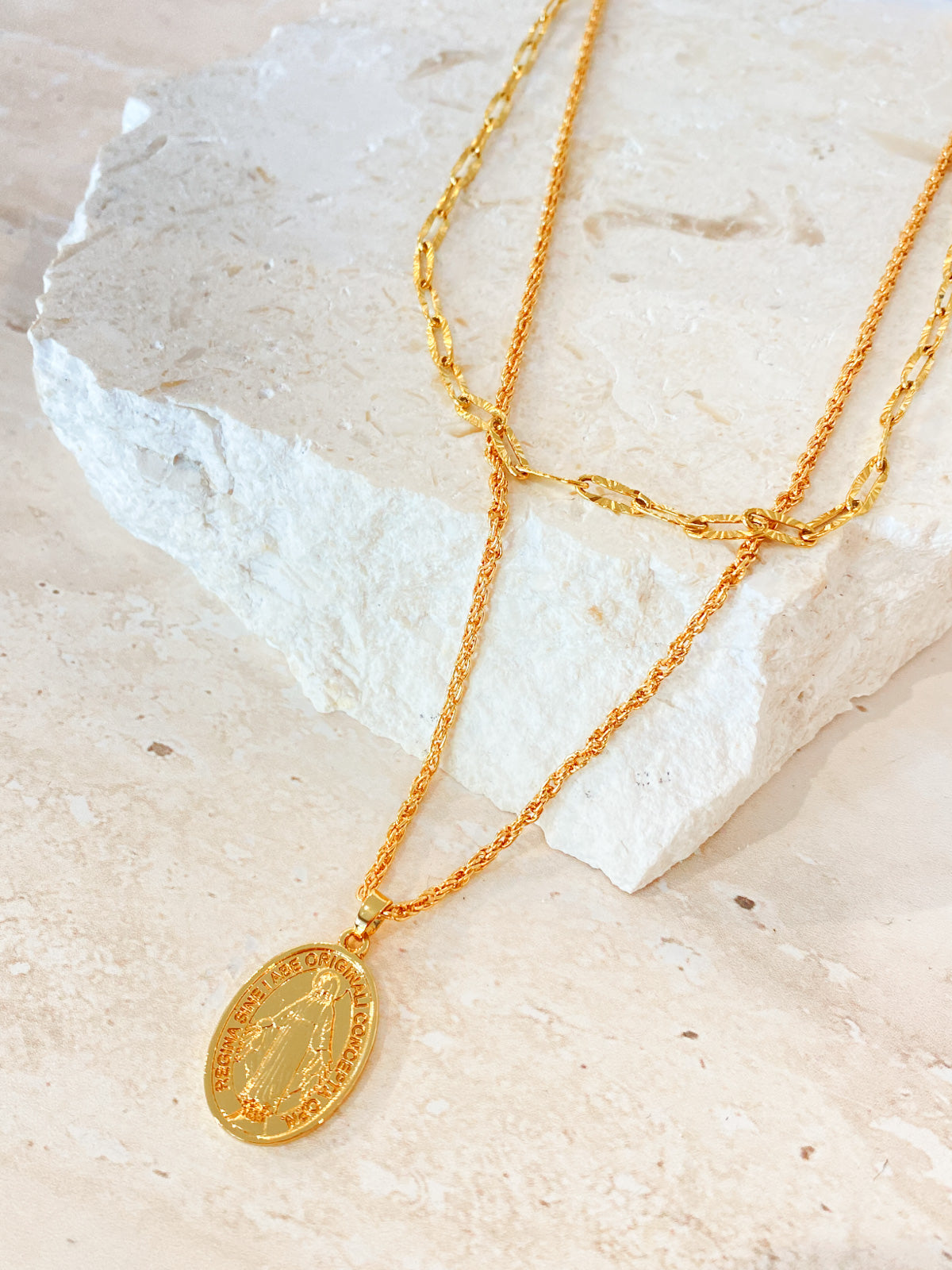 Perfect quality necklace but made with different material as we supposed to do. Still it's 18K Gold Plated, just a bit lighter than our normal Lustre & Sage products.