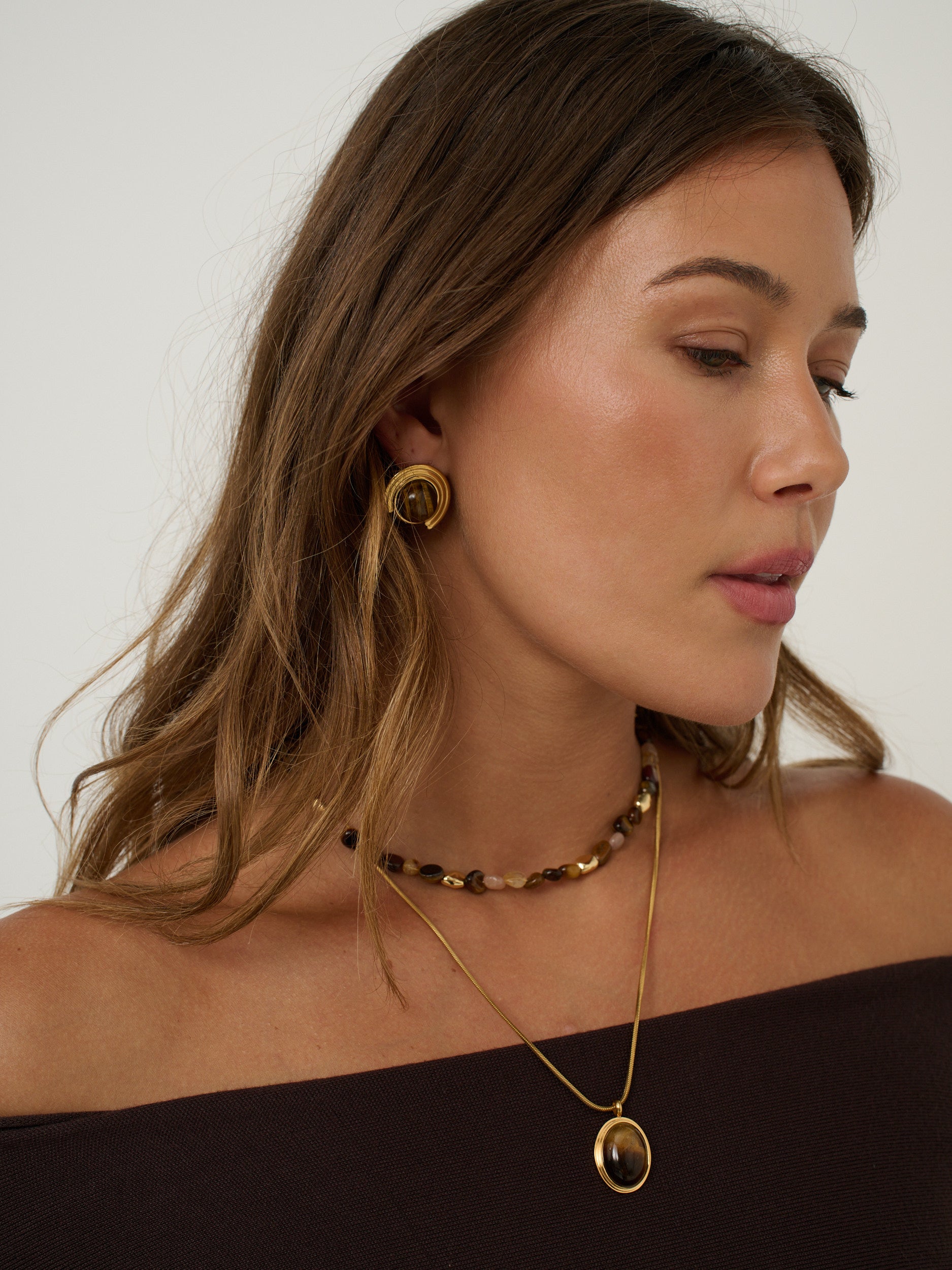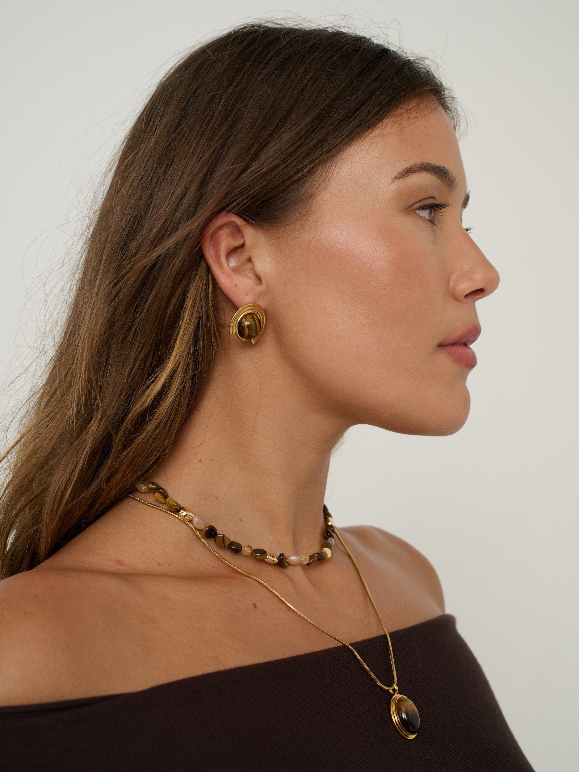 Elegant with a natural edge, the Talia Tiger Eye Earrings feature polished tiger eye stones with rich golden-brown tones and a subtle shimmer. Lightweight and versatile, they bring a refined, earthy touch to both everyday and dressed-up looks.